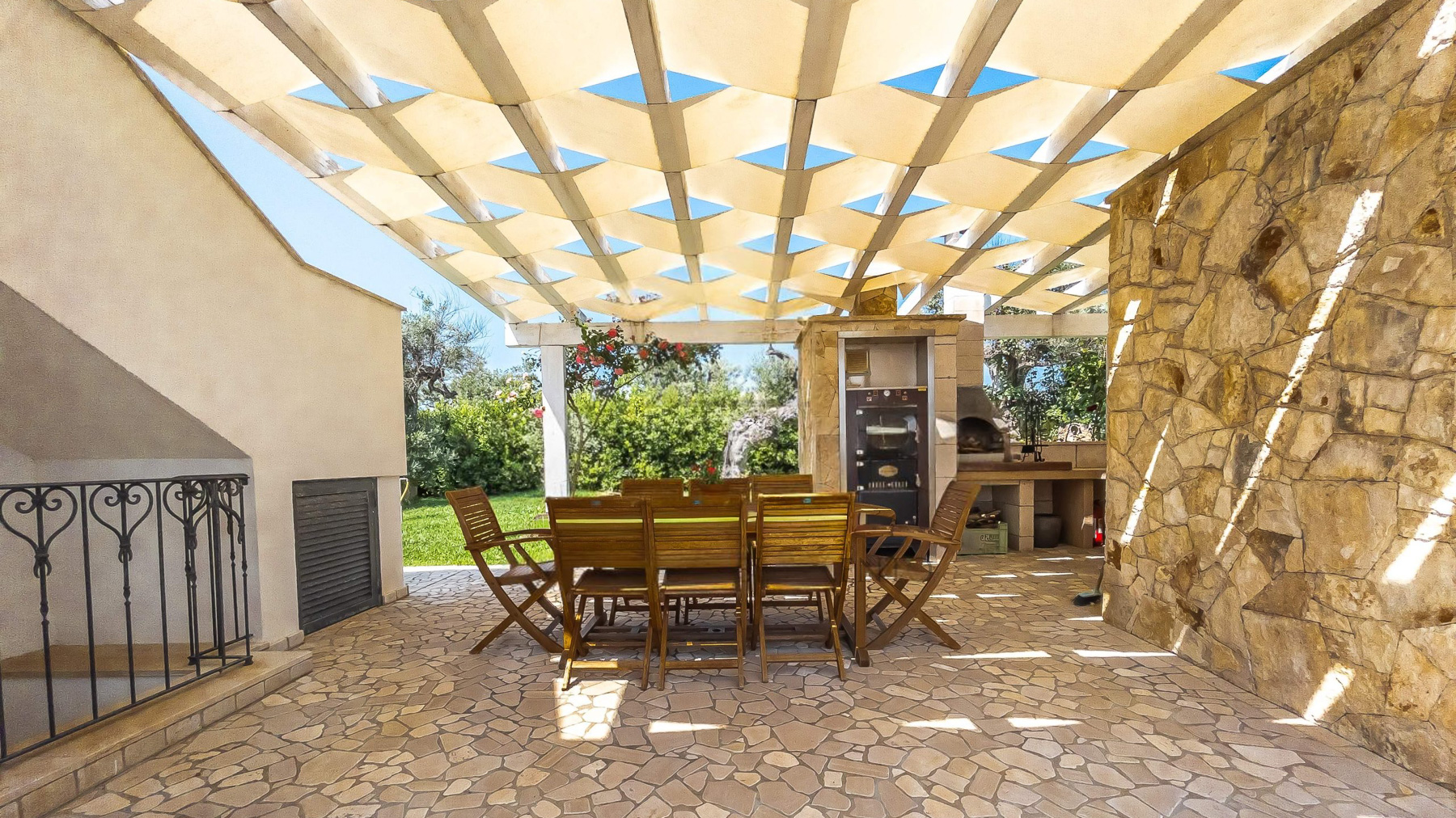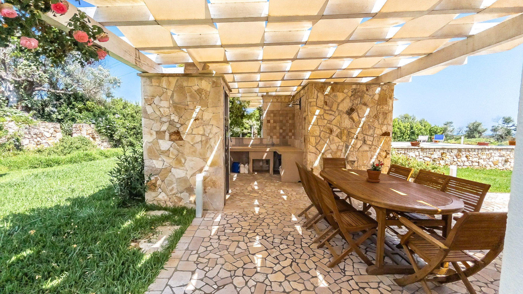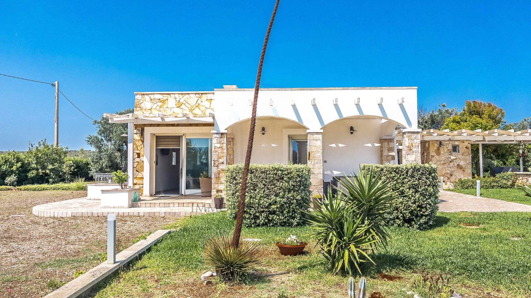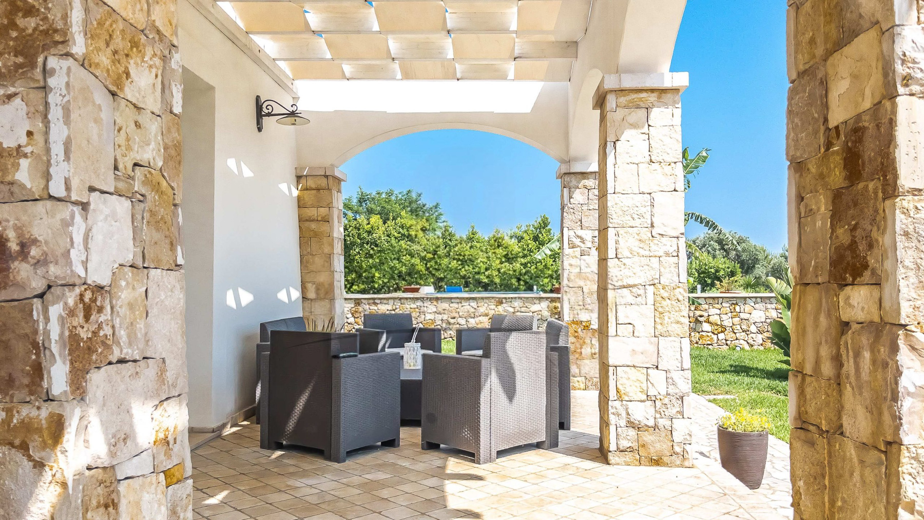 Amidst the serene embrace of Castrignano del Capo's enchanting countryside, a luxurious retreat beckons with the allure of tranquility and refinement. Imagine the gentle rustle of leaves and the distant song of birds creating a symphony of peace in this picturesque haven, where every moment feels like a timeless escape. Spanning 140 square meters, this exquisite residence offers an artful blend of modern sophistication and rustic charm. With five spacious rooms and three elegantly appointed bathrooms, the property is a sanctuary of comfort. A private garden flourishes with lush greenery, offering an intimate connection to nature. The home is surrounded by rolling hills and verdant landscapes, providing a stunning backdrop for daily life. The quaint town of Lecce is close by, inviting exploration of its rich history and vibrant culture. Life here is a symphony of experiences, where mornings begin with coffee on the patio, and afternoons unfold by the glistening swimming pool. As the sun sets, the cozy indoor spaces transform into a haven of warmth, with floral-patterned sofas and elegant glassware casting a gentle glow. Each day invites a new adventure in relaxation and luxury. This property is a masterpiece of elegance and comfort, a rare treasure in the luxury real estate market. It promises a lifestyle of unparalleled grace and serenity, where every moment is a celebration of beauty and ease.