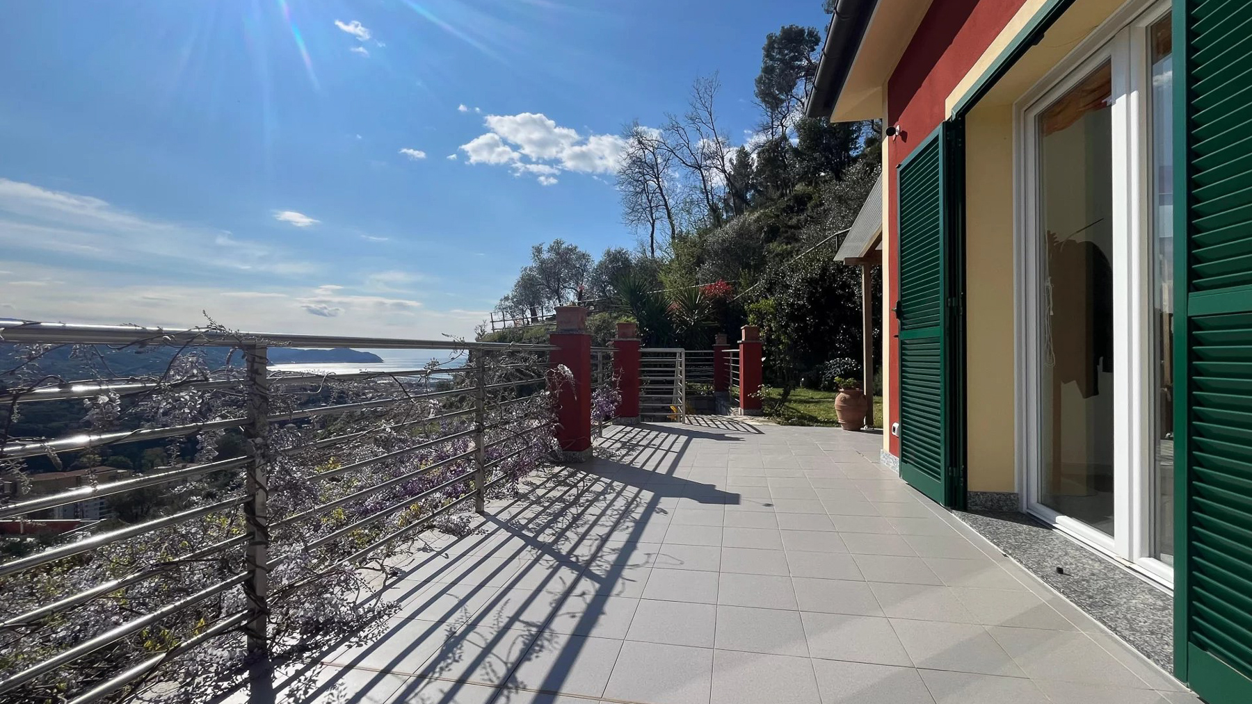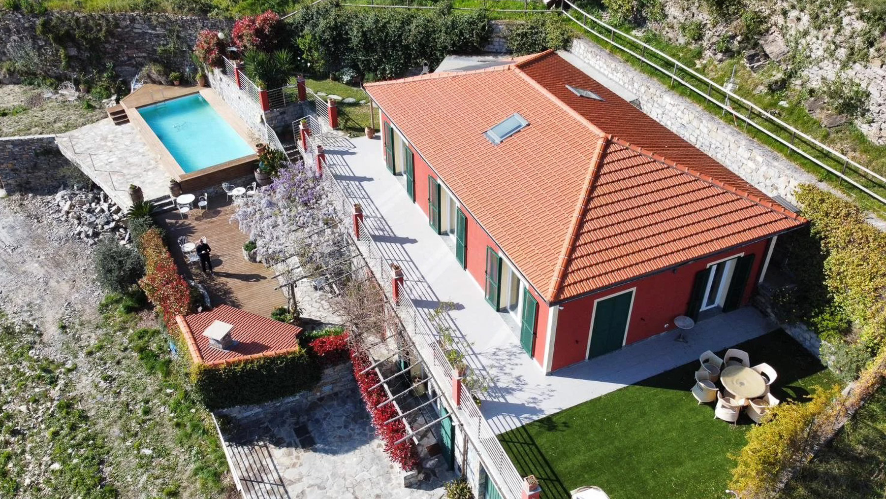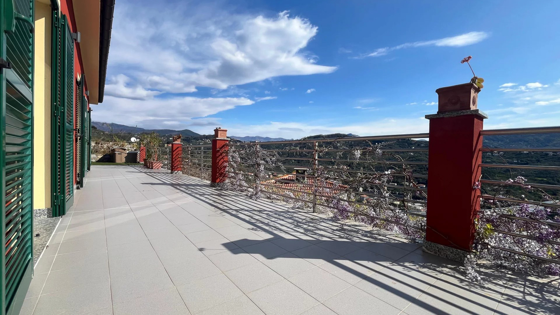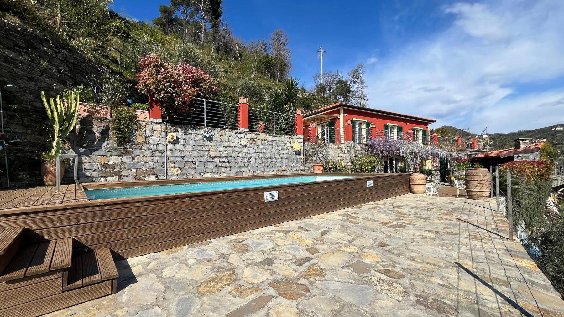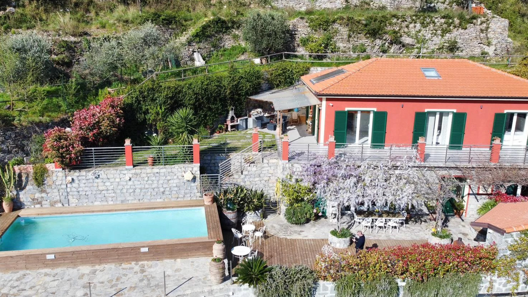 Perched on a picturesque hillside, this stunning red house with its charming green shutters stands as an oasis of serenity and luxury. The gentle rustle of leaves and the soothing sounds of nature envelop you as you step into this tranquil retreat. Bathed in sunlight, the property offers breathtaking views that stretch over lush landscapes and distant mountains, promising an unforgettable experience. Spanning 251 square meters, this exquisite residence boasts eight spacious rooms and four elegant bathrooms. Located in the enchanting town of Chiavari, Genova, the property is a testament to refined living. Distinctive features such as a private swimming pool and a state-of-the-art gym cater to your every comfort and leisure need. The bright, modern kitchen and dining area open seamlessly to the outdoors, inviting the warm embrace of the Italian sun and the refreshing sea breeze, creating an ideal setting for both relaxation and entertainment. Imagine mornings spent lounging on the wooden deck, sipping coffee as the sun rises over the horizon. Afternoons are perfect for a refreshing dip in the pool or a leisurely stroll through the landscaped gardens, where vibrant flowers and lush greenery create a symphony of colors and scents. As evening falls, the outdoor seating area transforms into a magical venue for dining under the stars, with the mountains as your backdrop. This extraordinary property is not just a home; it is a sanctuary of elegance and comfort. A rare gem in the luxury real estate market, it offers an unparalleled lifestyle where timeless beauty meets modern sophistication.