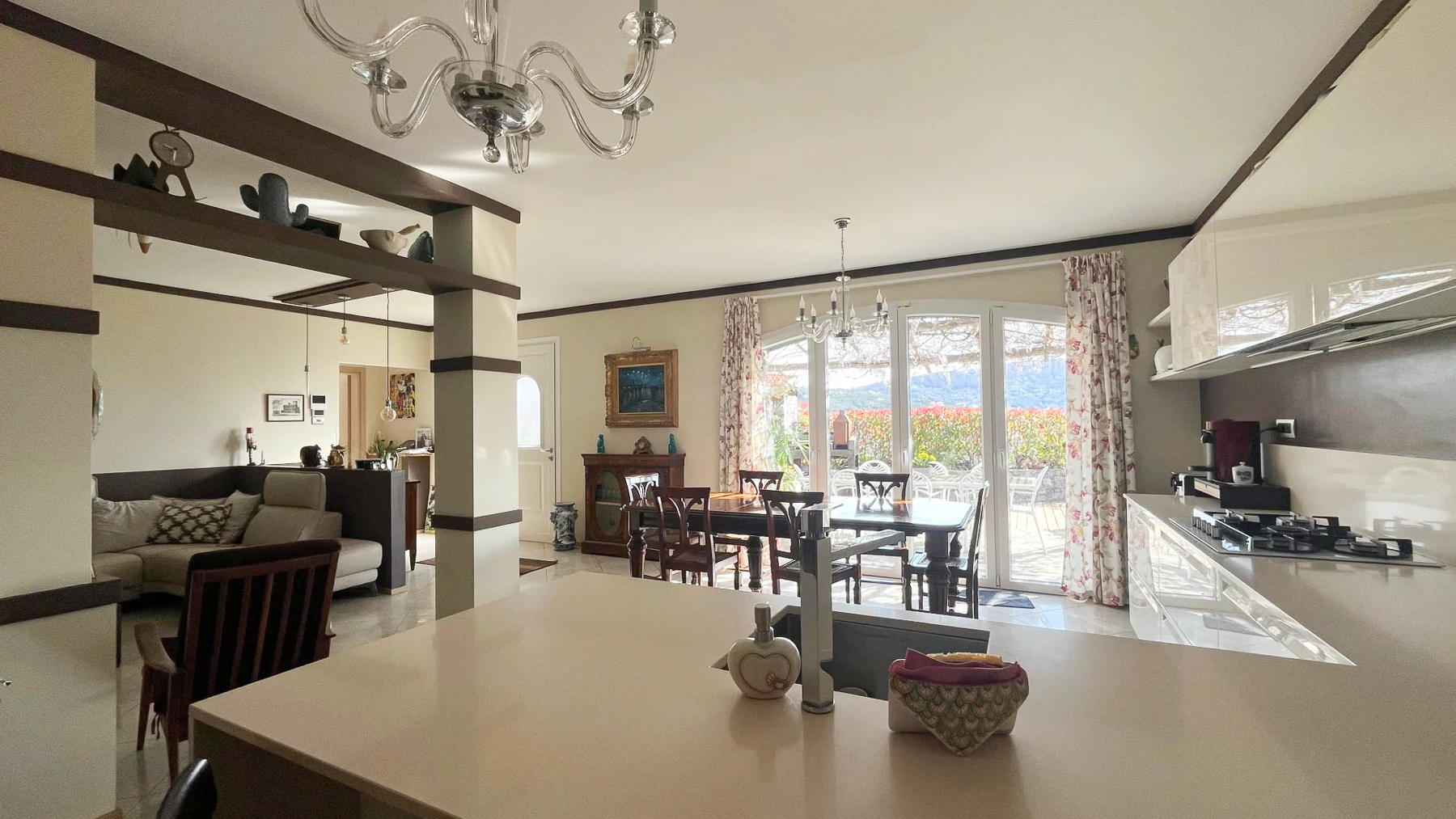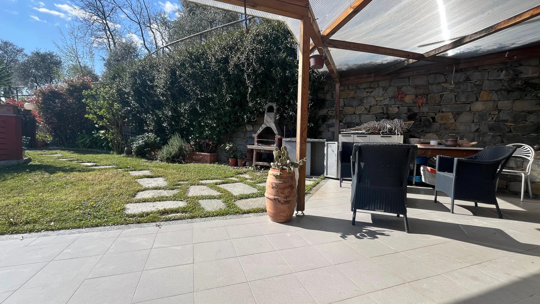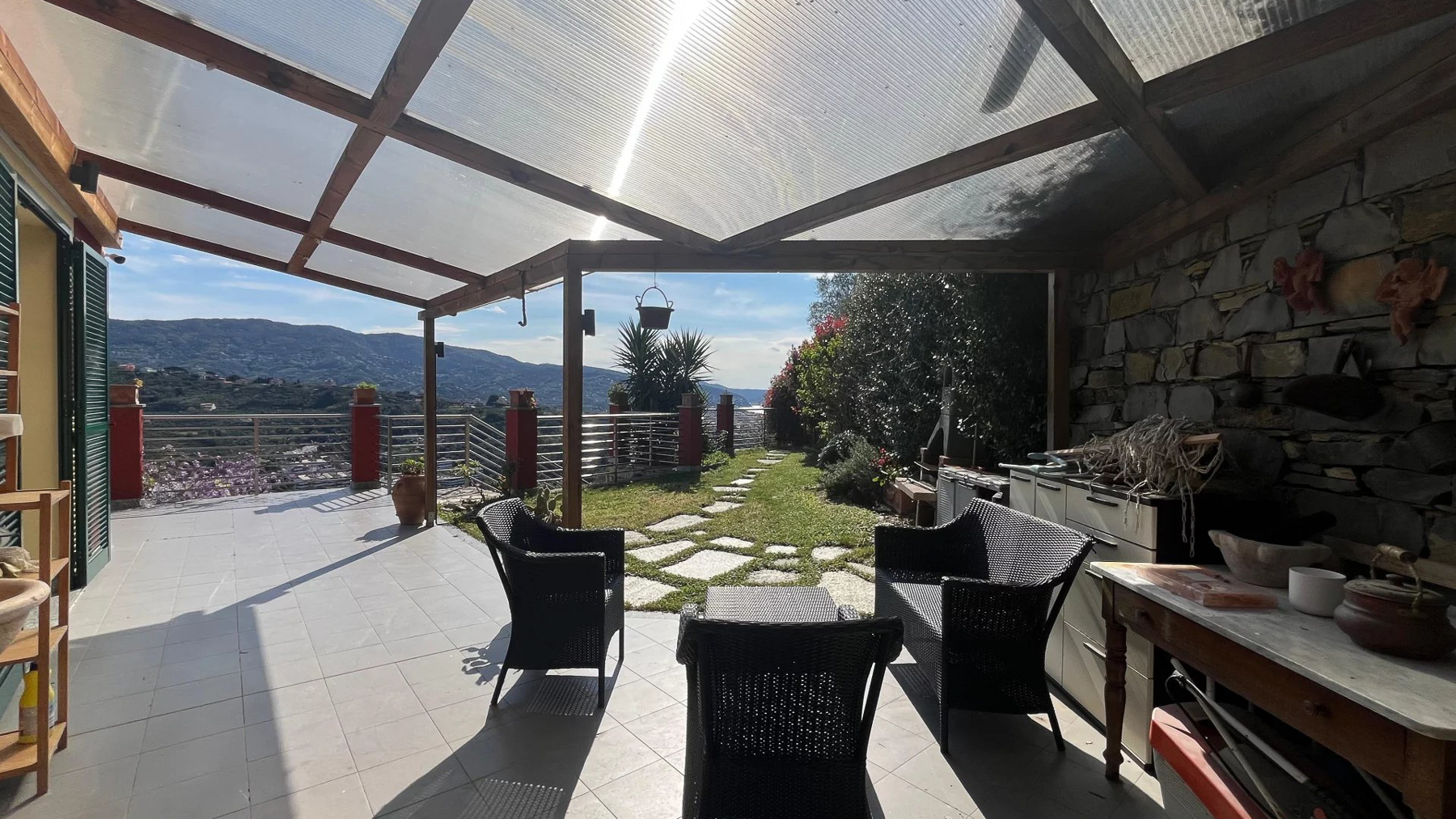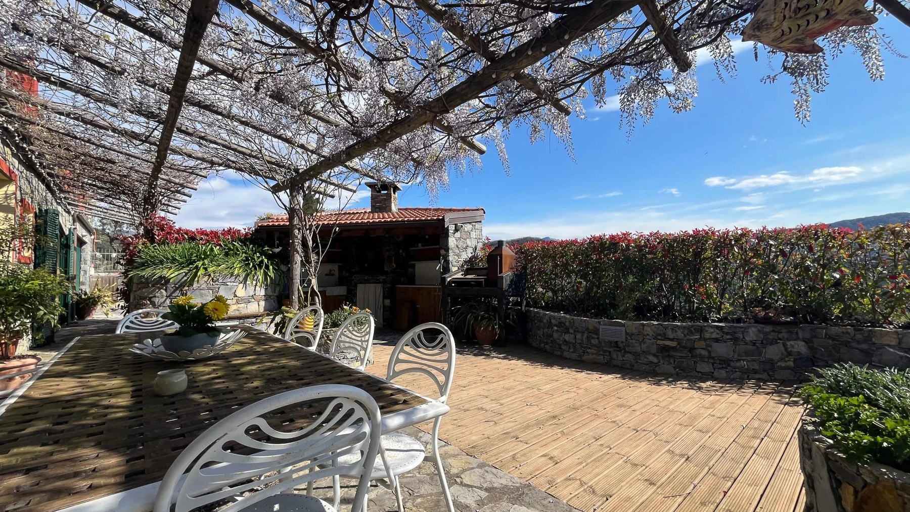 Perched on a picturesque hillside, this stunning red house with its charming green shutters stands as an oasis of serenity and luxury. The gentle rustle of leaves and the soothing sounds of nature envelop you as you step into this tranquil retreat. Bathed in sunlight, the property offers breathtaking views that stretch over lush landscapes and distant mountains, promising an unforgettable experience. Spanning 251 square meters, this exquisite residence boasts eight spacious rooms and four elegant bathrooms. Located in the enchanting town of Chiavari, Genova, the property is a testament to refined living. Distinctive features such as a private swimming pool and a state-of-the-art gym cater to your every comfort and leisure need. The bright, modern kitchen and dining area open seamlessly to the outdoors, inviting the warm embrace of the Italian sun and the refreshing sea breeze, creating an ideal setting for both relaxation and entertainment. Imagine mornings spent lounging on the wooden deck, sipping coffee as the sun rises over the horizon. Afternoons are perfect for a refreshing dip in the pool or a leisurely stroll through the landscaped gardens, where vibrant flowers and lush greenery create a symphony of colors and scents. As evening falls, the outdoor seating area transforms into a magical venue for dining under the stars, with the mountains as your backdrop. This extraordinary property is not just a home; it is a sanctuary of elegance and comfort. A rare gem in the luxury real estate market, it offers an unparalleled lifestyle where timeless beauty meets modern sophistication.