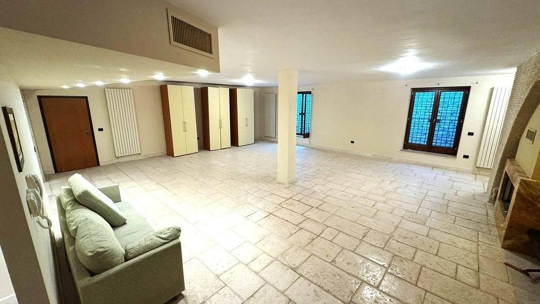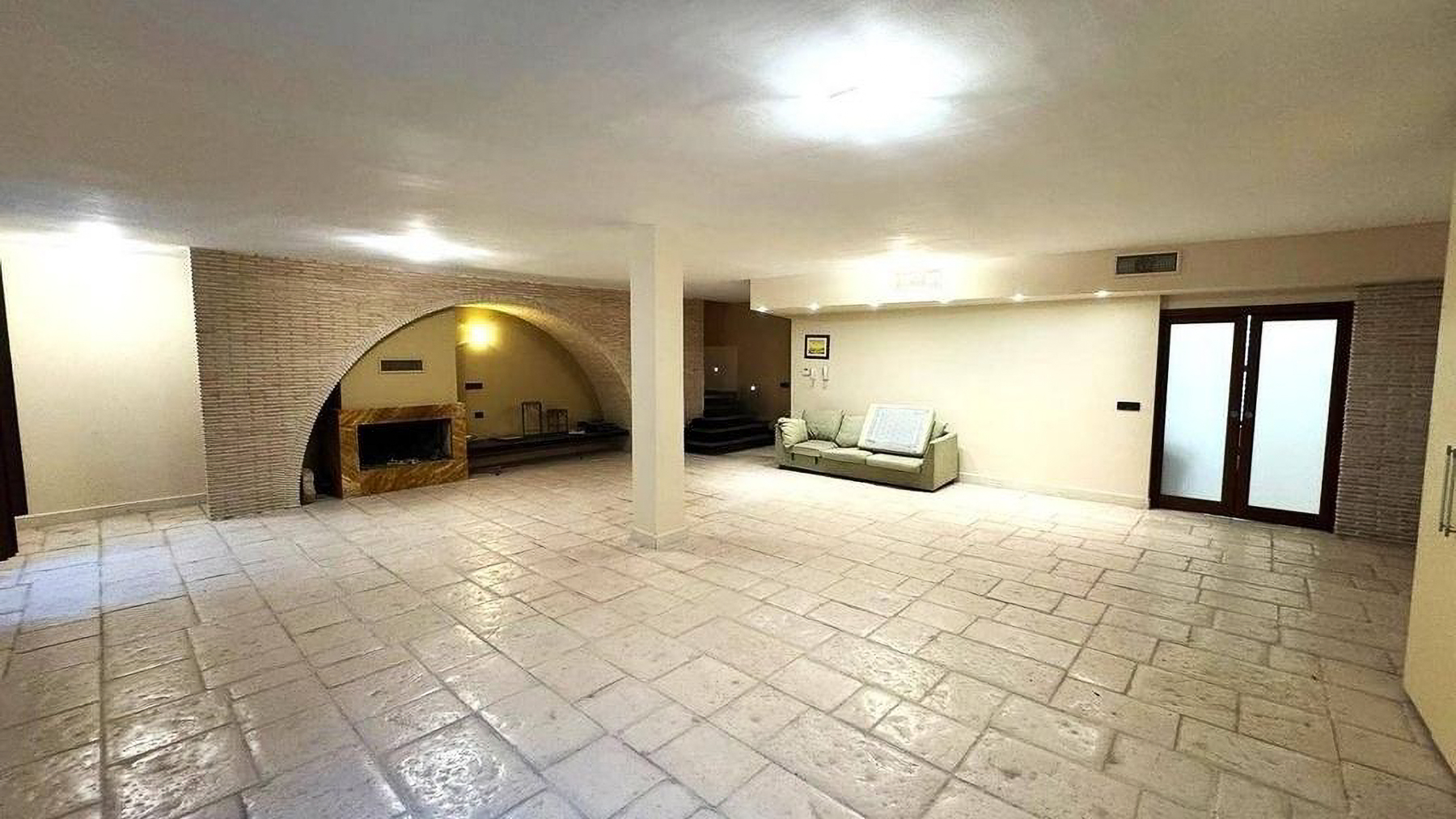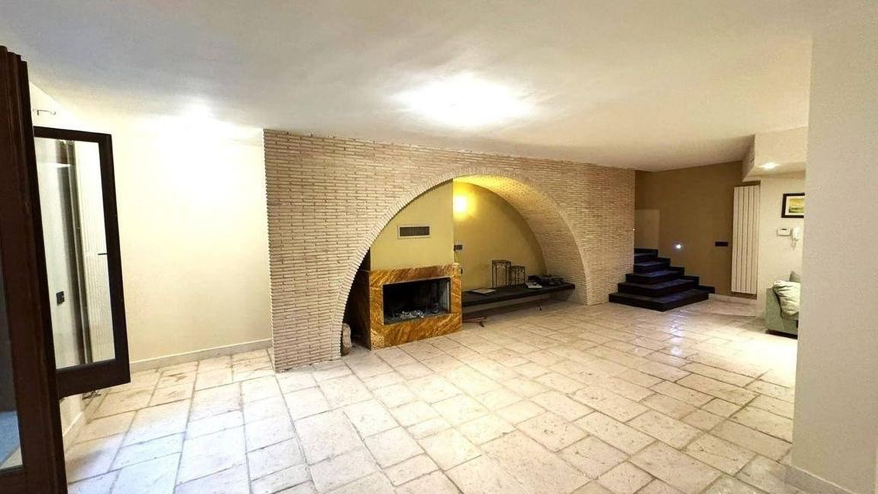 In the tranquil embrace of Foggia, this exquisite single-story residence stands as a beacon of elegance, painted in soft pink hues that evoke the warmth of a Mediterranean sunset. The gentle rustle of leaves whispers through the air as you approach along a stone pathway, leading you into a world where modern luxury and serene living converge. Spanning 162 square meters, this home offers five thoughtfully designed rooms and three bathrooms, all crafted with attention to detail. The charm of a private garden invites moments of peace and reflection, while a striking brick base adds a touch of rustic allure. Inside, a spacious living room awaits, adorned with a plush, light-colored couch and a textured brick wall that echoes the home's classic style. The marble fireplace and built-in bookshelf provide a cozy ambiance, illuminated by streams of natural light through a doorway leading outside. Wooden floors complement the neutral walls, creating a canvas for your personal touch. Envision yourself basking in the comfort of this home, where every corner is infused with tranquility and modern sophistication. Imagine evenings spent by the fireplace, or leisurely afternoons in the garden, surrounded by the soft murmur of the city. This residence offers a lifestyle of effortless elegance, where every moment is an invitation to savor the finer things in life. This remarkable property is a testament to refined living, seamlessly blending contemporary design with timeless charm. A rare jewel in the heart of Foggia, it promises an unparalleled experience in luxury real estate.