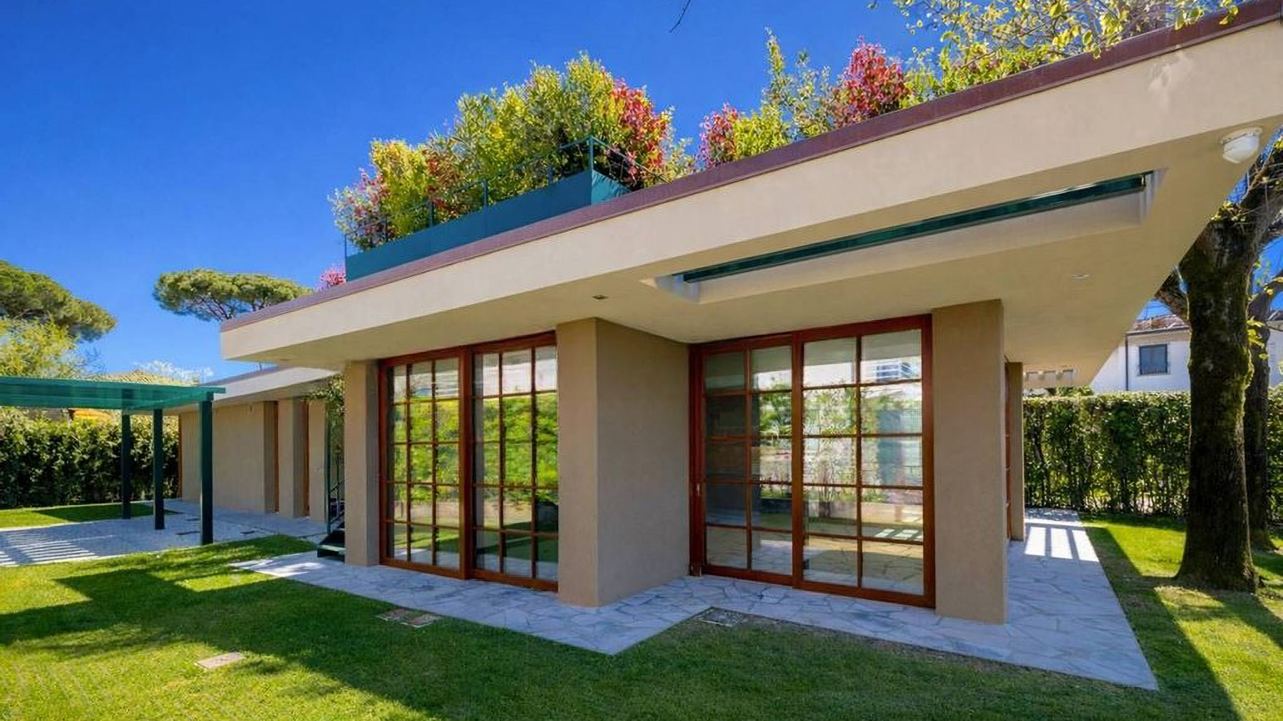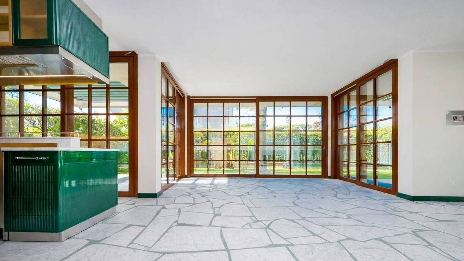 Enveloped in the serene embrace of Forte dei Marmi, this exquisite property radiates modern sophistication and elegance. The gentle hum of the sea breeze whispers through the expansive windows, infusing the space with light and a sense of tranquility. Step inside to discover a sanctuary where style and comfort coexist harmoniously. Spanning 160 square meters, this luxurious haven offers five meticulously designed rooms and three opulent bathrooms. The heart of the home is a luminous living area with a chic green kitchen island, complemented by sleek stone-patterned floors. Large glass doors reveal a private garden, a tranquil oasis perfect for relaxation. The terrace extends the living space outdoors, providing a seamless transition from inside to the sun-kissed surroundings of Lucca's vibrant lifestyle by the sea. Imagine mornings awash with natural light, your day beginning with a serene coffee on the terrace as gentle waves provide a soothing soundtrack. Evenings transform into magical moments under the stars, with alfresco dinners in the garden, enveloped by the fragrant embrace of blooming flora. This residence is the epitome of luxury and modernity, offering an unparalleled living experience in one of Italy's most sought-after locales. An exceptional treasure in the world of luxury real estate, it promises a life of elegance and unparalleled comfort.