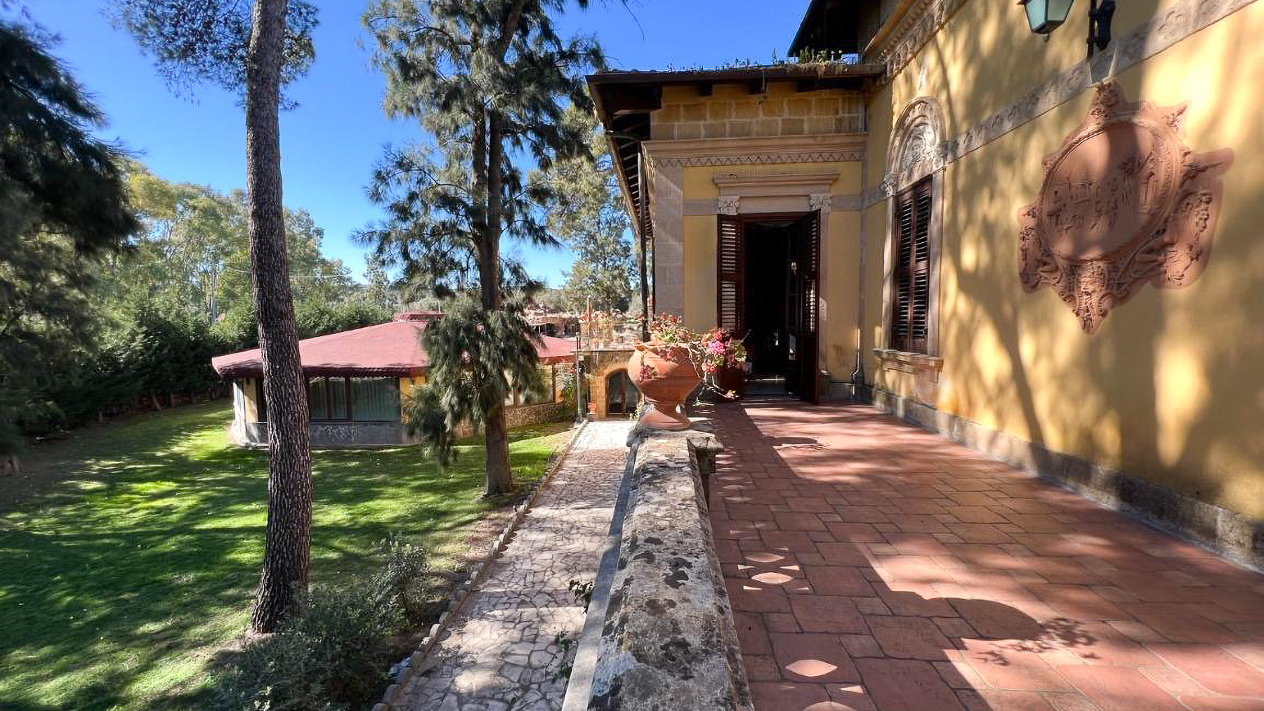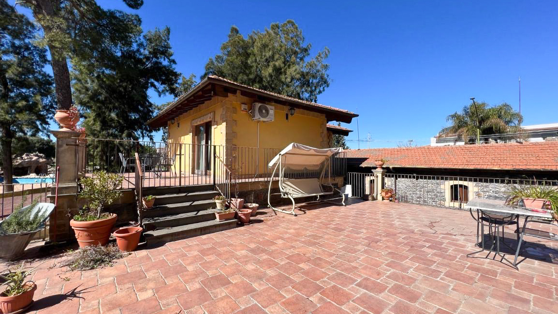 Amidst a verdant landscape, this exquisite property stands as a sanctuary of elegance and comfort. The gentle rustle of leaves and the scent of fresh blooms fill the air, while sunlight dances through the expansive glass windows, bringing warmth and light to every corner. This is a place where nature and luxury converge, offering an idyllic retreat from the everyday. Spanning an impressive 1200 square meters, this magnificent residence in Francofonte, Siracusa, embodies sophistication and charm. With 19 rooms and 8 bathrooms, it provides ample space for both relaxation and entertainment. The property's distinctive features include a private garden and a spacious terrace, allowing for seamless indoor-outdoor living. The architecture, characterized by its red-tiled roof and stonework, blends harmoniously with the lush surroundings, creating a serene and inviting atmosphere. Imagine waking up to the gentle sound of birdsong, enjoying a leisurely breakfast in the cozy kitchen adorned with wooden beams and warm tones. As the day unfolds, the beautifully landscaped garden and terrace become your personal oasis, perfect for savoring the tranquility of the countryside. Whether hosting intimate gatherings or simply unwinding with a good book, this home offers an unmatched lifestyle experience. This property is a testament to refined living, where every detail has been thoughtfully considered. It is a rare opportunity to own a piece of luxury in the heart of the Italian countryside, offering an unparalleled blend of timeless beauty and modern convenience.