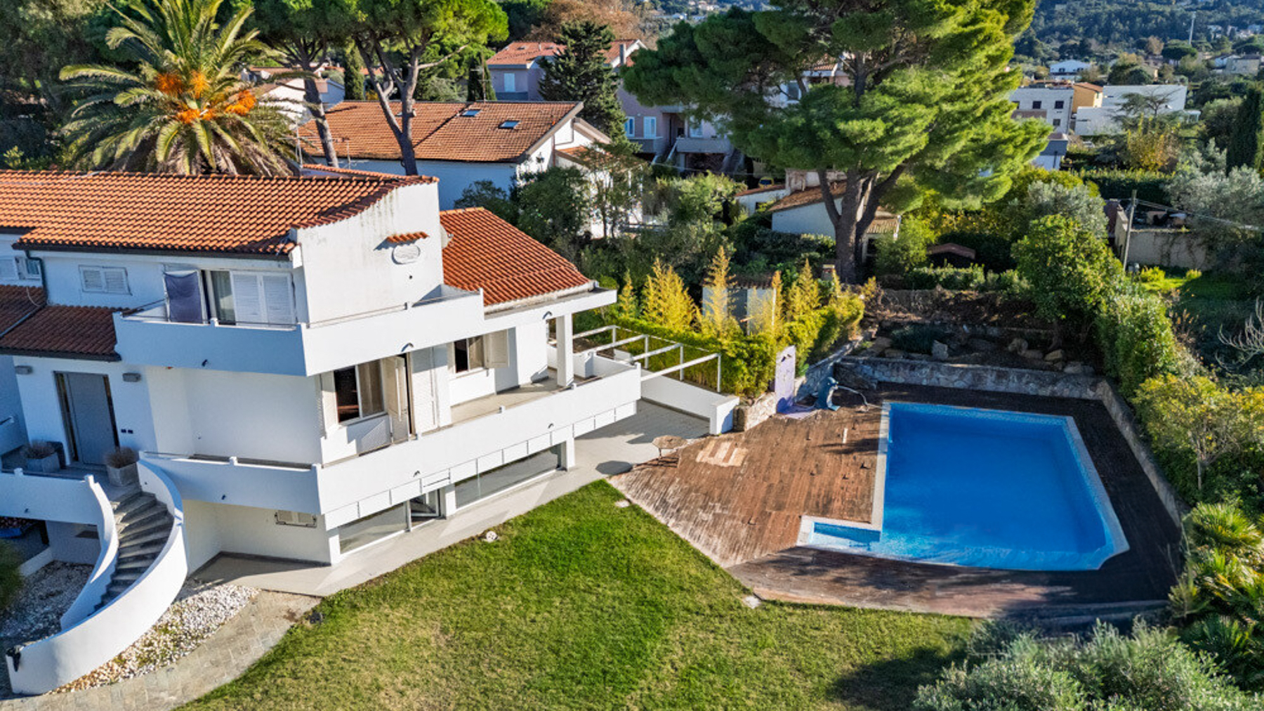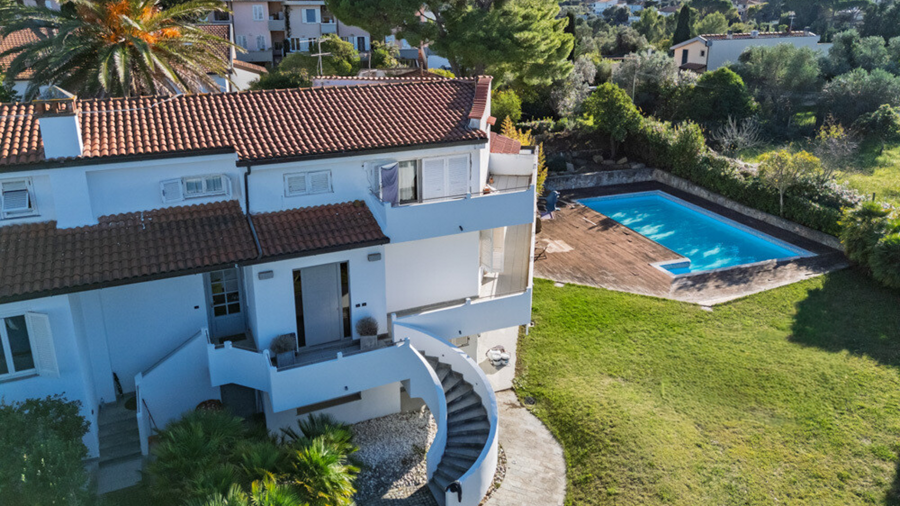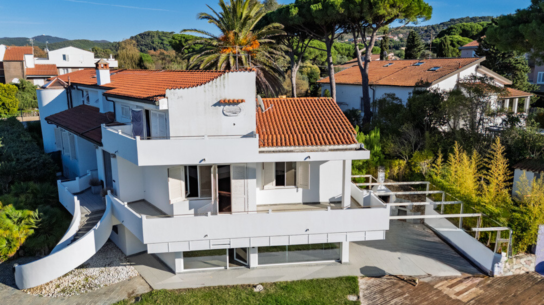 Perched in a serene landscape, this modern white house with its distinctive red-tiled roof is a sanctuary of elegance and tranquility. The gentle sound of rustling leaves and the sight of rolling hills create an ambiance of peace, while the scent of fresh greenery invigorates the senses, inviting you to explore the beauty of Livorno's picturesque setting. Spanning an impressive 400 square meters, this exquisite residence boasts nine spacious rooms and four luxurious bathrooms. The home is an architectural masterpiece with multiple balconies and large windows that flood the interiors with natural light, creating a harmonious connection with the lush surroundings. Key features include a private garden and a sparkling pool, offering a perfect retreat for relaxation and entertainment. Located in the vibrant coastal town of Livorno, this property epitomizes the ideal Mare lifestyle, where the sea's allure is just moments away. Living here means embracing a lifestyle of unparalleled comfort and joy. Picture yourself in the vibrant interior spaces, where bright turquoise walls and colorful decor ignite creativity and warmth. Imagine mornings spent in the child's delightful room, filled with sunlight and laughter, or afternoons lounging on the terrace, surrounded by nature's beauty. This residence stands as a testament to luxurious living. It offers a rare blend of modern design and timeless charm, making it an extraordinary find in the luxury real estate market. Experience a life of elegance and exclusivity in this remarkable home.