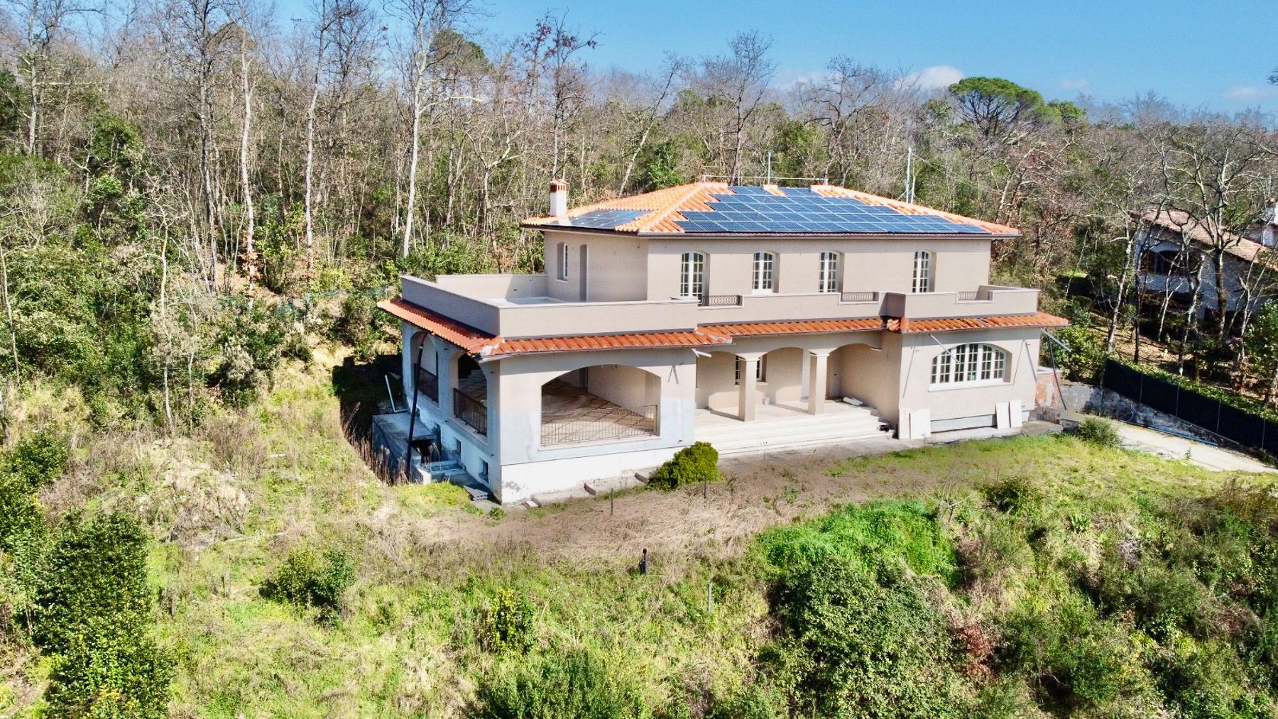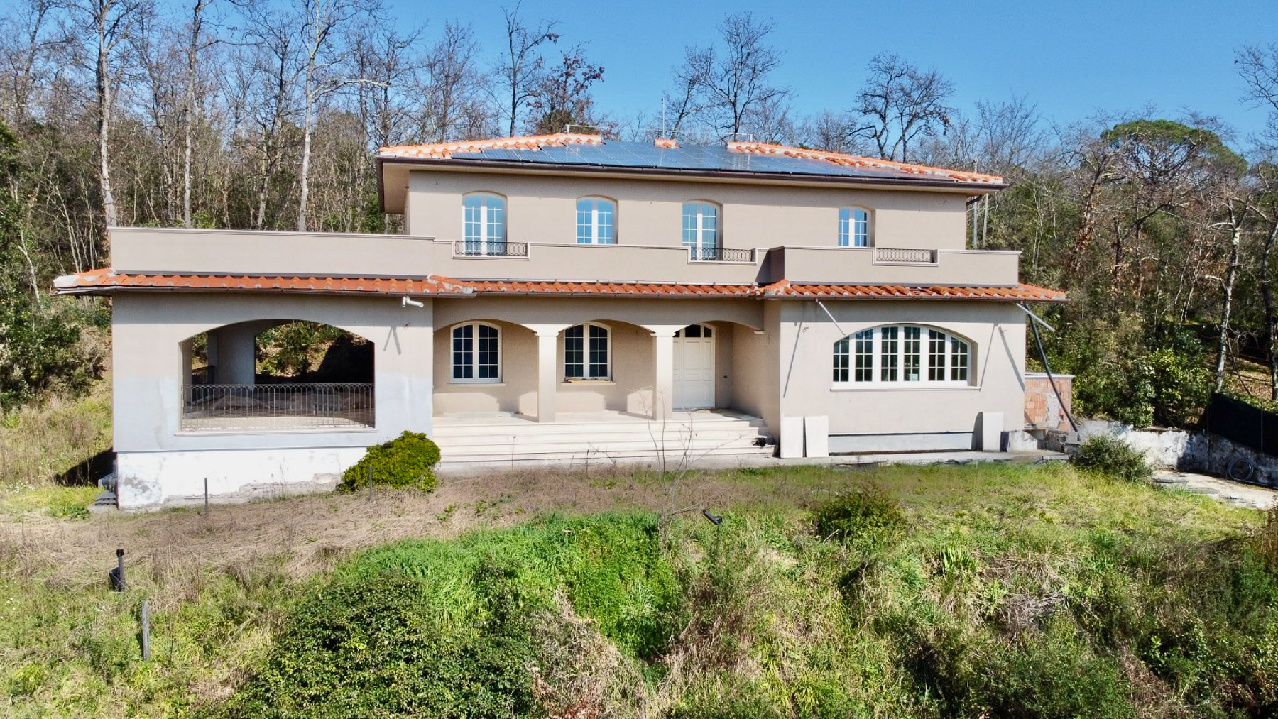 Perched amidst the rolling hills of the picturesque countryside, this exclusive residence offers a harmonious blend of elegance and serenity. Imagine waking up to the gentle rustle of cypress trees and the delicate scent of olive groves, as sunlight dances across the landscape. The azure sky stretches endlessly above, promising days filled with tranquility and charm. Spanning 480 square meters, this luxurious home features six spacious rooms and five opulent bathrooms, thoughtfully designed to cater to your every need. With its modern architectural design, the house boasts a tiled roof adorned with solar panels, seamlessly integrating sustainability with style. A private garden and a generous terrace provide idyllic spaces for relaxation and entertainment, inviting you to savor the beauty of the surrounding natural paradise. Located in the enchanting region of Lucca, this property embodies the quintessential Italian countryside lifestyle. Experience a life of unparalleled beauty and tranquility as you immerse yourself in the serene ambiance of this exquisite estate. Picture leisurely afternoons on the terrace, where the warm Mediterranean breeze envelops you while you enjoy panoramic views of the lush landscape. This home is not just a place to live; it is a sanctuary where cherished memories are made. This property is a true masterpiece, offering a rare and prestigious opportunity to own a slice of paradise in the luxury real estate market. Here, modern comforts and timeless elegance converge, creating an extraordinary lifestyle that is simply unmatched.
