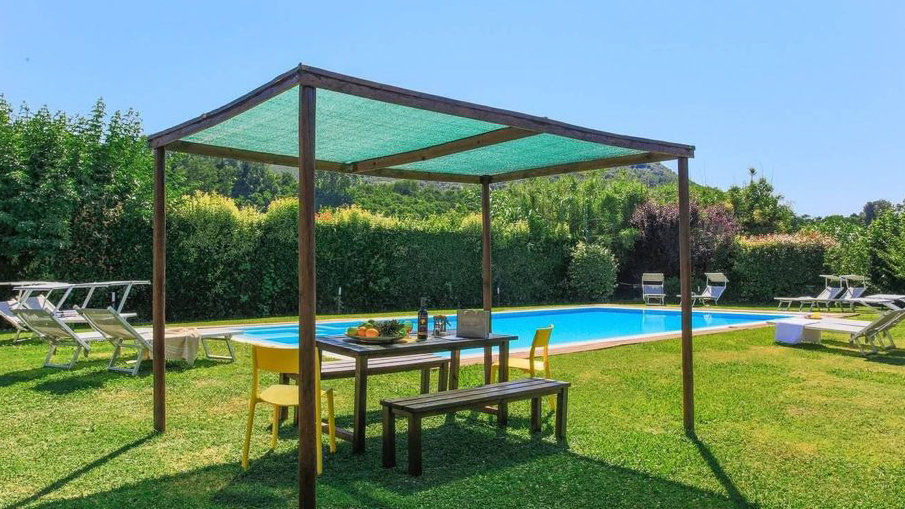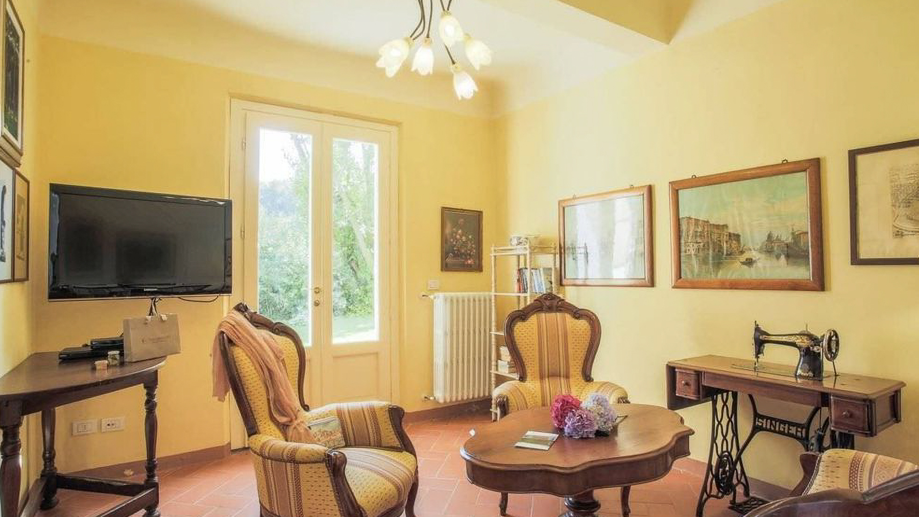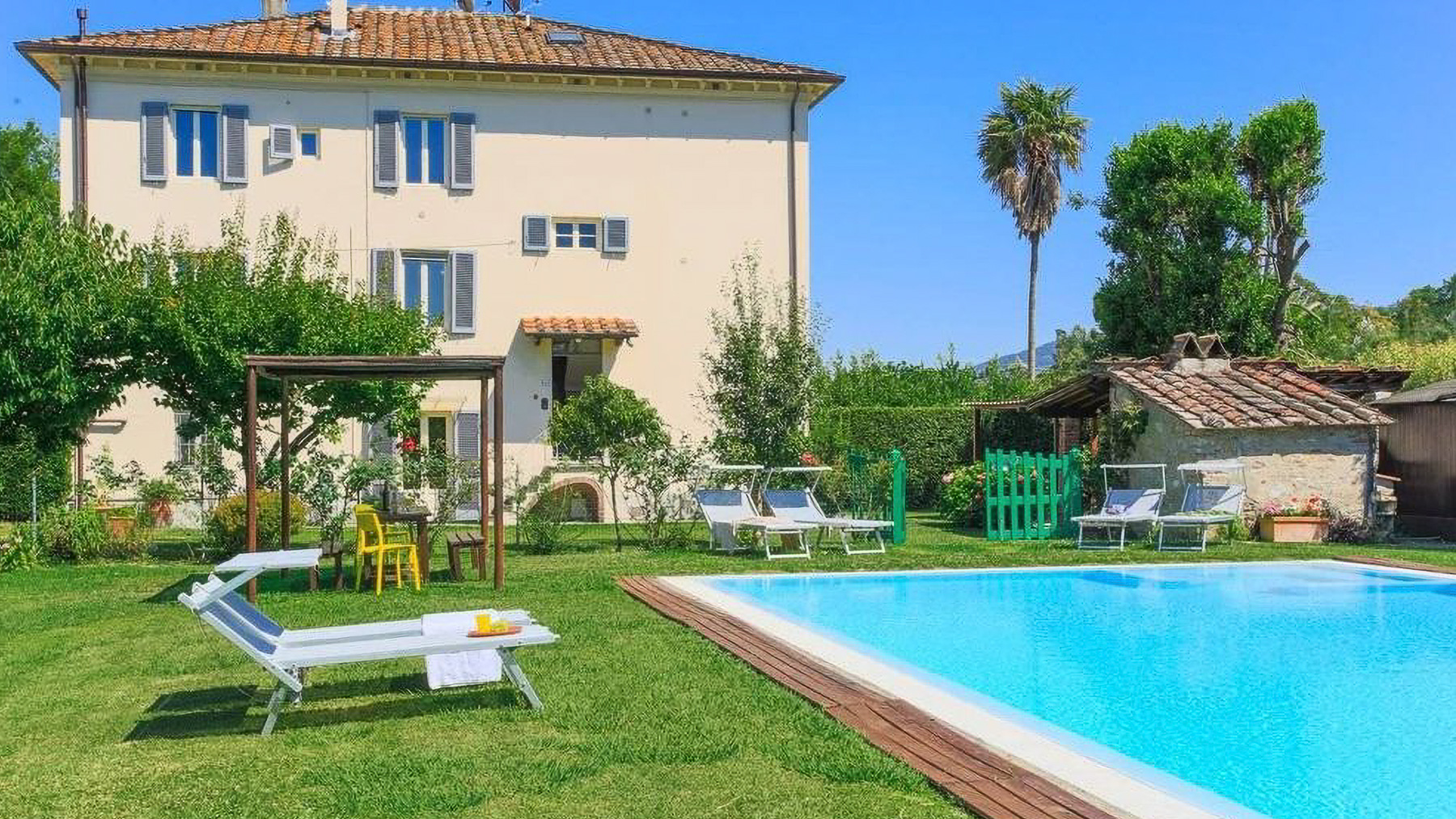 Tucked away in an enchanting corner of Lucca, this exquisite property is a sanctuary of elegance and serenity. Imagine waking up to the gentle sounds of nature, with sunlight dancing through the leaves and a soft breeze carrying the scent of blooming flowers. This idyllic setting promises peace and luxury at every turn. Spanning an impressive 300 square meters, this home features five spacious rooms and three elegant bathrooms, perfectly designed for comfort and sophistication. The light-colored exterior and terracotta roof lend a timeless charm to the residence, complemented by a private garden and an inviting swimming pool. Multiple windows flood the interior with natural light, enhancing the warm, inviting ambiance of the cozy sitting area adorned with yellow walls, striped sofas, and curated artwork. Located in the picturesque countryside of Lucca, this property embodies a lifestyle of tranquility and refinement. Living here is an invitation to indulge in the simple pleasures of life. Picture yourself lounging by the pool on a sunny afternoon, or enjoying a leisurely dinner in the shaded seating area surrounded by lush greenery. The serene environment provides the perfect backdrop for creating cherished memories with family and friends. This property is a true testament to luxury and exclusivity. Its unique blend of classic charm and modern conveniences makes it a rare find in the prestigious real estate market—an opportunity not to be missed.