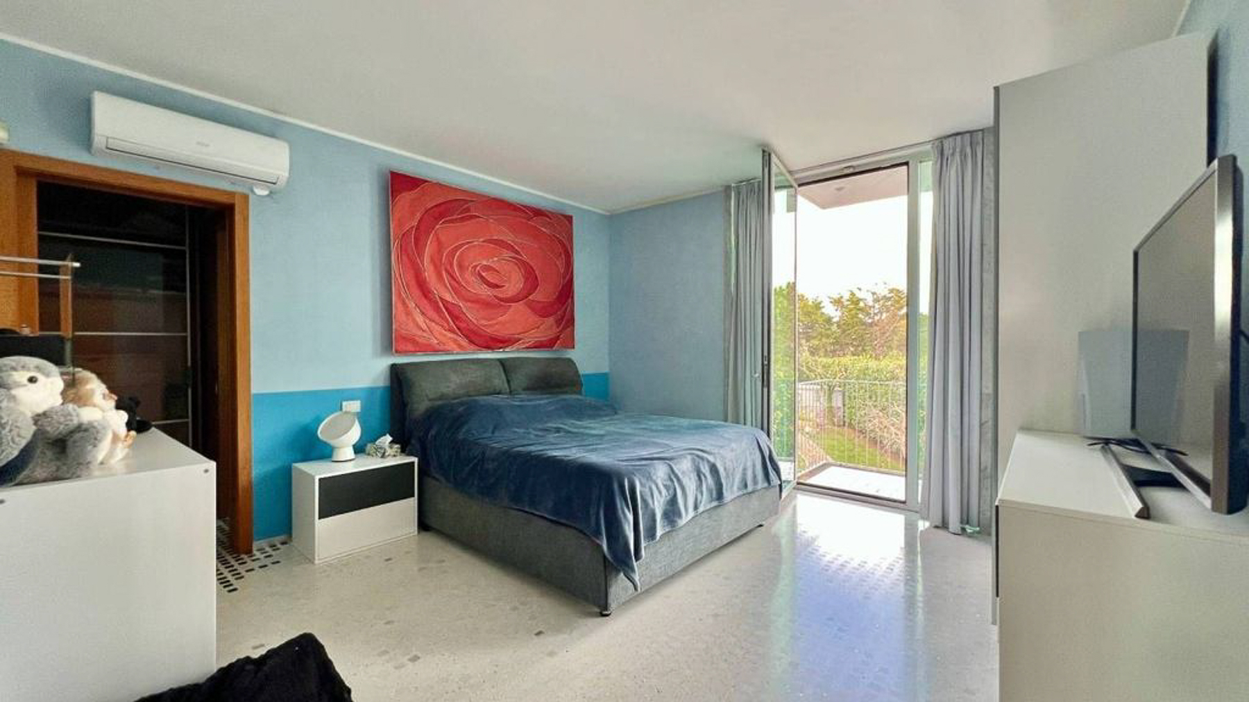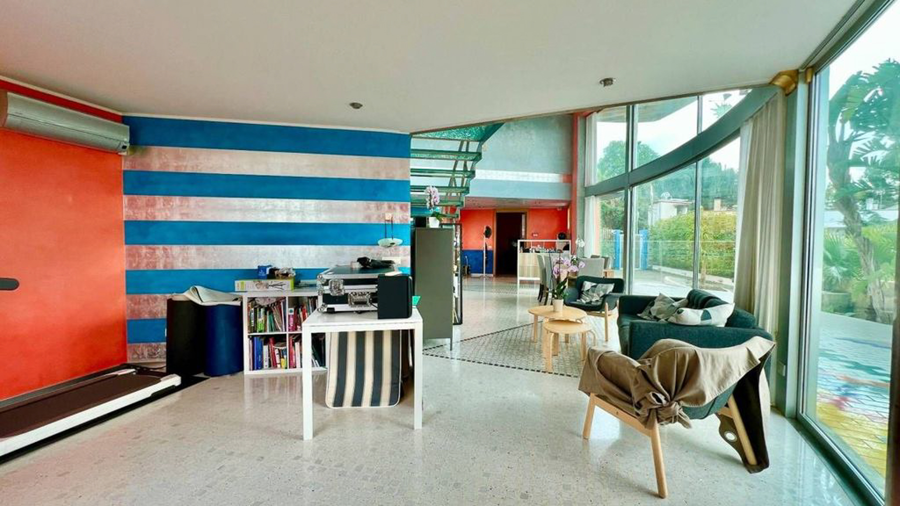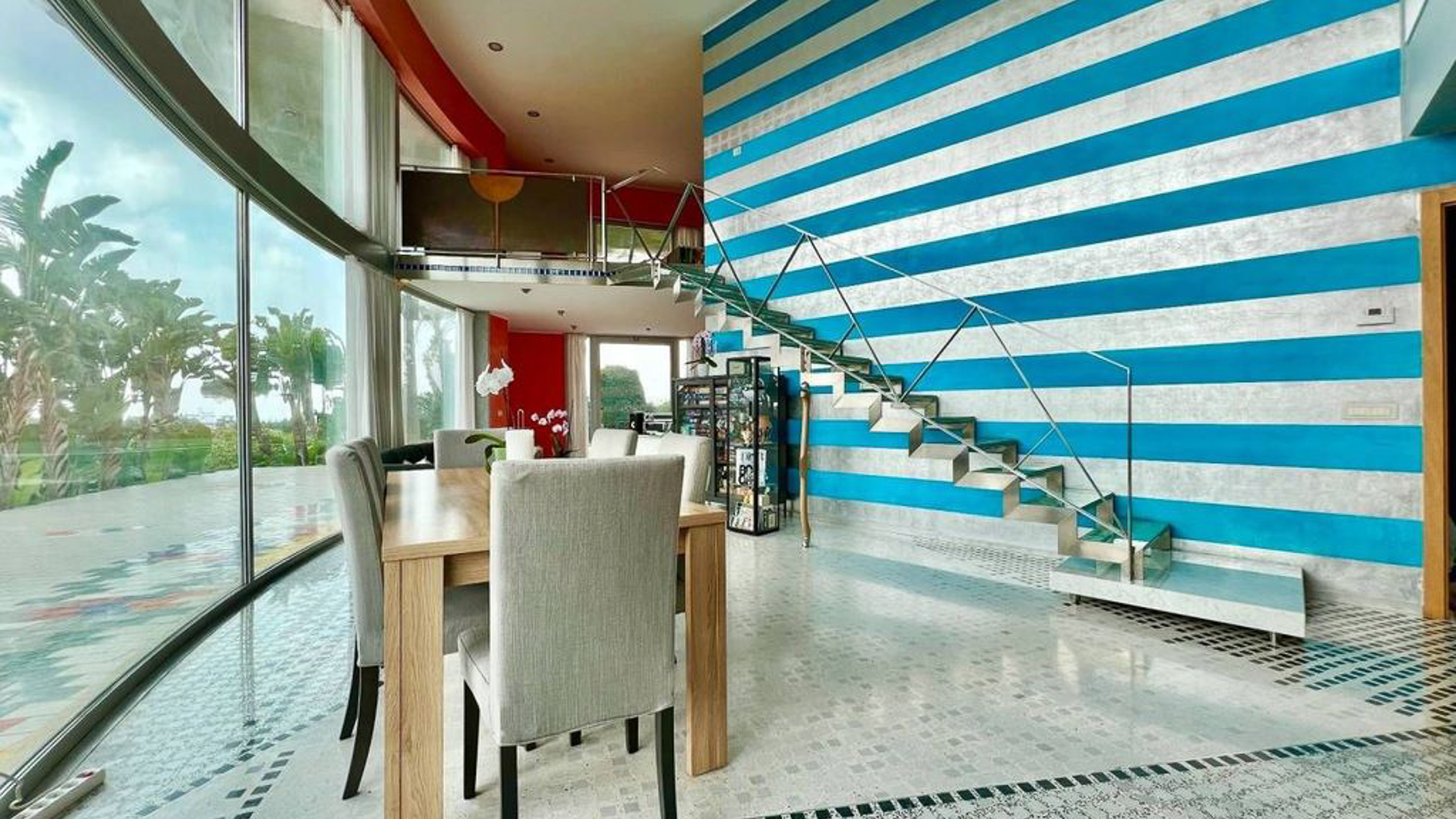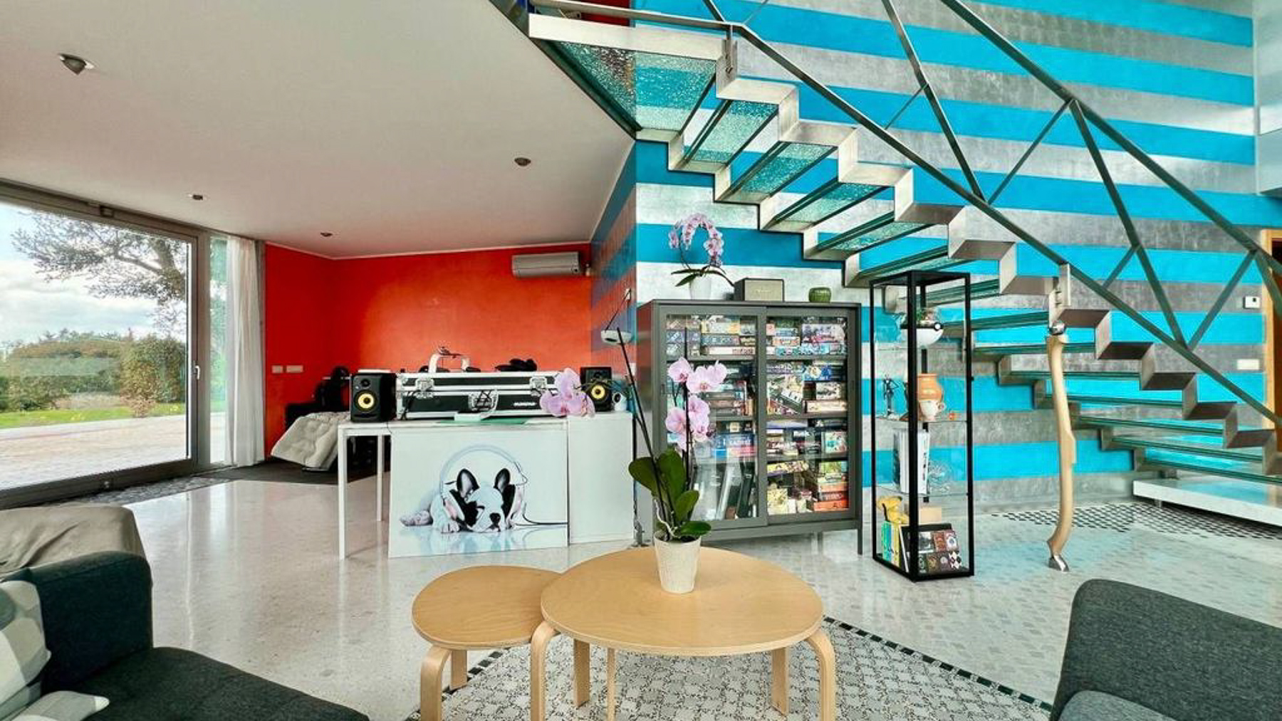 In the heart of Matino, Lecce, where the vibrant cityscape meets serene natural surroundings, lies a modern masterpiece waiting to be discovered. This exquisite property invites you to step into a world where luxury and contemporary style blend seamlessly. Imagine waking up to the soft glow of morning light streaming through expansive windows, filling your space with warmth and tranquility. Spanning an impressive 365 square meters, this residence boasts five spacious rooms and three elegantly designed bathrooms. The interior captivates with its bold blue and gray striped walls, a striking suspended glass staircase, and a dining area that exudes sophistication. Outside, a private garden and a generous terrace offer a seamless extension of the living space, perfect for entertaining or enjoying peaceful moments of reflection. Living here is an experience like no other. Picture yourself hosting intimate gatherings around a wooden dining table, surrounded by loved ones in a space filled with light and life. Step onto the terrace and feel the gentle breeze while you take in the lush green views, creating memories that will last a lifetime. This property is a testament to luxury and style, offering a unique opportunity to own a piece of modern elegance in Matino. It stands as a beacon of refined living, promising a lifestyle of comfort and exclusivity in the heart of the city.