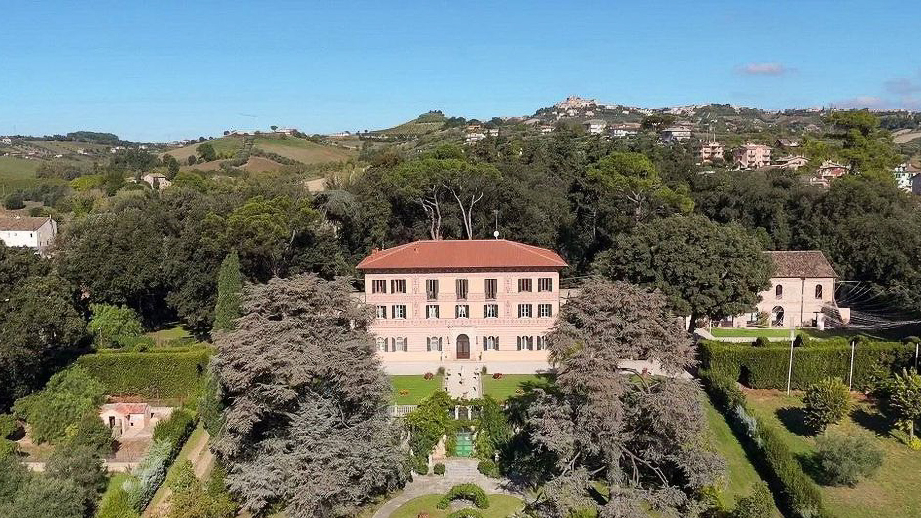 In the heart of Monteprandone, lies a majestic villa surrounded by the serenity of nature. Imagine waking up to the gentle rustle of leaves and the soft chirping of birds, as the morning sun bathes the lush landscape in a warm glow. The scent of fresh blossoms fills the air, promising a day of peace and luxury. This expansive estate spans 1879 square meters and boasts 55 rooms, including 3 luxurious bathrooms. Its architectural grandeur is matched only by its exquisite details, from the red-tiled roof to the green shutters adorning its many windows. The private garden is a verdant oasis, perfect for leisurely strolls or intimate gatherings. Located in the charming Provincia di Ascoli Piceno, this property offers a quintessential Italian countryside lifestyle. Living here is an experience like no other. Picture leisurely afternoons spent lounging in the meticulously landscaped garden, where every corner offers a new vista of natural beauty. The tranquility of the surroundings is a perfect backdrop for creating cherished memories with family and friends. This villa is a masterpiece of elegance and comfort, a rare find in the world of luxury real estate. Its blend of timeless architecture and serene location make it an exquisite retreat for those seeking a life of refined distinction.