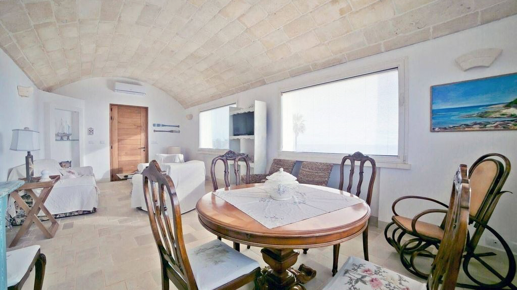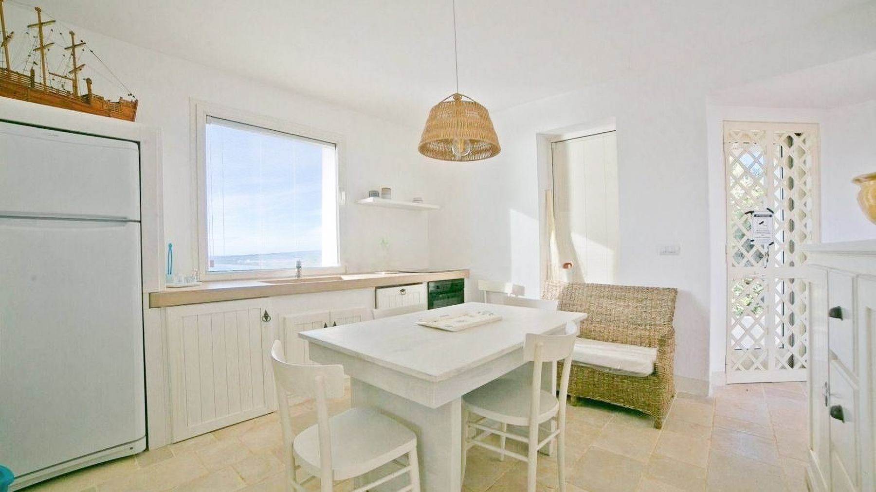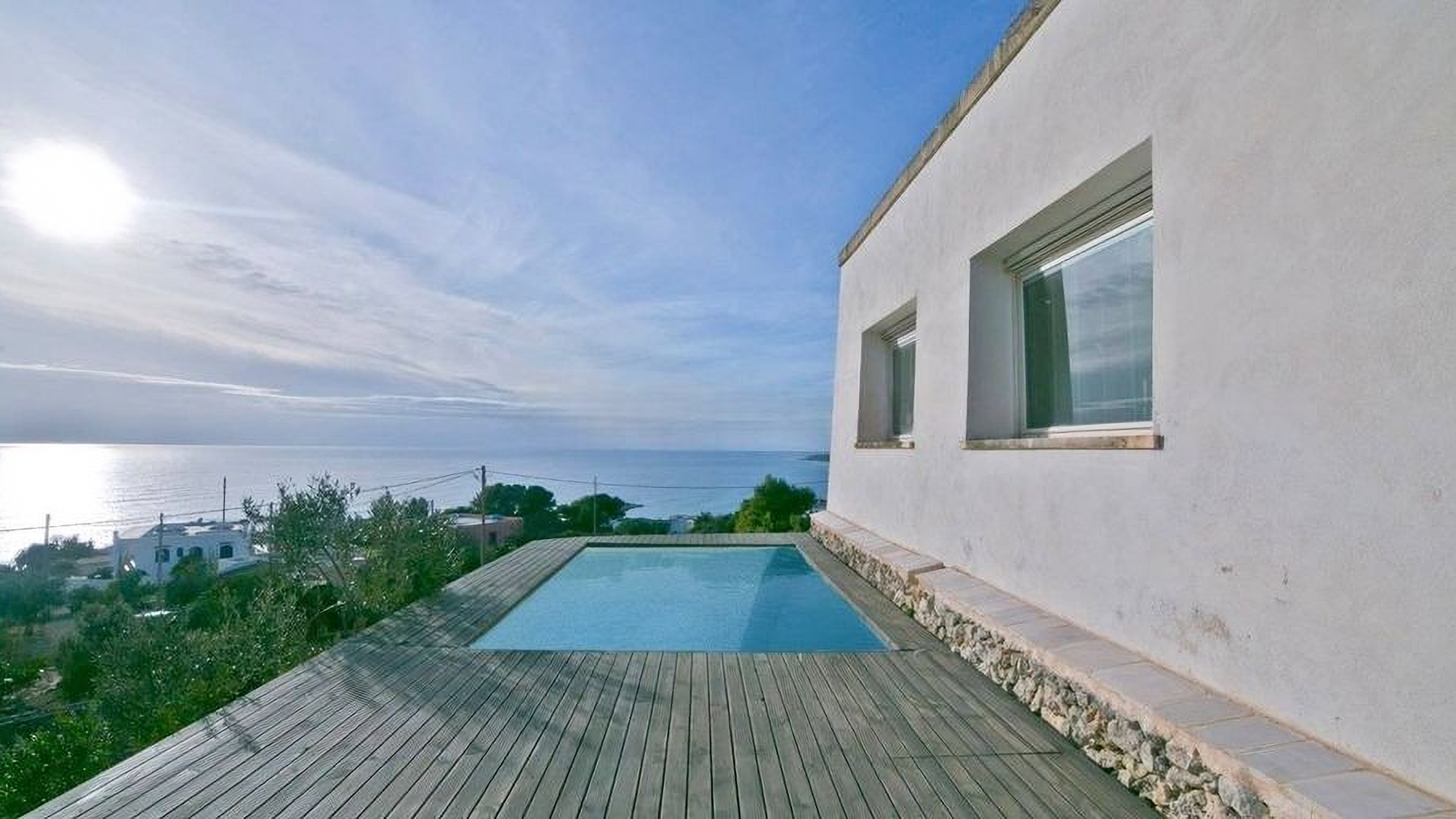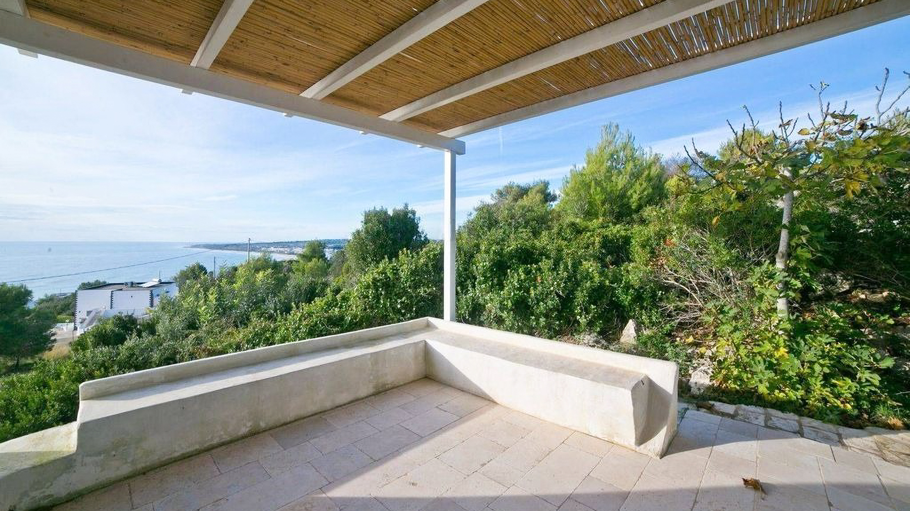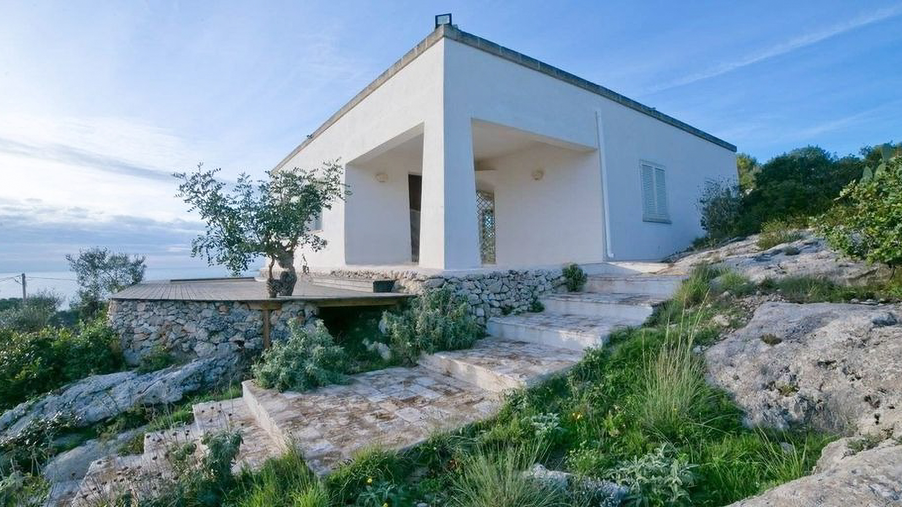Perched elegantly on a rocky landscape, this modern sanctuary beckons with its pristine white façade, harmoniously blending with the surrounding greenery. The gentle rustle of leaves in the breeze and the panoramic views from expansive windows create an ambiance of serene sophistication. A wooden deck extends outward, promising tranquil moments under the vast, azure sky. Spanning 160 square meters, this exquisite property boasts four spacious rooms and two meticulously designed bathrooms. Its minimalist architecture is highlighted by clean lines and abundant natural light, showcasing a seamless fusion of elegance and functionality. Located in the picturesque Morciano di Leuca, Lecce (LE), the residence features a private garden, a refreshing pool, and a stunning terrace that offers spectacular vistas. This home is an oasis of tranquility, perfectly embodying the Mare lifestyle. Imagine a life where each day begins with the gentle glow of sunrise streaming through large windows, and evenings are spent lounging by the pool or dining al fresco on the terrace. The minimalist bathroom invites relaxation and rejuvenation, with its elegant design and soothing atmosphere. This home offers not just a place to live, but a lifestyle defined by peace, luxury, and comfort. A true masterpiece in the realm of luxury real estate, this property is a testament to modern elegance and superior design. It presents a rare opportunity to own an extraordinary retreat that seamlessly blends with its natural surroundings.