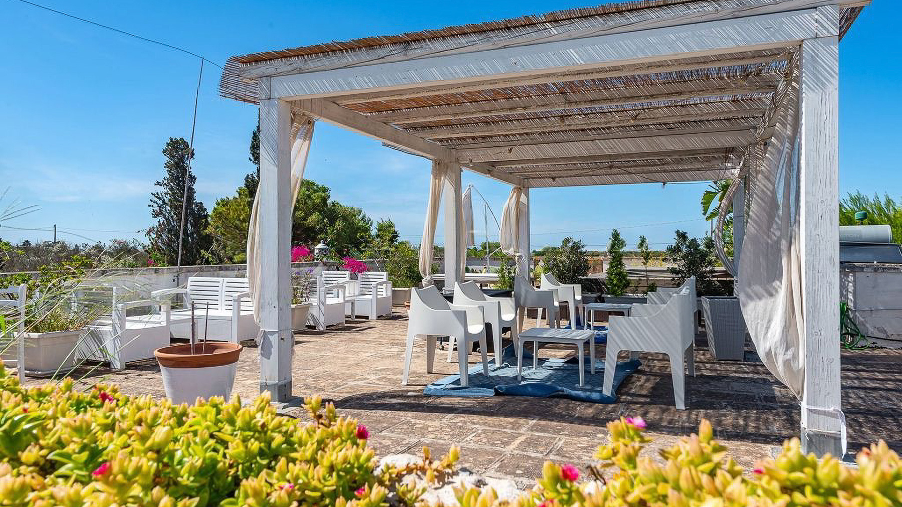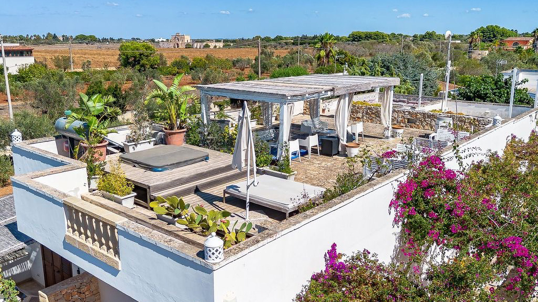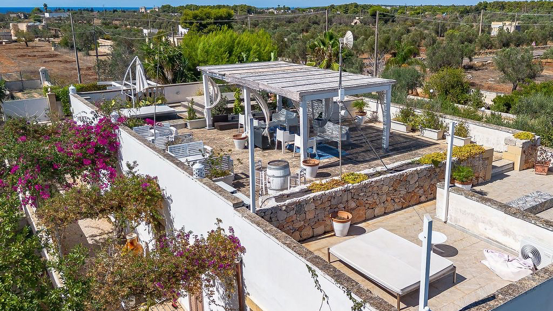 Amidst the serene embrace of verdant landscapes, this exquisite property offers a sanctuary of elegance and tranquility. As sunlight dances across the fields and a gentle breeze carries the scent of blooming flora, a sense of peace envelops you in this idyllic countryside retreat. Spanning 600 square meters, this magnificent estate in Nardò, Lecce, boasts 20 spacious rooms and 7 luxurious bathrooms. The property features a private garden and pool, perfect for unwinding and entertaining. The layout is thoughtfully designed, with multiple buildings harmoniously integrated into the lush landscape, providing both privacy and ample space for gatherings. The rooftop terrace, adorned with potted palms and comfortable seating, offers breathtaking views of the surrounding rural beauty. Living here means embracing a lifestyle of unparalleled serenity and sophistication. Imagine mornings spent strolling through your private garden, afternoons lounging by the pool, and evenings savoring alfresco meals on the terrace, under a canopy of stars. This residence invites you to experience the harmonious blend of nature and luxury. This property is a testament to refined living, offering a rare opportunity to own a piece of paradise in the heart of the Italian countryside. It is a jewel of luxury real estate, promising an extraordinary lifestyle for the discerning buyer.