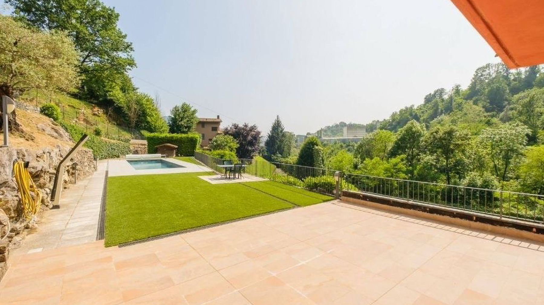 In a serene setting where nature's beauty meets luxurious living, this property offers a retreat from the hustle and bustle of everyday life. Enveloped by lush greenery and majestic mountains, the air is filled with the soothing sounds of nature and the gentle ripple of water from the sparkling swimming pool. The warm hues of an orange-painted building add a welcoming touch to this idyllic landscape. Spanning an impressive 809 square meters, this exquisite residence in Nembro, Bergamo boasts five spacious rooms and three elegant bathrooms. The property's distinctive features include a private garden and a charming terrace, perfect for savoring the tranquil countryside lifestyle. Whether you are entertaining guests or enjoying a quiet moment of solitude, the well-maintained grounds provide a picturesque backdrop for any occasion. Living here means embracing a lifestyle where every day feels like a vacation. Picture yourself lounging by the pool, surrounded by the scent of fresh grass and the sight of rocky terrains, or enjoying an intimate dinner on the terrace with the mountain views as your backdrop. Each moment spent here is an invitation to relax and rejuvenate. This property is a testament to refined taste and exclusivity, offering a rare opportunity to own a piece of paradise in the heart of the Italian countryside. A true gem that seamlessly blends natural beauty with luxurious comfort, it stands as a symbol of elegance and sophistication in the luxury real estate market.