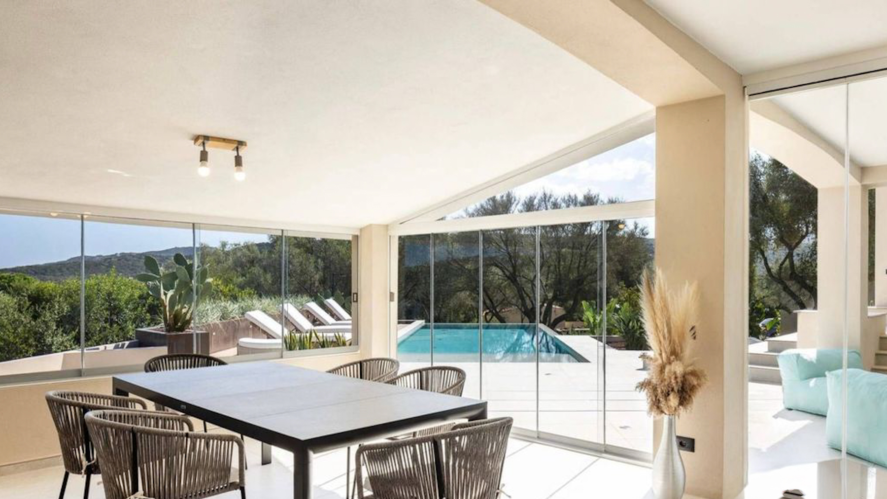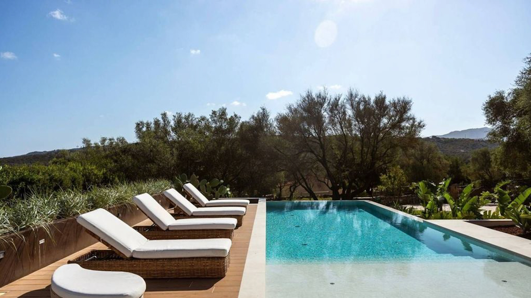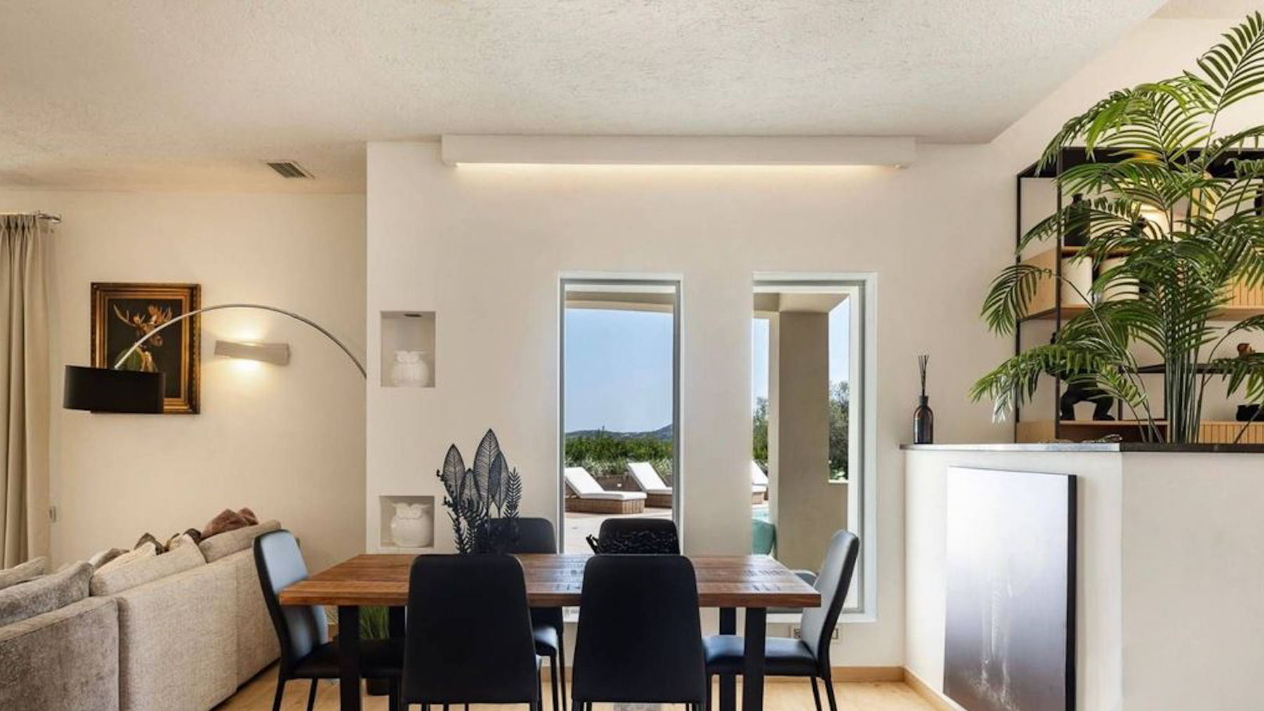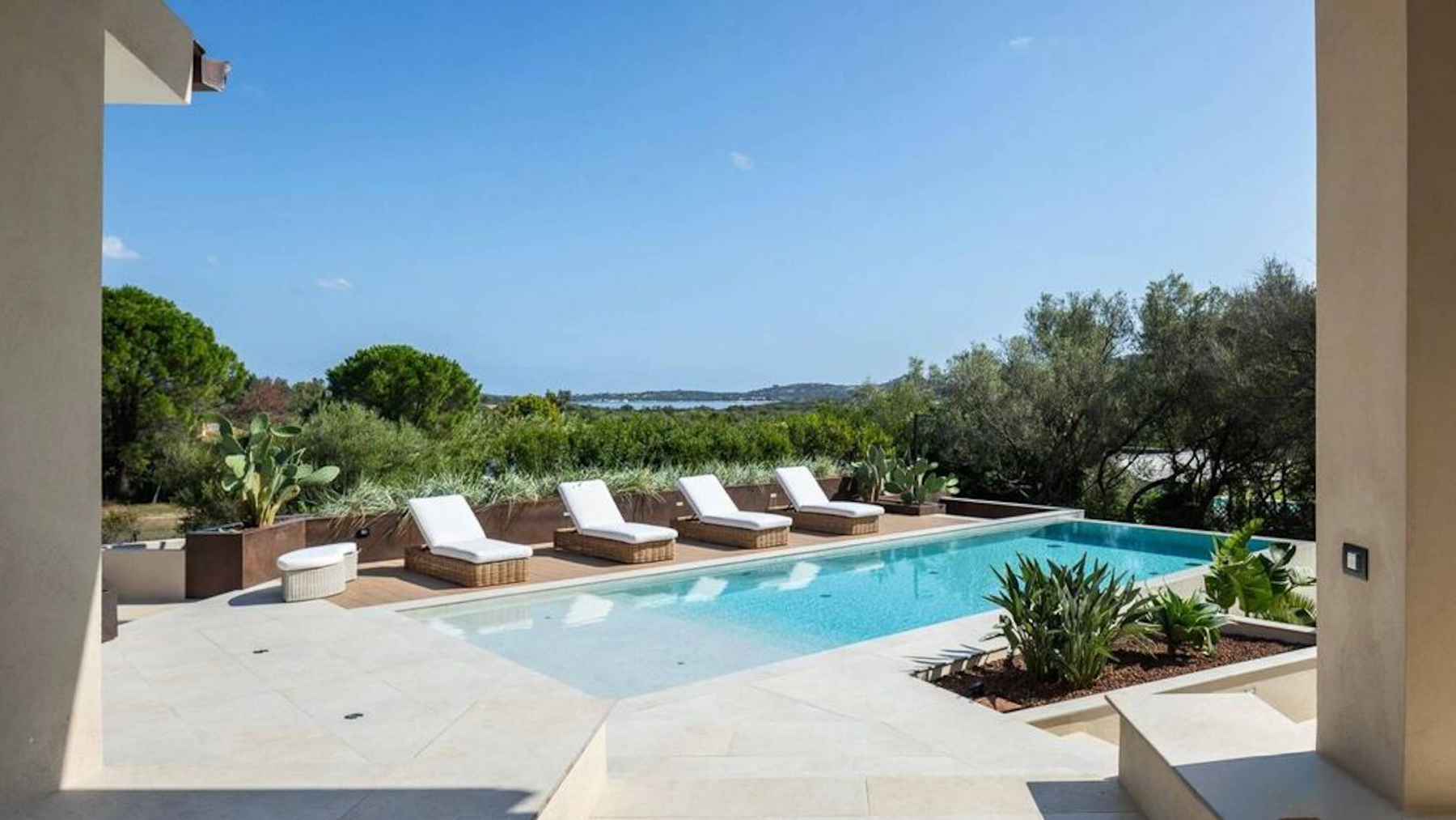 Set amidst a stunning landscape, this modern abode offers a sanctuary of peace and sophistication. The gentle rustle of leaves and the soft splash of water from the nearby pool create a symphony of serenity. Imagine waking up to the sight of rolling hills and clear blue skies, with the scent of fresh greenery enveloping your senses. Spanning 215 square meters, this exquisite property in Olbia, Provincia della Gallura Nord-Est Sardegna, boasts five spacious rooms and two elegant bathrooms. Designed for luxury living, the home features a private garden and a sparkling pool, perfect for relaxation or entertaining guests. Solar panels on the roof highlight the property's commitment to sustainability. The stone pathway leading to the entrance adds a touch of timeless charm, while the picturesque mountain backdrop completes this idyllic setting. Living here means embracing a lifestyle of tranquility and elegance. Picture yourself lounging by the pool, surrounded by lush greenery, or enjoying a leisurely stroll through the vibrant countryside. This property offers an escape from the everyday hustle and bustle, allowing you to savor life's simple pleasures in a serene environment. This exceptional home combines modern luxury with nature's beauty—a rare find in the prestigious real estate market. It’s not just a house; it’s a dream waiting to be lived.