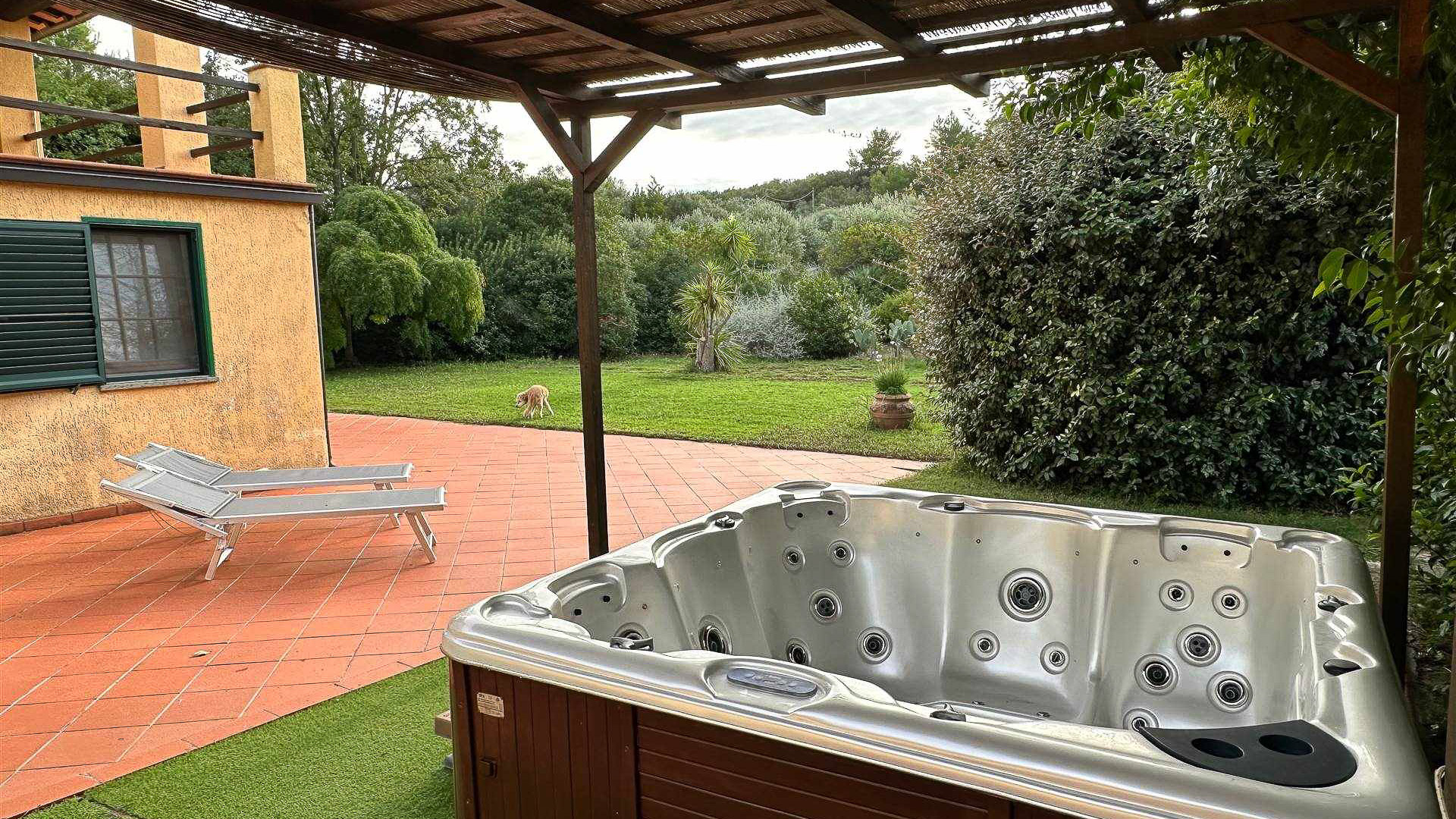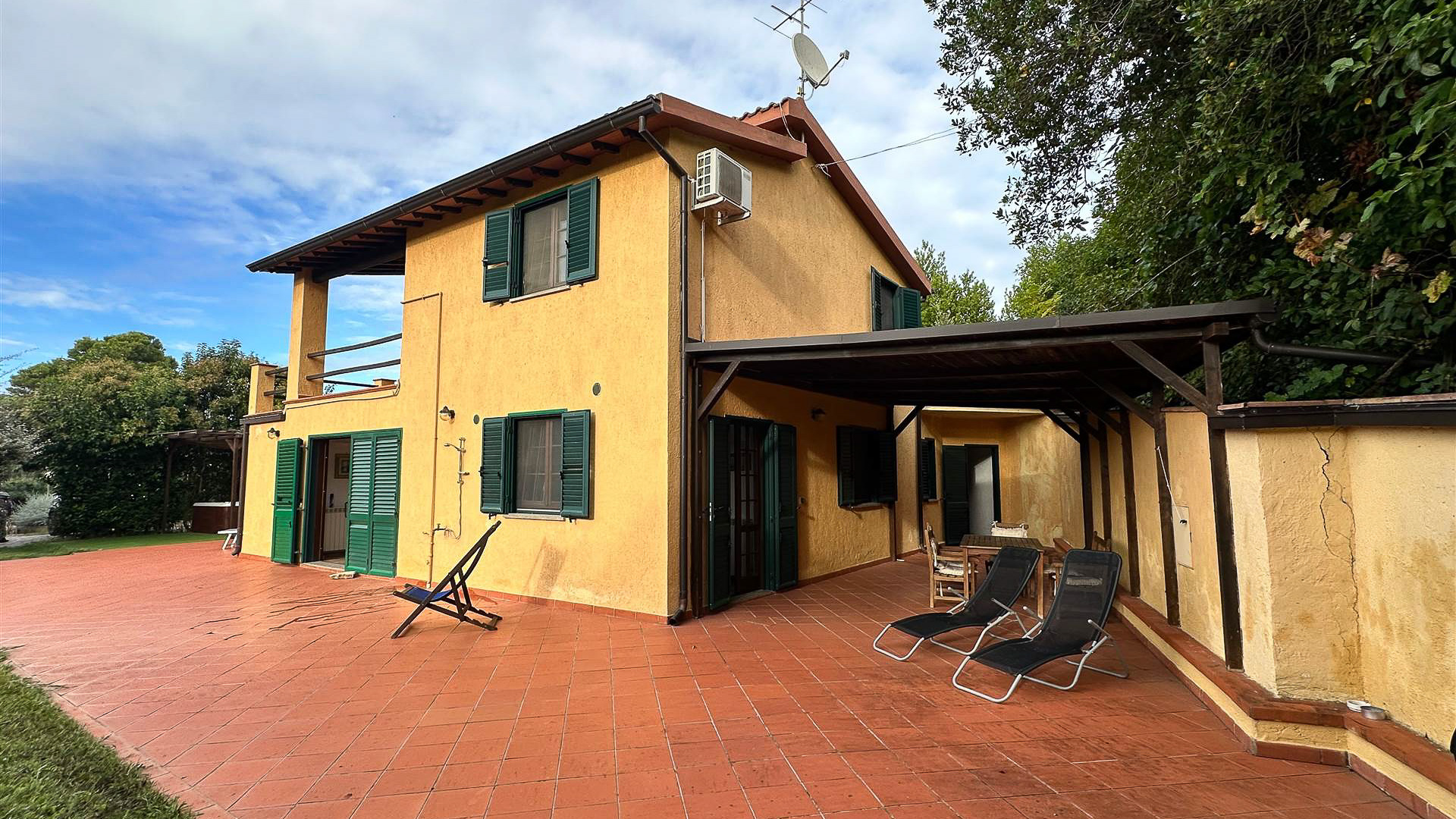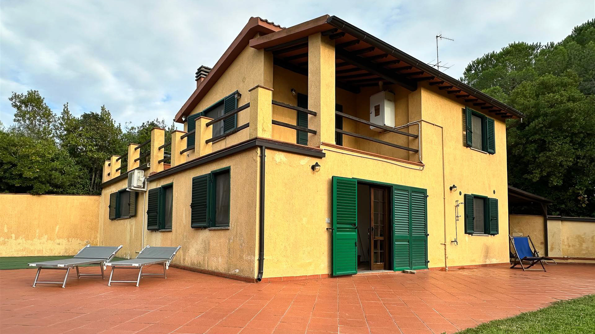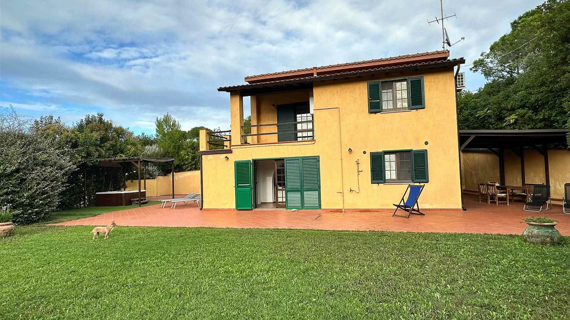 Tucked away in a serene woodland setting, this enchanting two-story home captivates with its warm yellow facade and charming dark green shutters. The tranquil surroundings offer a retreat from the hustle and bustle, where the gentle rustle of leaves and the sweet scent of fresh grass fill the air, inviting you to indulge in the peace and beauty of nature. Spanning 229 square meters, this exquisite residence in Orbetello, Grosseto boasts five spacious rooms and two elegant bathrooms, strategically designed for comfort and luxury. The house features a private garden, perfect for unwinding in the afternoon sun, and a delightful terrace that promises breathtaking views. The inviting balcony on the upper floor, surrounded by lush greenery, adds to the charm of this countryside haven, making it a true gem in the heart of the Italian campagna lifestyle. Living here is a dream come true, where mornings can be spent sipping coffee on the terrace as the sunlight dances through the trees, and evenings are perfect for hosting unforgettable gatherings under a canopy of stars. The outdoor patio with its terracotta tiles lends itself to leisurely afternoons spent lounging, while the verdant landscape provides a stunning backdrop to everyday life. This property is a testament to refined elegance and modern comfort, a rare find in the luxury real estate market. Its unique blend of natural beauty and sophisticated design sets it apart as a distinguished sanctuary for those who appreciate the finer things in life.