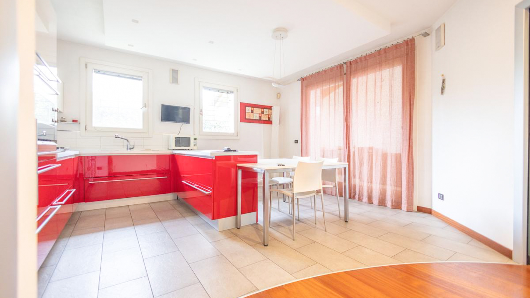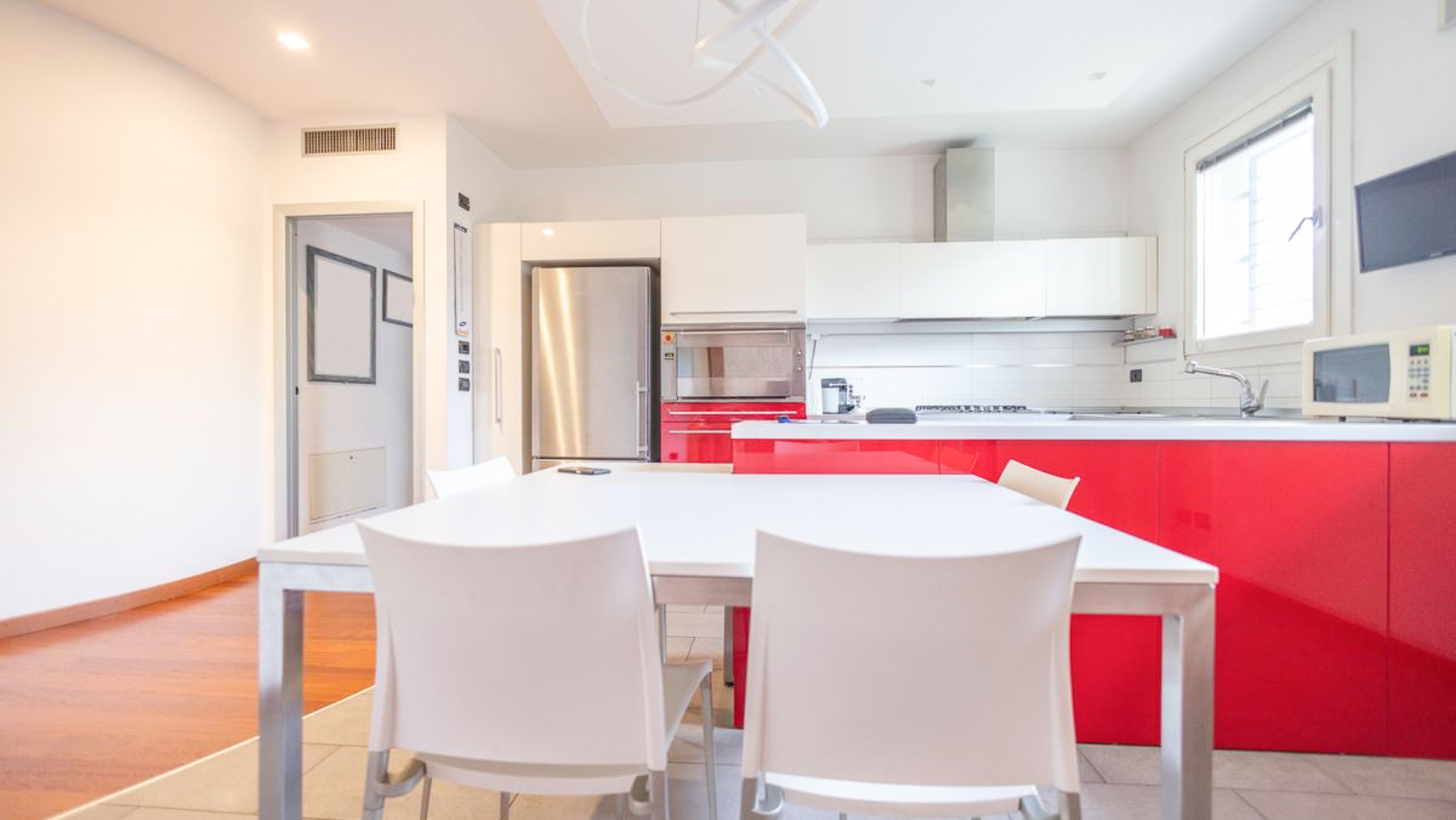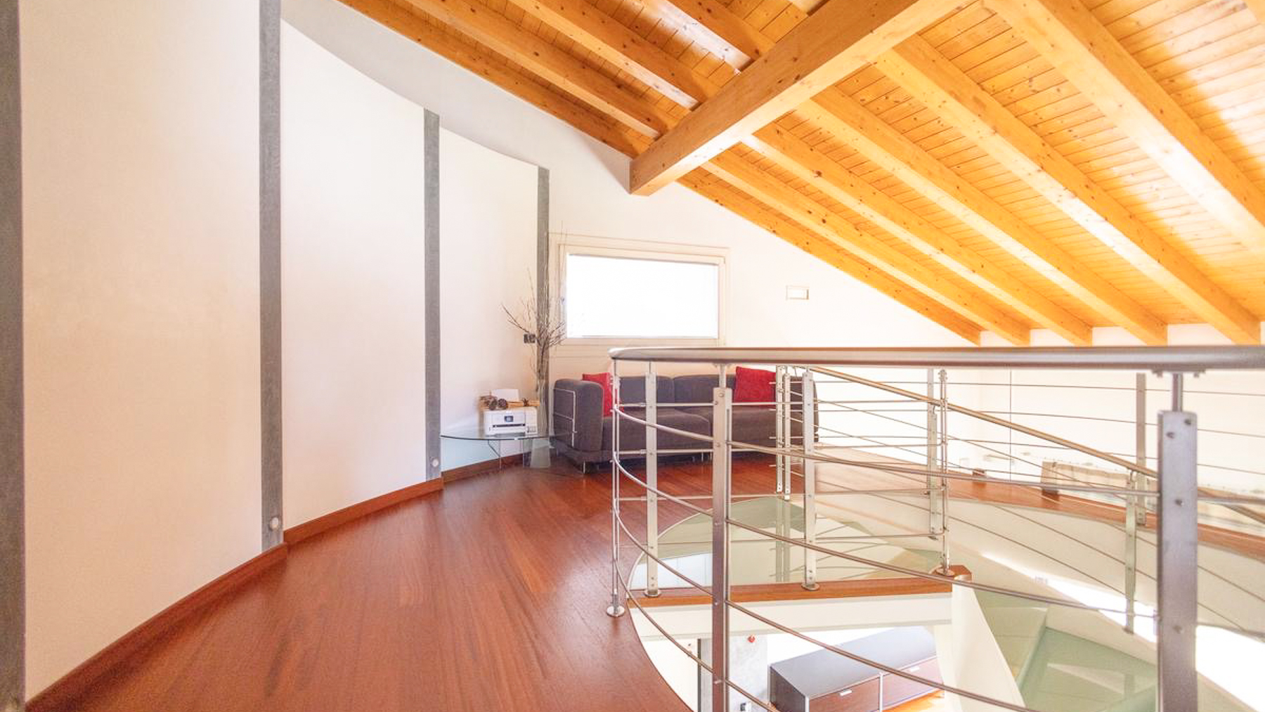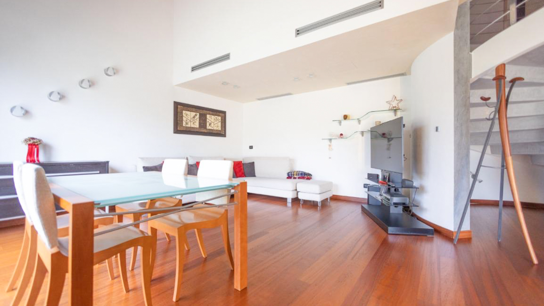 In the charming locale of Oriago, Venezia, a sophisticated retreat awaits. Bathed in natural light from expansive windows, this contemporary residence is a symphony of elegance and modernity. The distinctive spiral staircase and artistic decor create an inviting ambiance, while the gentle rustle of drapes brings a serene rhythm to this urban sanctuary. Spanning 271 square meters, this exquisite property features five spacious rooms and two luxurious bathrooms, perfectly blending style and functionality. The open-concept living area, with its rich wooden flooring and vibrant sectional sofa, seamlessly flows into a sleek, modern kitchen adorned with striking red cabinetry. Outside, a private garden offers a tranquil escape, ideal for relaxation and entertaining. Situated in the heart of the city, this home embodies a lifestyle of sophistication and convenience. Imagine savoring your morning coffee in the sun-drenched living room or hosting memorable gatherings in the lush garden. This is a place where every day feels like a serene getaway, surrounded by beauty and comfort. The vibrant energy of city life is at your doorstep, yet tranquility and privacy are always within reach. This residence is a testament to refined living, an exceptional find in the luxury real estate market. It promises an unparalleled lifestyle, where elegance meets contemporary charm in an enchanting setting.