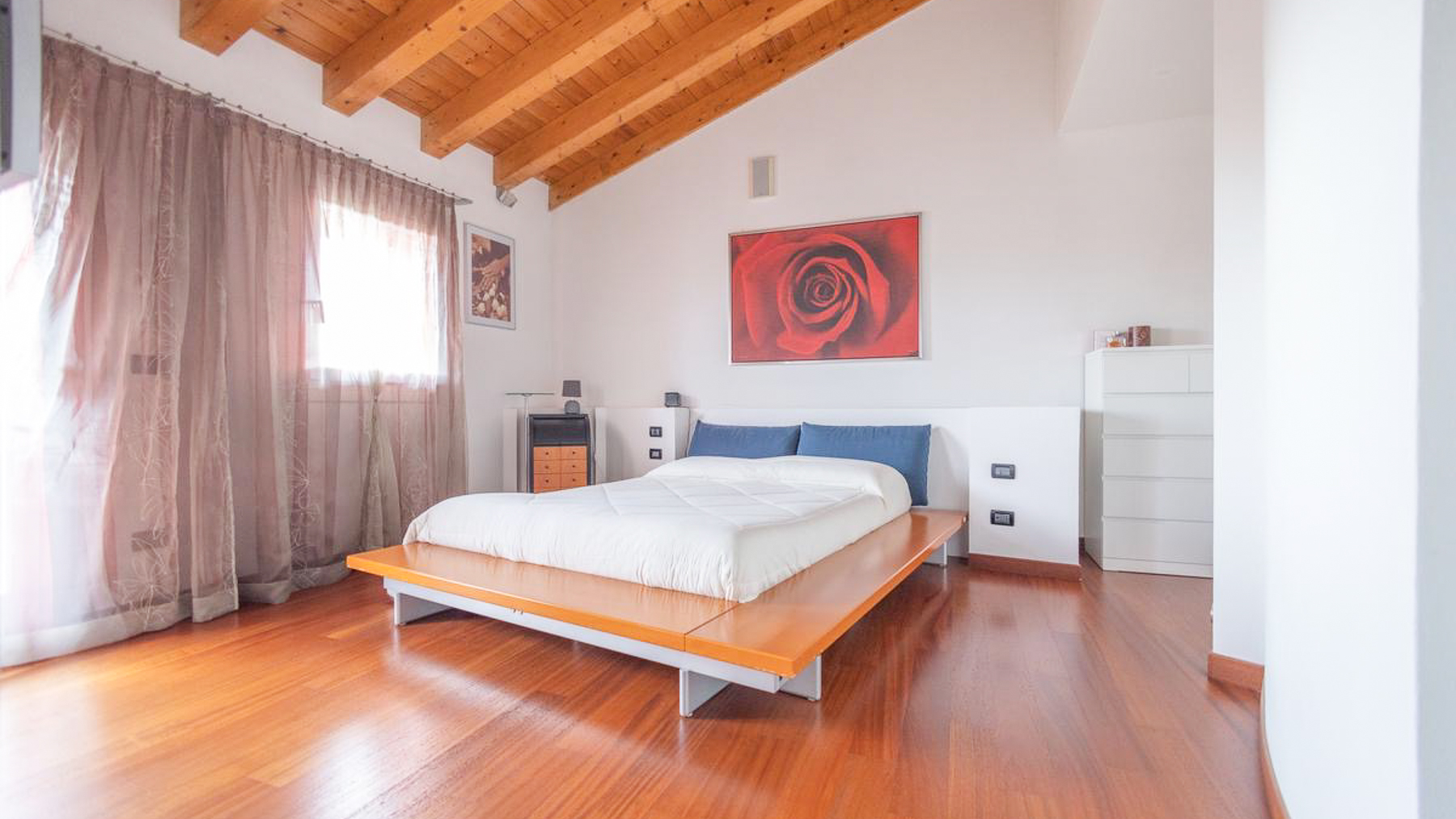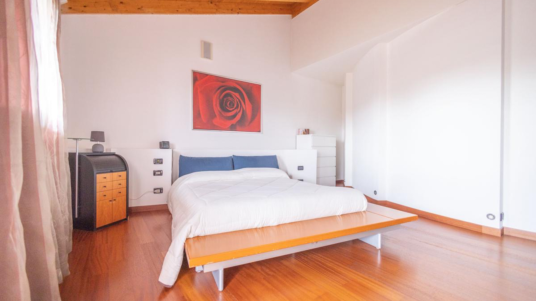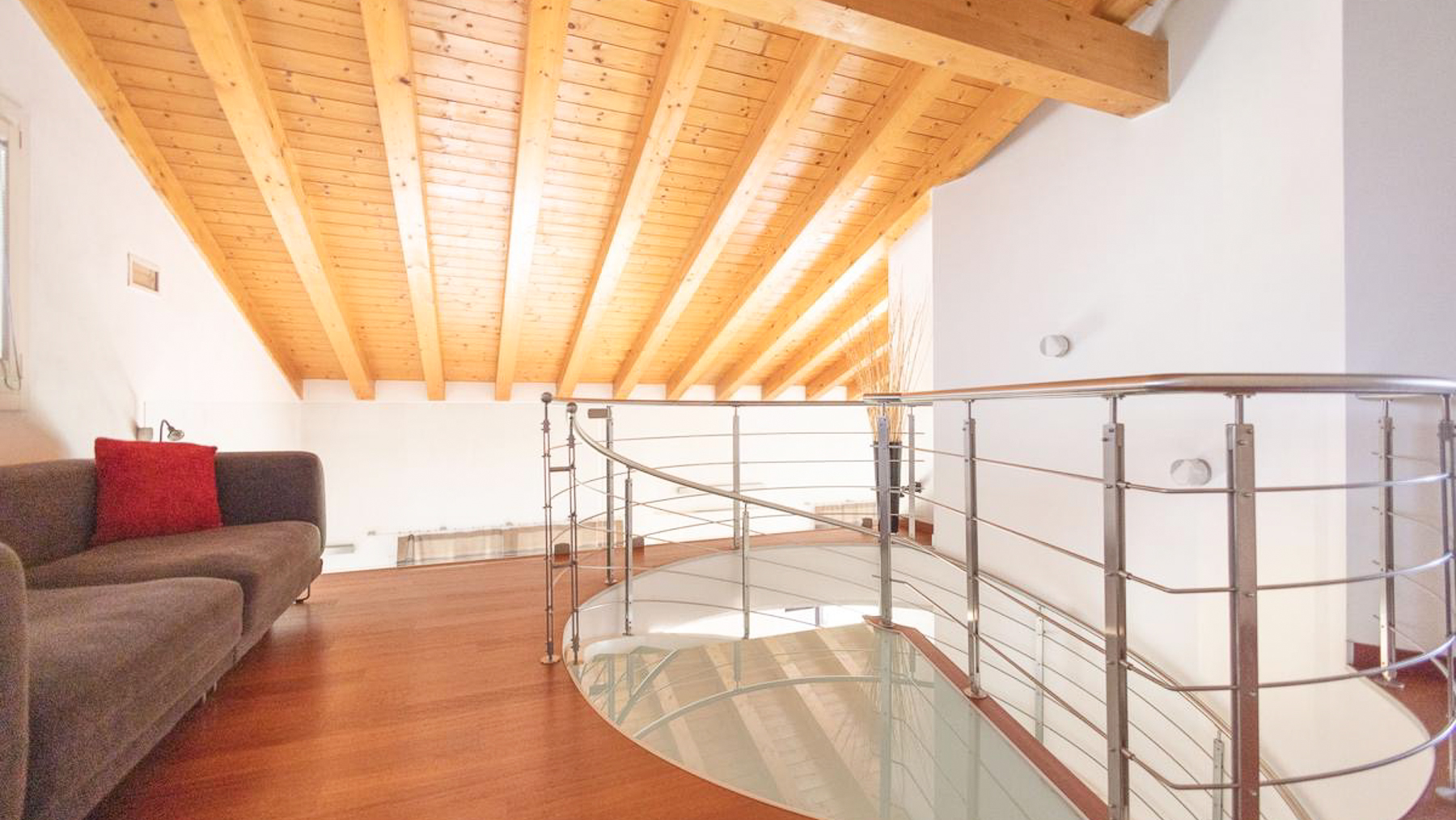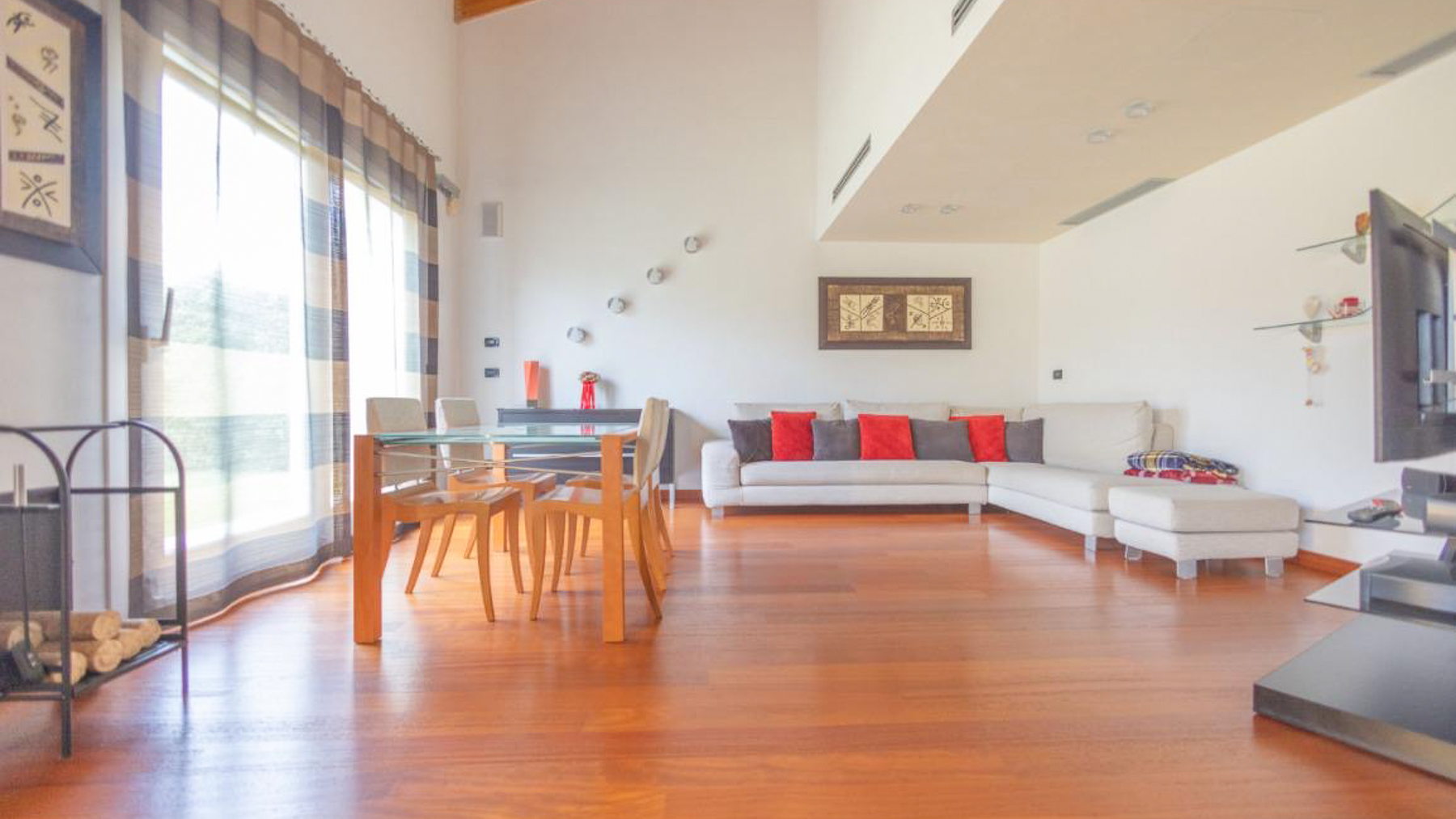 In the charming locale of Oriago, Venezia, a sophisticated retreat awaits. Bathed in natural light from expansive windows, this contemporary residence is a symphony of elegance and modernity. The distinctive spiral staircase and artistic decor create an inviting ambiance, while the gentle rustle of drapes brings a serene rhythm to this urban sanctuary. Spanning 271 square meters, this exquisite property features five spacious rooms and two luxurious bathrooms, perfectly blending style and functionality. The open-concept living area, with its rich wooden flooring and vibrant sectional sofa, seamlessly flows into a sleek, modern kitchen adorned with striking red cabinetry. Outside, a private garden offers a tranquil escape, ideal for relaxation and entertaining. Situated in the heart of the city, this home embodies a lifestyle of sophistication and convenience. Imagine savoring your morning coffee in the sun-drenched living room or hosting memorable gatherings in the lush garden. This is a place where every day feels like a serene getaway, surrounded by beauty and comfort. The vibrant energy of city life is at your doorstep, yet tranquility and privacy are always within reach. This residence is a testament to refined living, an exceptional find in the luxury real estate market. It promises an unparalleled lifestyle, where elegance meets contemporary charm in an enchanting setting.