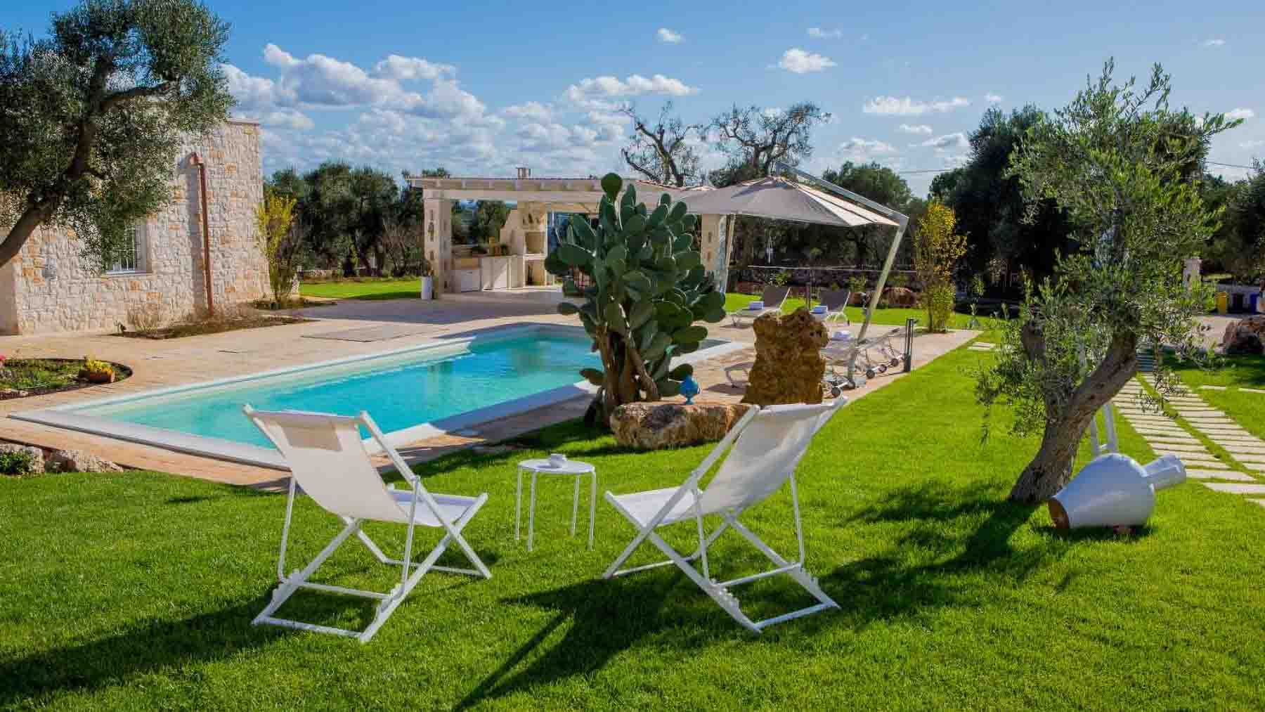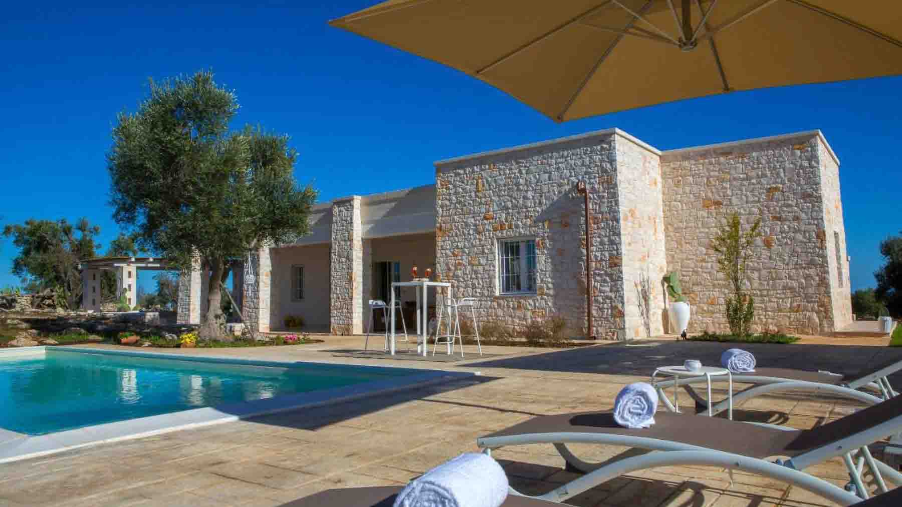 In the sun-drenched landscapes of Ostuni, Brindisi, lies a stunning modern stone villa that captures the essence of luxury and tranquility. This exquisite property invites you to experience the beauty of a serene outdoor environment, where the light-colored facade gleams under the clear blue sky, and the gentle sound of water from the pool sets a relaxing tone. Spanning 190 square meters, this villa offers a generous living space with seven beautifully appointed rooms and two elegant bathrooms. The property boasts distinctive features such as a private garden and a sparkling swimming pool, providing an idyllic setting for relaxation and entertainment. Set in the charming countryside, this villa is a true sanctuary of peace and elegance. Imagine waking up in this luxurious haven, where each day begins with a refreshing dip in your private pool, followed by a leisurely breakfast on the paved terrace surrounded by lush greenery and the fragrance of Mediterranean plants. Evenings are spent dining alfresco, with the warm breeze and the twinkle of stars above enhancing the magical atmosphere. This villa is a masterpiece of architectural elegance and modern comfort, offering a unique opportunity to own a piece of paradise in the heart of Italy's captivating countryside—a jewel in the world of luxury real estate.