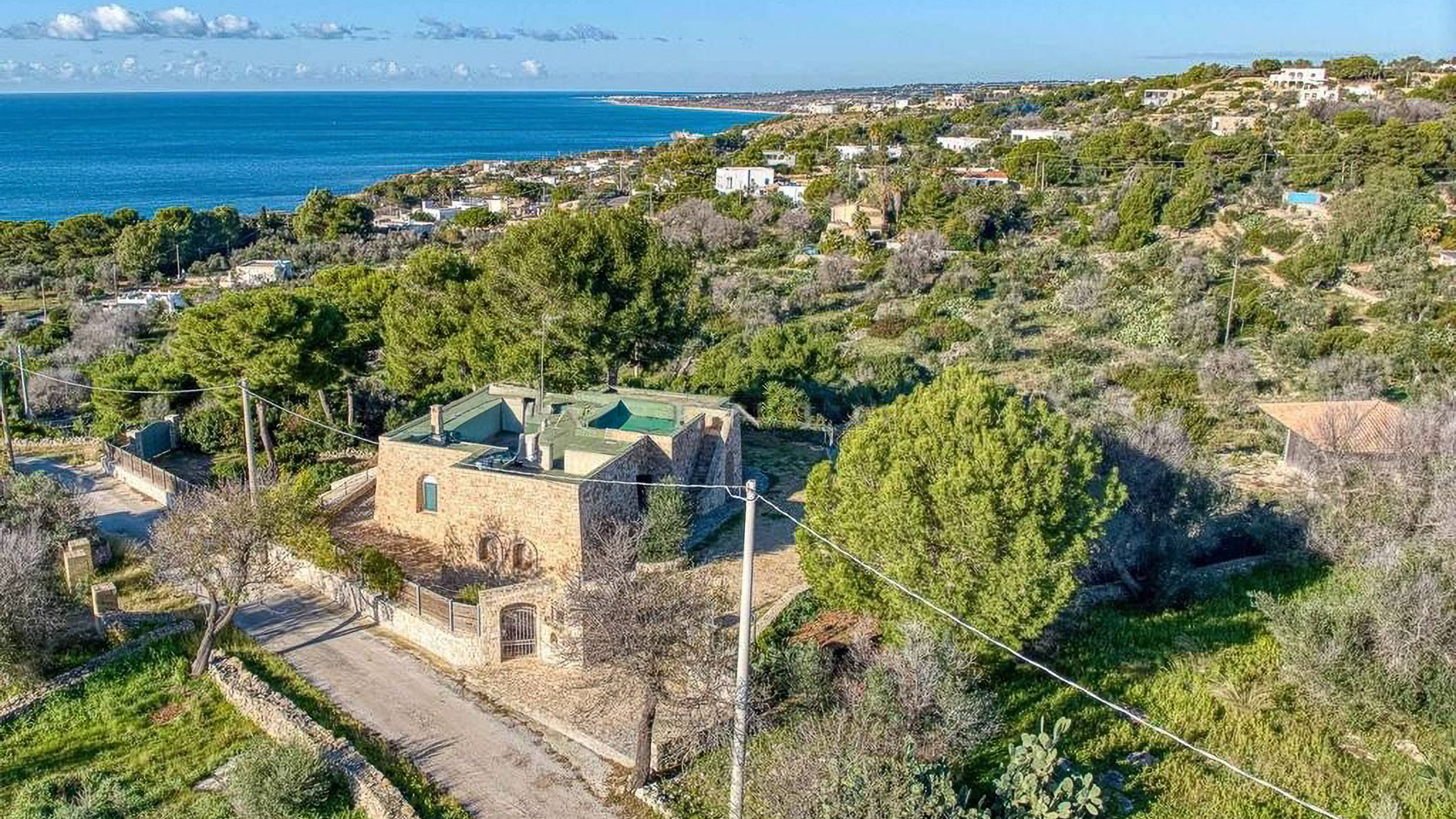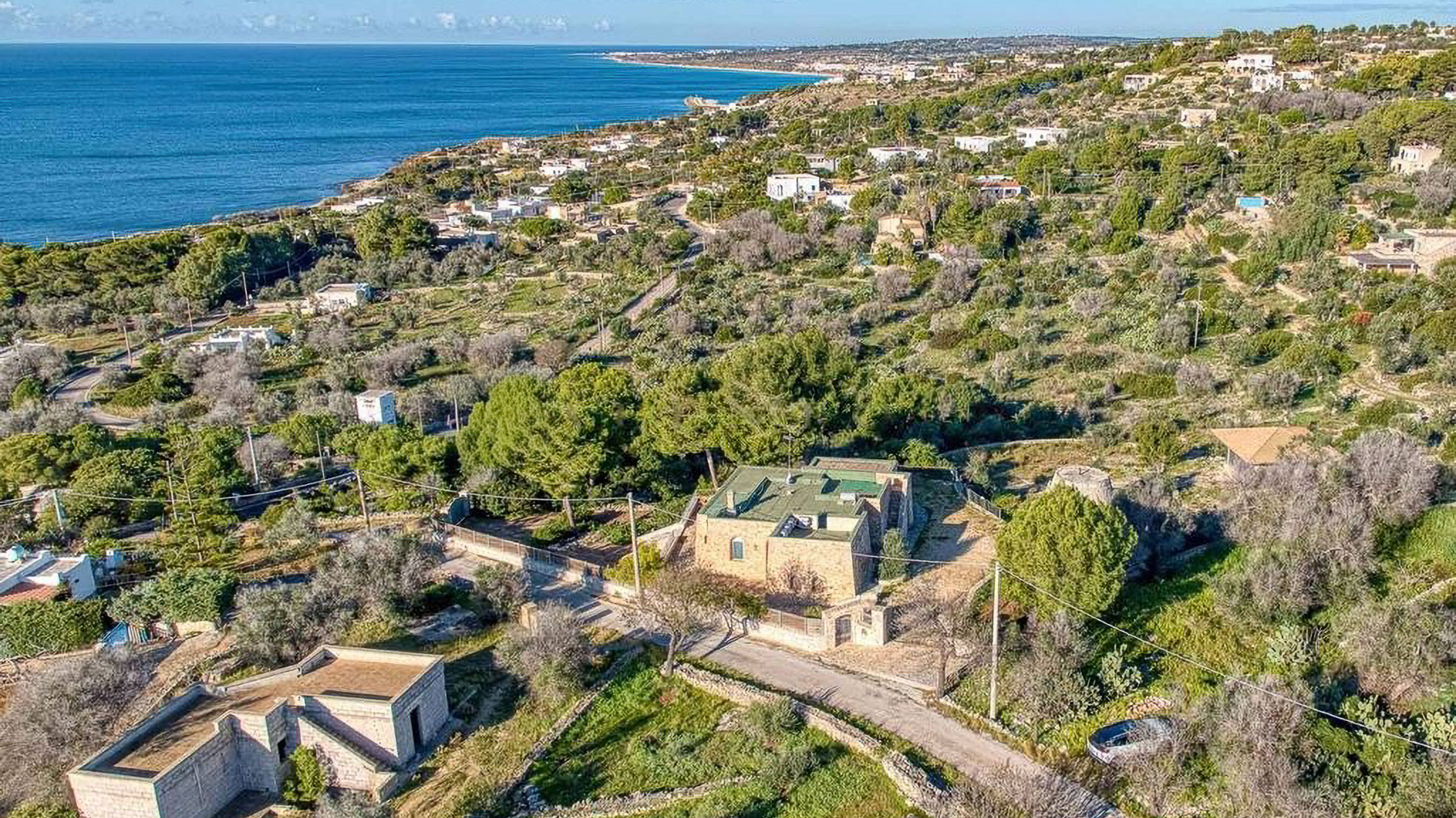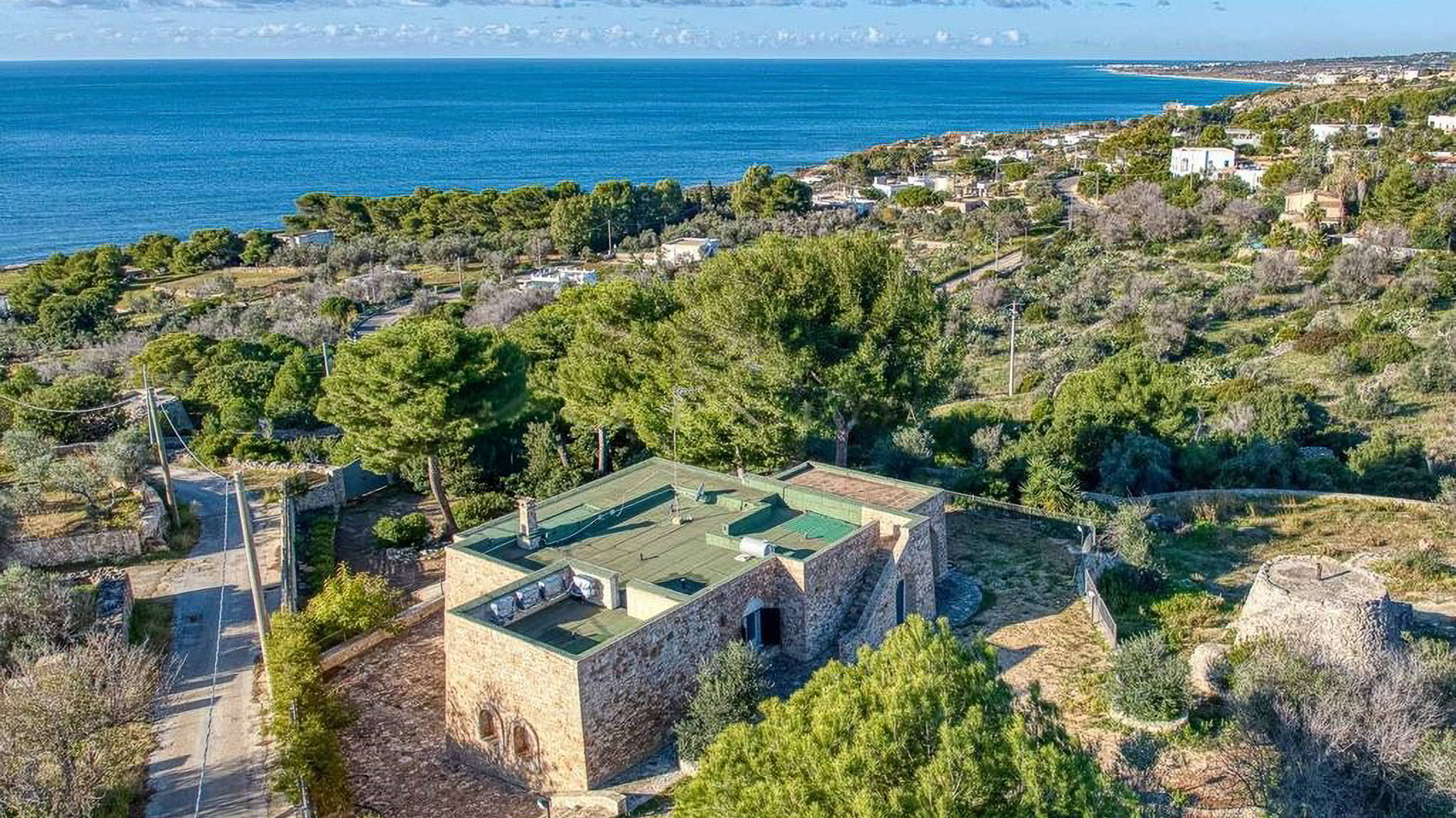 Perched within a serene coastal landscape, this exquisite property is enveloped by nature's embrace, offering a panoramic vista of the sea that captures the essence of tranquility and elegance. Imagine the gentle rustle of leaves and the distant lull of ocean waves as you step into this haven of luxury. Spanning a generous 182 square meters, this stone-built residence boasts five spacious rooms and two elegantly appointed bathrooms. The property features a private garden and a delightful terrace, perfect for enjoying the lush surroundings. Located in Patù, Lecce, this home offers a unique blend of rural charm and coastal allure. The landscape is dotted with trees and rocky terrain, creating an idyllic retreat for those seeking a peaceful lifestyle by the sea. Experience the magic of living here with leisurely mornings in your private garden, where the scent of fresh greenery mingles with the salty sea air. The terrace becomes your personal sanctuary, where you can unwind with a glass of wine as the sun sets over the ocean, painting the sky in hues of orange and pink. This property is a rare find, offering an exclusive opportunity to own a piece of paradise in the luxury real estate market. Embrace the unparalleled beauty and serenity this home provides, and let it become your ultimate coastal sanctuary.