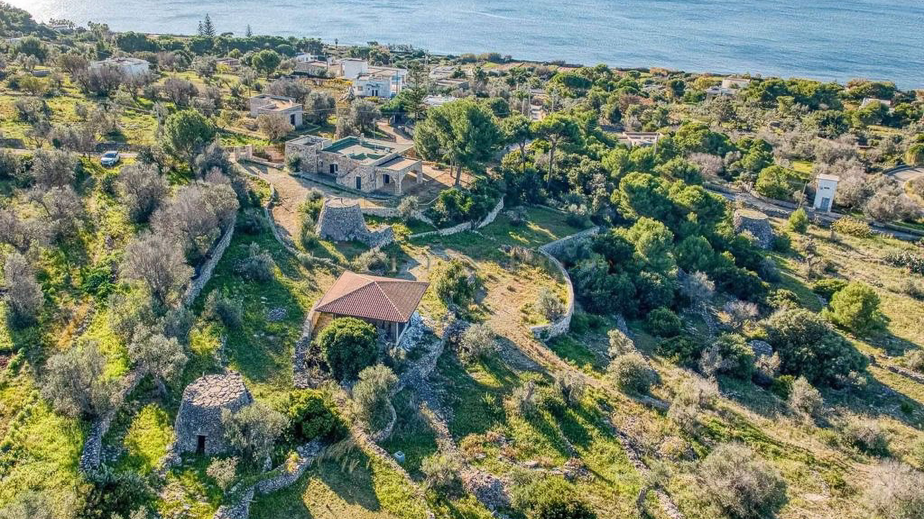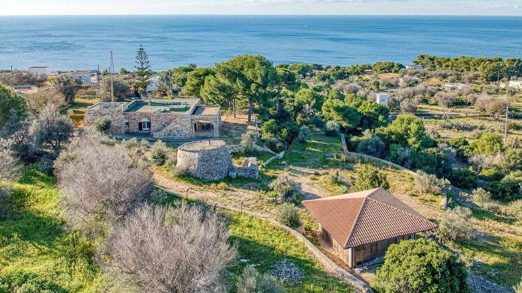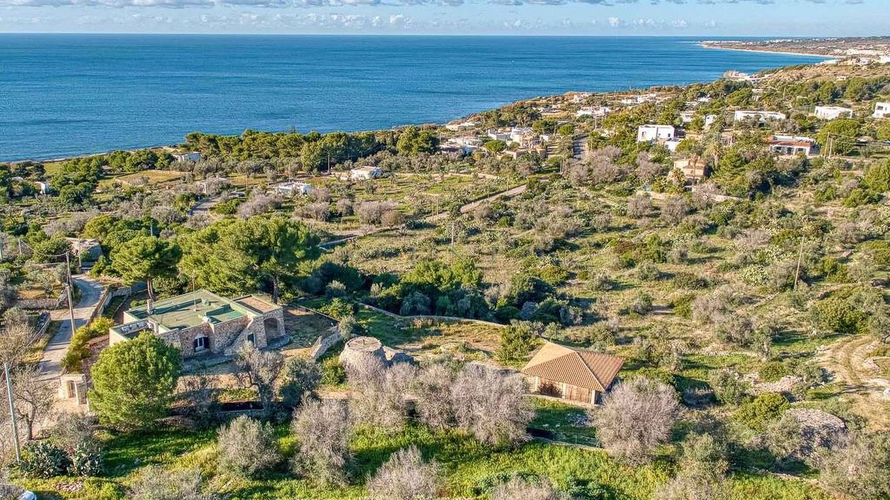 Perched within a serene coastal landscape, this exquisite property is enveloped by nature's embrace, offering a panoramic vista of the sea that captures the essence of tranquility and elegance. Imagine the gentle rustle of leaves and the distant lull of ocean waves as you step into this haven of luxury. Spanning a generous 182 square meters, this stone-built residence boasts five spacious rooms and two elegantly appointed bathrooms. The property features a private garden and a delightful terrace, perfect for enjoying the lush surroundings. Located in Patù, Lecce, this home offers a unique blend of rural charm and coastal allure. The landscape is dotted with trees and rocky terrain, creating an idyllic retreat for those seeking a peaceful lifestyle by the sea. Experience the magic of living here with leisurely mornings in your private garden, where the scent of fresh greenery mingles with the salty sea air. The terrace becomes your personal sanctuary, where you can unwind with a glass of wine as the sun sets over the ocean, painting the sky in hues of orange and pink. This property is a rare find, offering an exclusive opportunity to own a piece of paradise in the luxury real estate market. Embrace the unparalleled beauty and serenity this home provides, and let it become your ultimate coastal sanctuary.