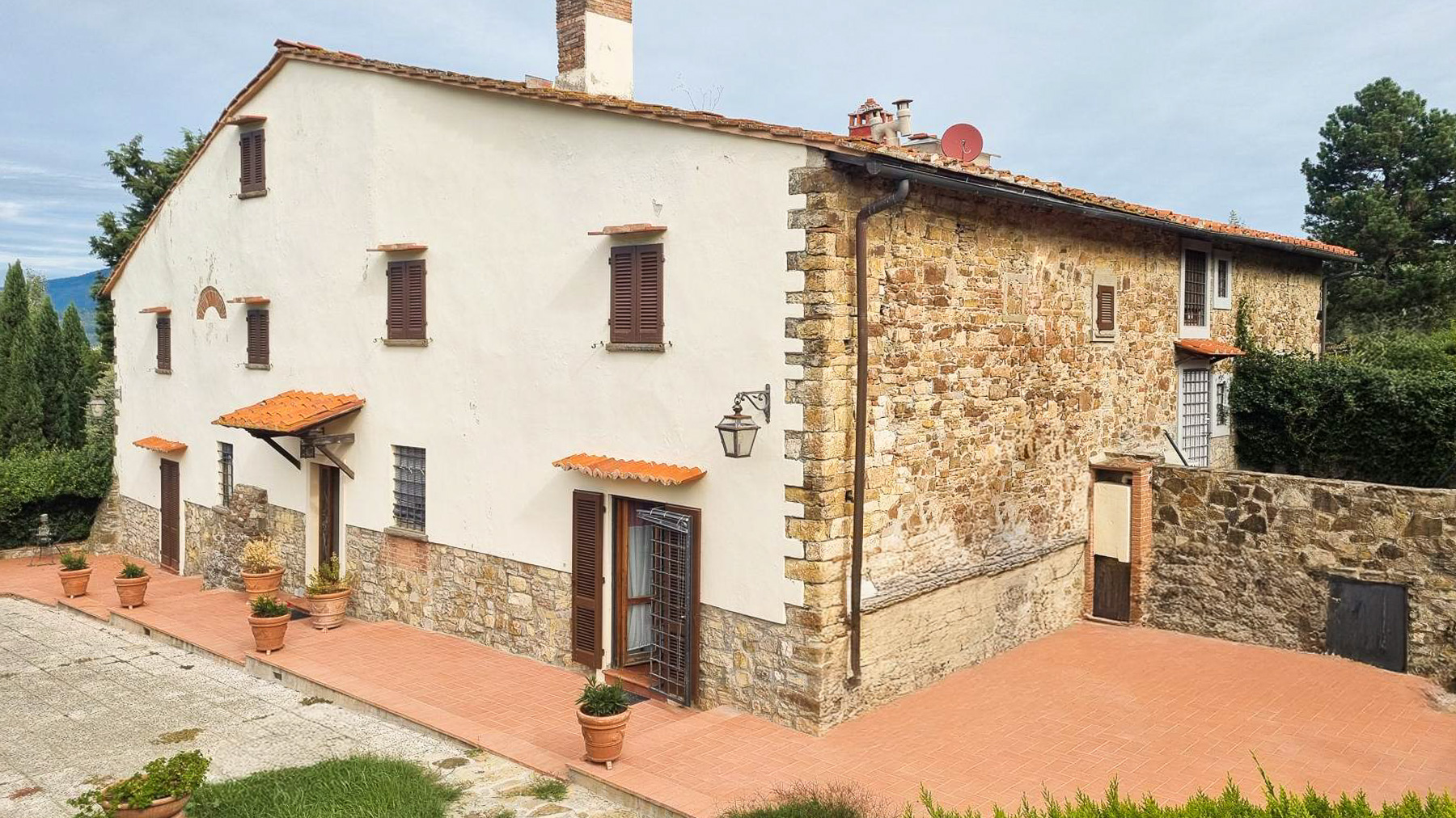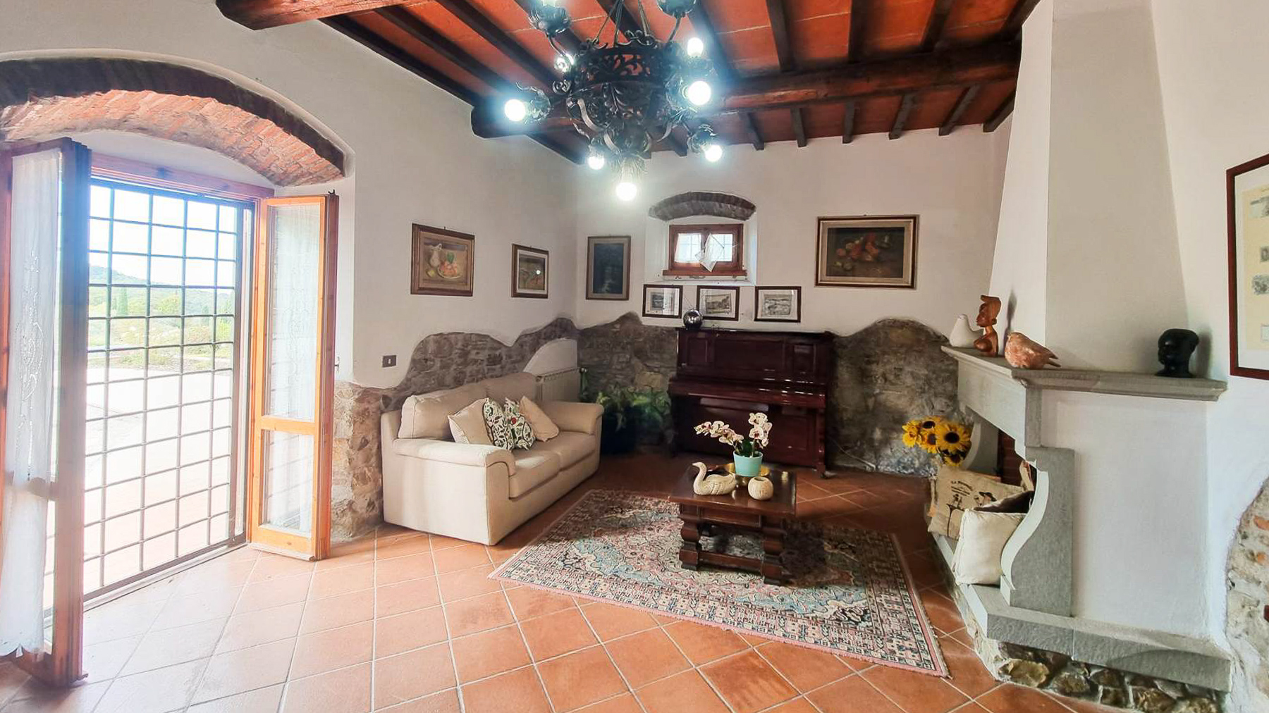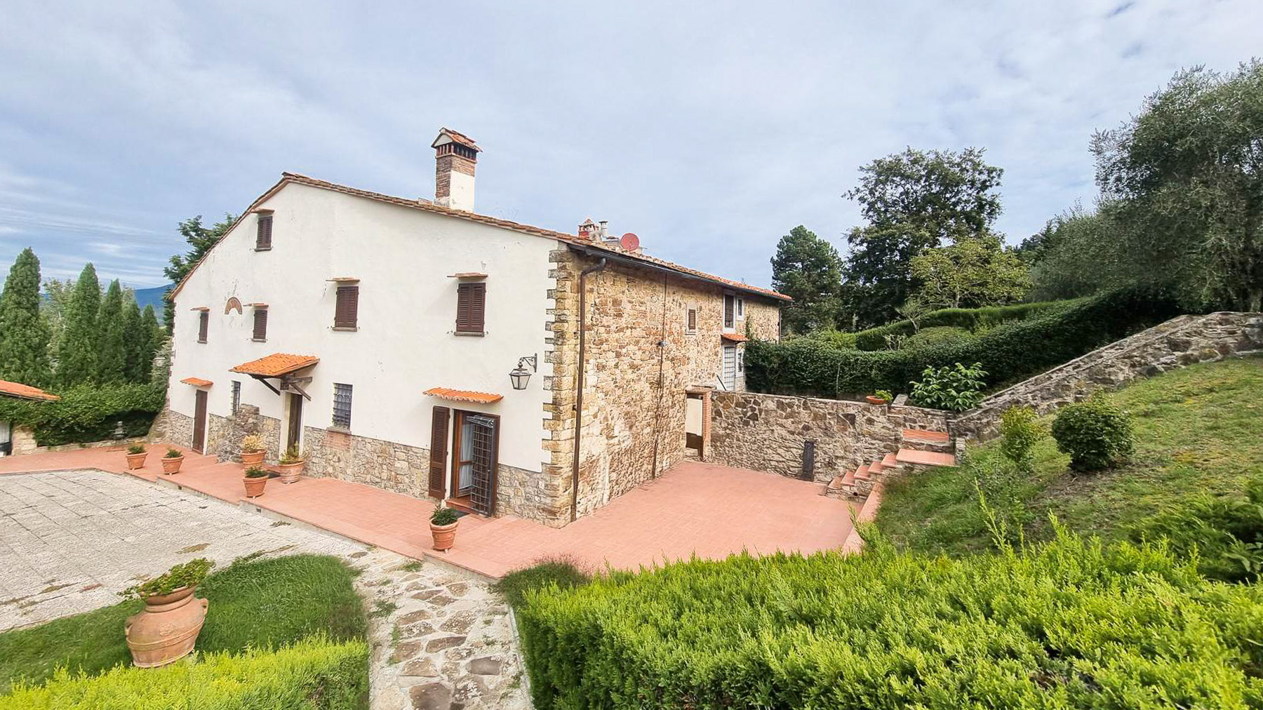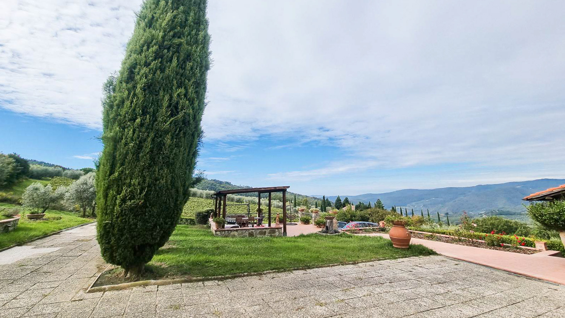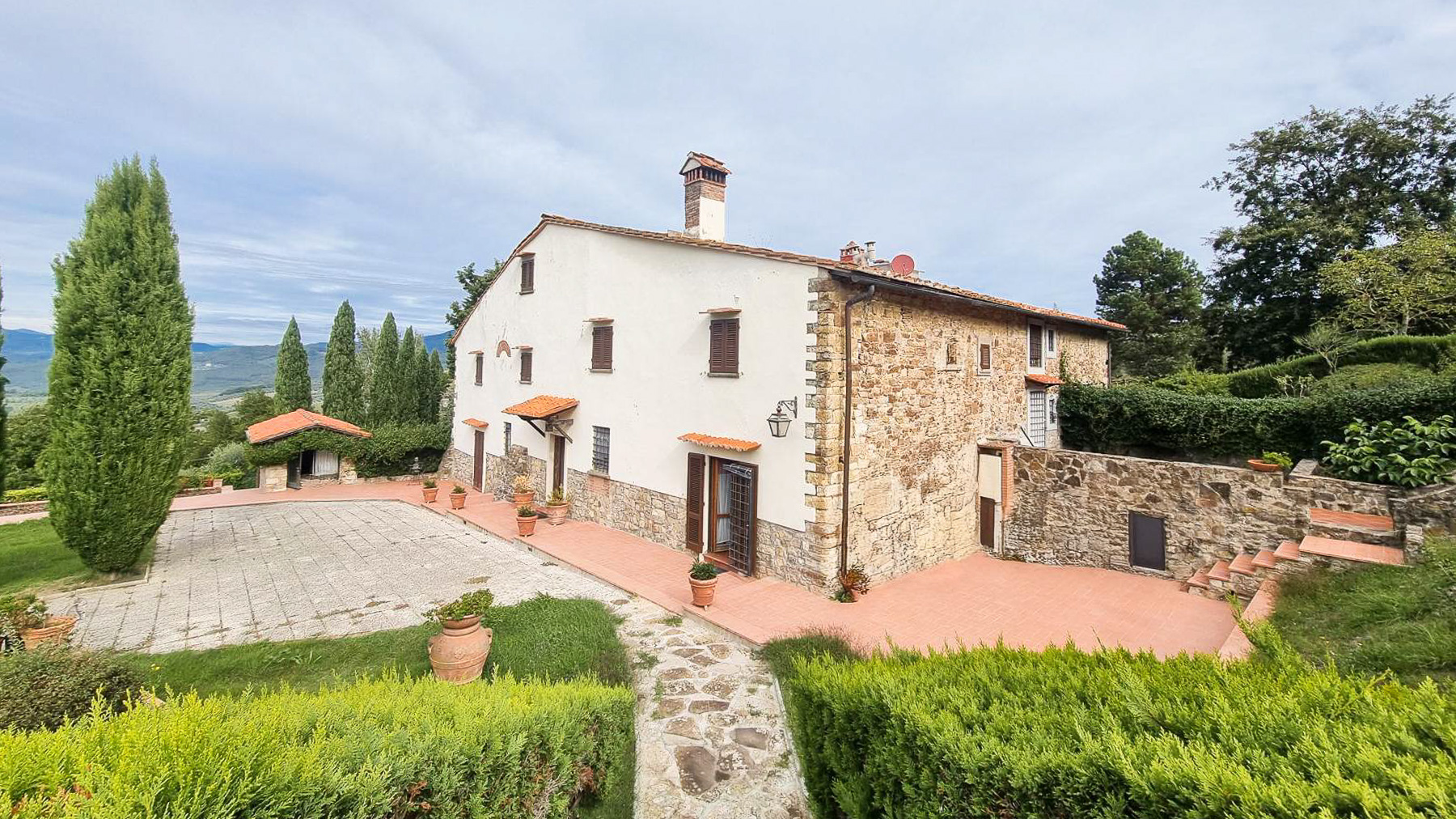 Tucked away in a breathtaking landscape, this enchanting villa offers a sanctuary of peace and elegance. Surrounded by towering cypress trees and meticulously curated gardens, the property exudes a timeless charm. As sunlight dances across the stone and white plaster façade, the gentle rustle of the leaves and the scent of fresh blooms create an ambiance that is both serene and invigorating. Spanning 509 square meters, this exquisite residence in Pontassieve, Firenze, boasts 14 spacious rooms and 6 luxurious bathrooms. The villa seamlessly combines rustic charm with modern sophistication, featuring a private garden that serves as an idyllic retreat. Inside, the inviting living room welcomes you with its red floral sofa set and warm wooden accents, while an elegant staircase beckons you to explore further. This countryside haven is the epitome of refined living, offering both privacy and proximity to the vibrant cultural heart of Florence. Imagine savoring your mornings with a cup of espresso on the sunlit patio, enveloped by the sweet scent of Italian herbs. Afternoons can be spent exploring rolling hills, while evenings are perfect for intimate gatherings around the wooden coffee table, sharing stories and laughter. This remarkable property is a testament to luxury and exclusivity. It is not just a home, but a rare treasure in the world of real estate, where every corner promises a new experience and every moment is steeped in elegance.