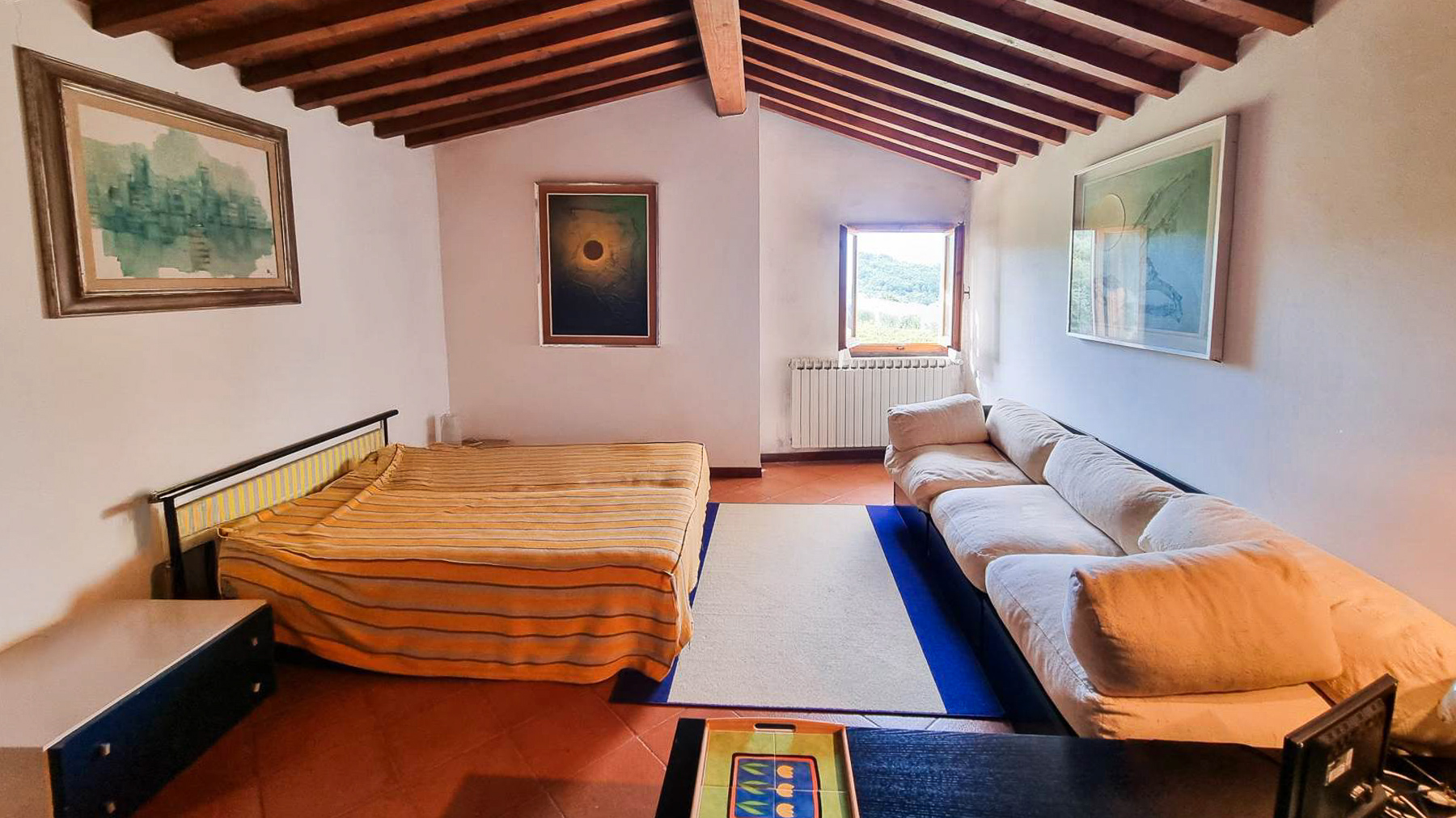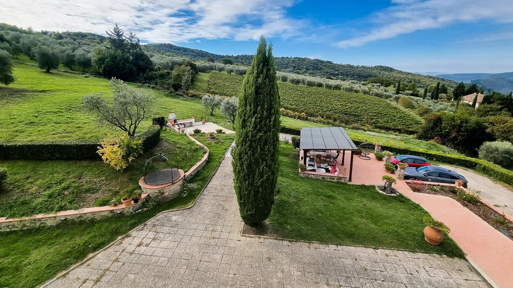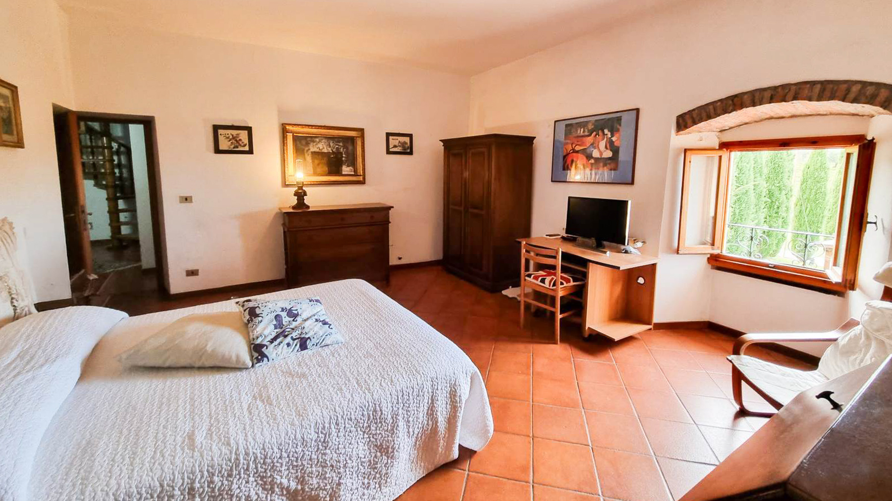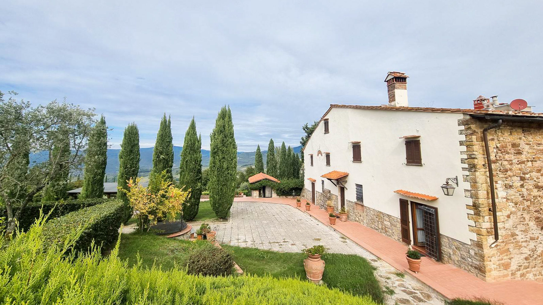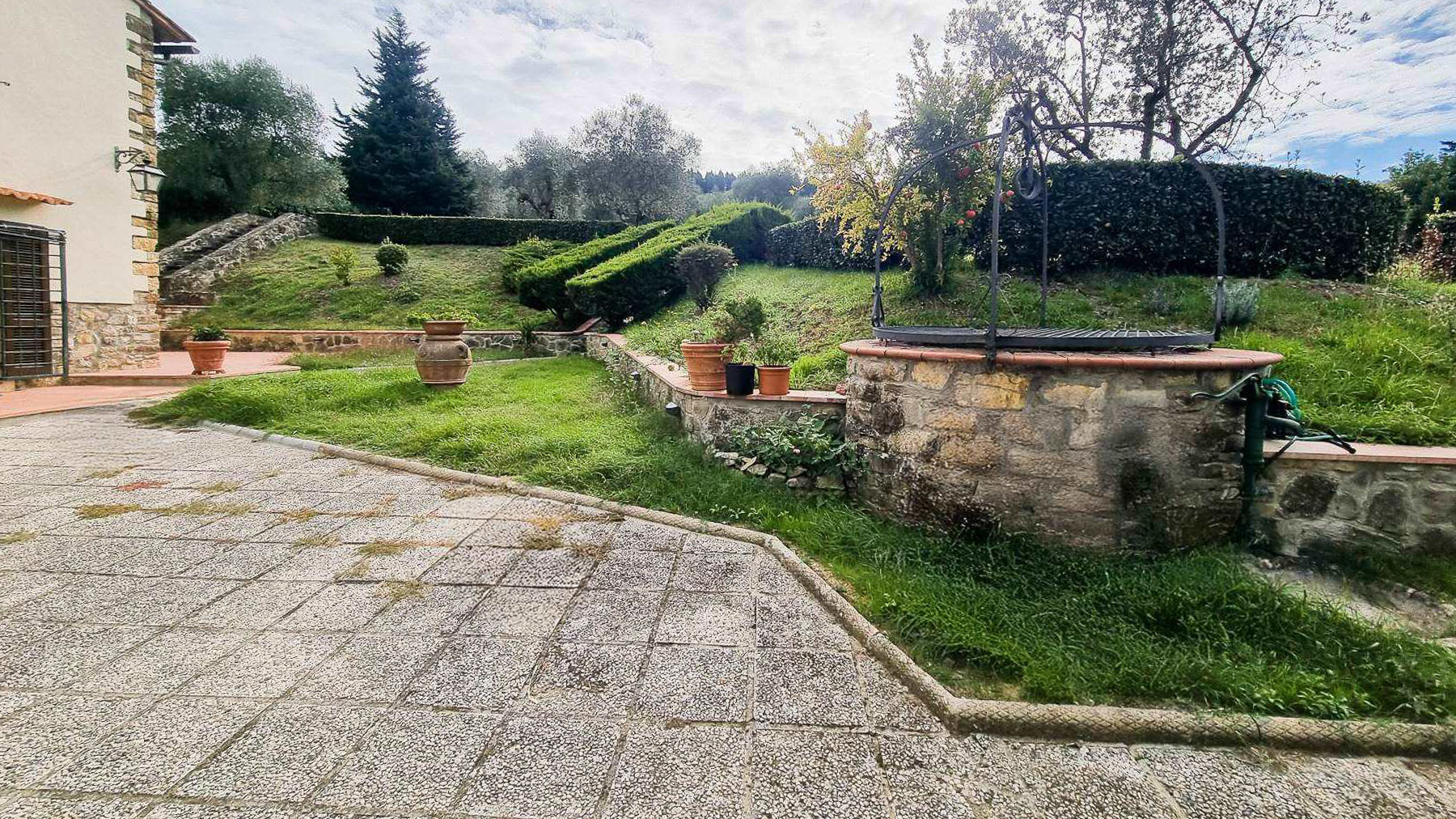Tucked away in a breathtaking landscape, this enchanting villa offers a sanctuary of peace and elegance. Surrounded by towering cypress trees and meticulously curated gardens, the property exudes a timeless charm. As sunlight dances across the stone and white plaster façade, the gentle rustle of the leaves and the scent of fresh blooms create an ambiance that is both serene and invigorating. Spanning 509 square meters, this exquisite residence in Pontassieve, Firenze, boasts 14 spacious rooms and 6 luxurious bathrooms. The villa seamlessly combines rustic charm with modern sophistication, featuring a private garden that serves as an idyllic retreat. Inside, the inviting living room welcomes you with its red floral sofa set and warm wooden accents, while an elegant staircase beckons you to explore further. This countryside haven is the epitome of refined living, offering both privacy and proximity to the vibrant cultural heart of Florence. Imagine savoring your mornings with a cup of espresso on the sunlit patio, enveloped by the sweet scent of Italian herbs. Afternoons can be spent exploring rolling hills, while evenings are perfect for intimate gatherings around the wooden coffee table, sharing stories and laughter. This remarkable property is a testament to luxury and exclusivity. It is not just a home, but a rare treasure in the world of real estate, where every corner promises a new experience and every moment is steeped in elegance.