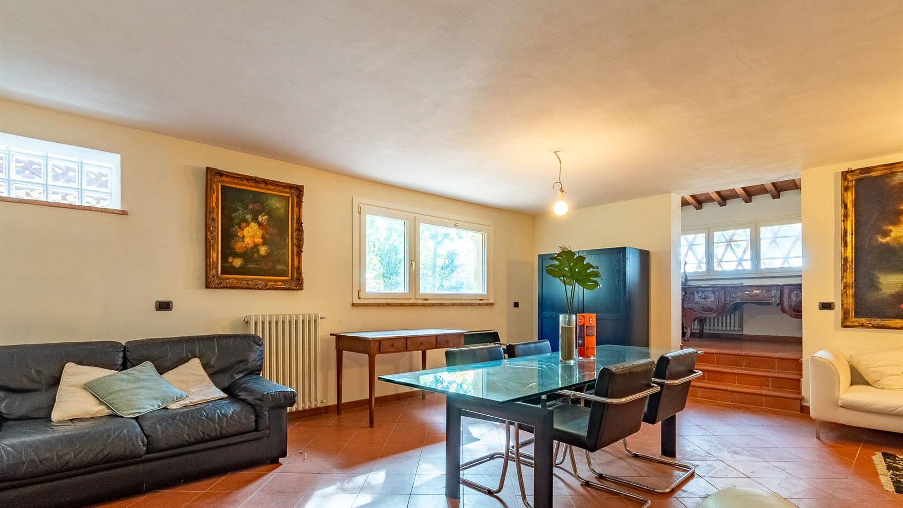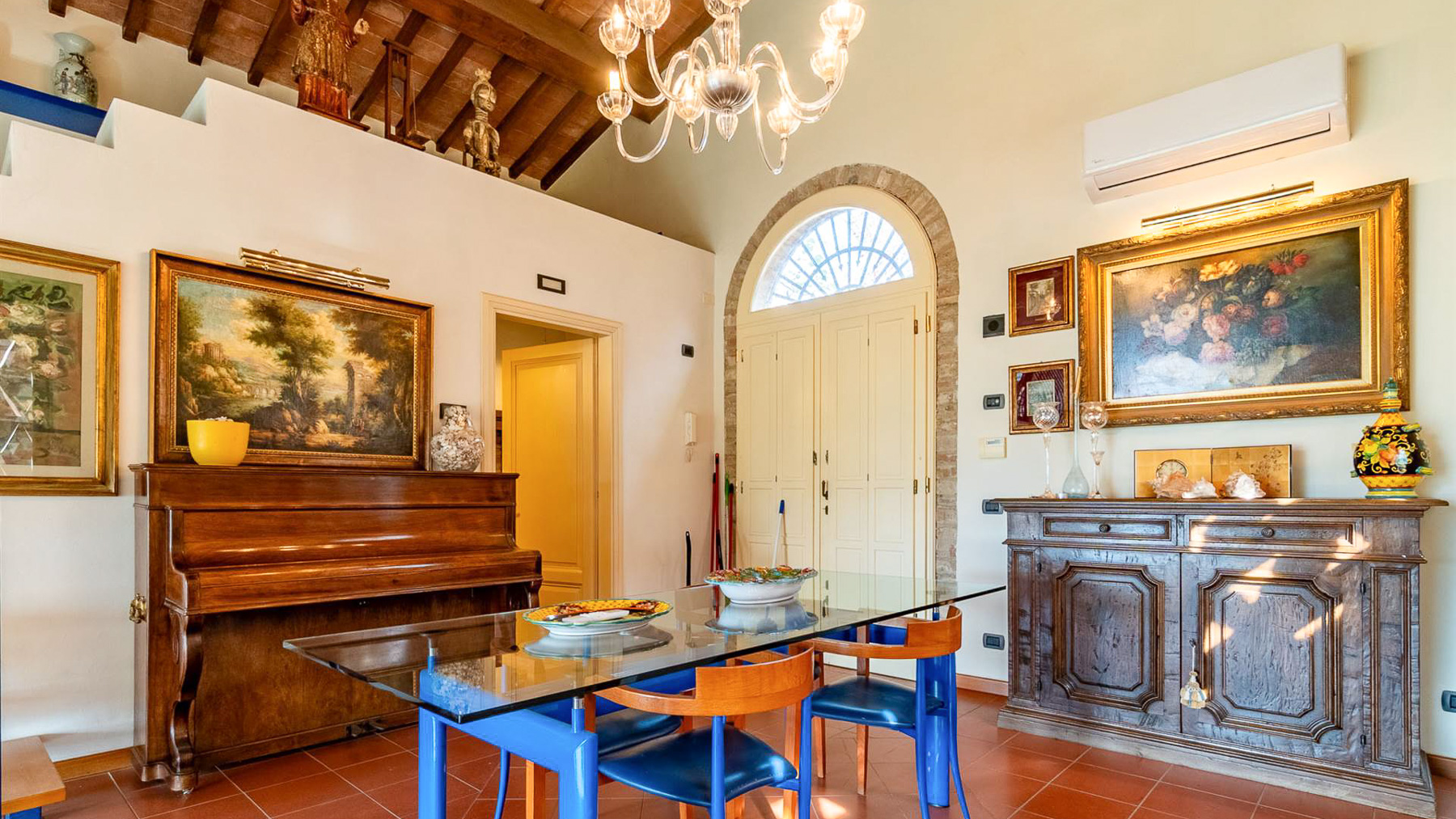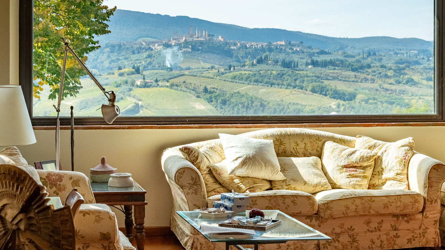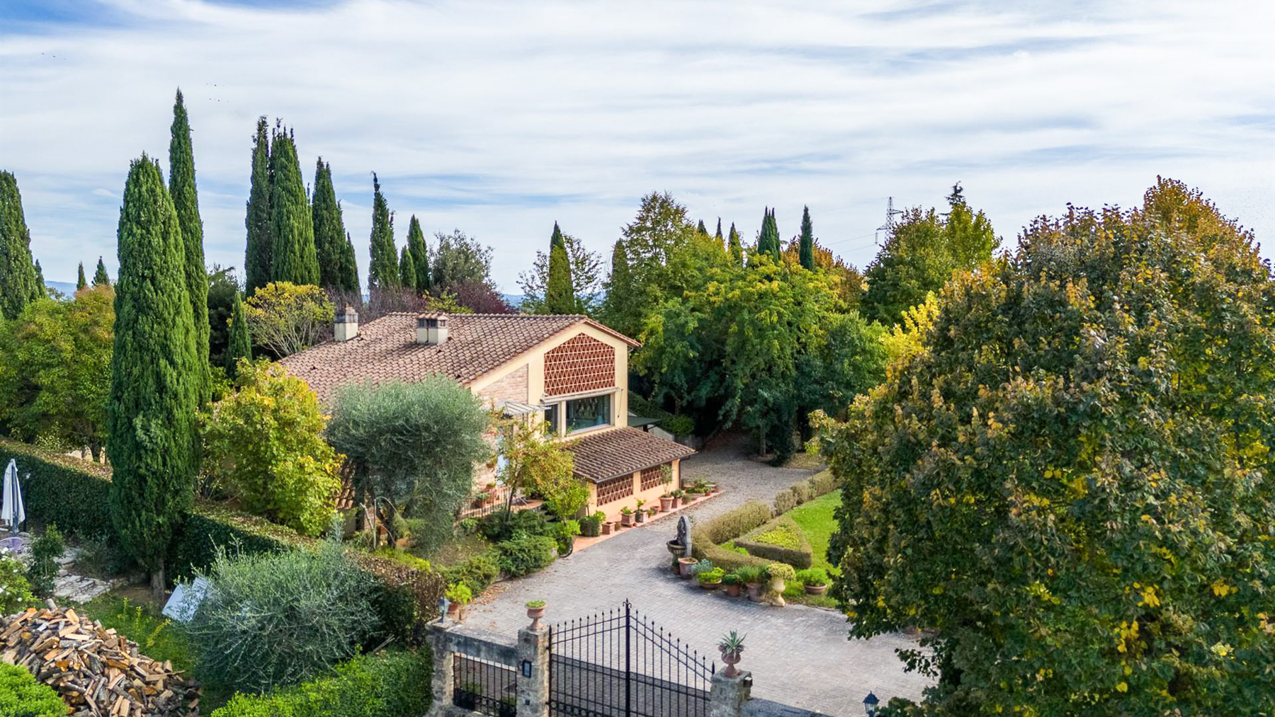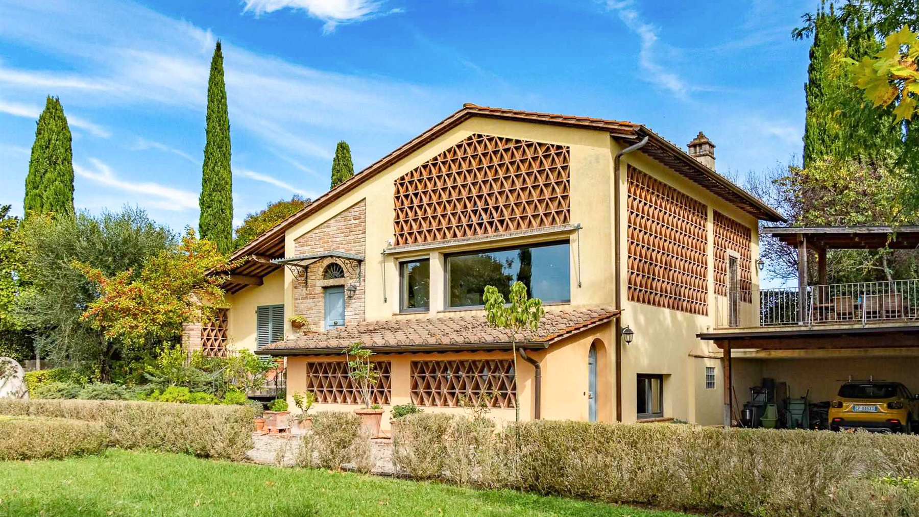 Tucked away amidst the enchanting landscapes of San Gimignano, Siena, this exquisite property offers a serene retreat that captivates the senses. Imagine waking up to the gentle rustling of leaves and the sight of golden autumn hues against a backdrop of lush greenery. The partly cloudy sky adds a touch of drama to this picturesque setting, where tranquility and elegance blend seamlessly. Spanning 413 square meters, this distinguished residence features five spacious rooms and three luxurious bathrooms, offering ample space for relaxation and entertainment. The stylish architecture combines brick and stone, complemented by tall cypress trees and a private garden that promises peace and privacy. The cozy interiors are adorned with a wooden sideboard and a striking painting of flowers, all bathed in natural light, creating a warm and inviting atmosphere perfect for family gatherings or quiet reflection. Living here means embracing a lifestyle of rural sophistication, where each day brings new opportunities for joy and relaxation. Picture leisurely afternoons spent in the garden, the air filled with the scent of blooming flowers and the sound of birds chirping. The home's design encourages a harmonious connection with nature, offering a sanctuary to escape the hustle and bustle of everyday life. This property embodies a rare blend of charm and modern luxury, offering a unique opportunity to own a piece of paradise in the heart of Tuscany's rolling hills. It is truly a jewel in the luxury real estate market, promising an unparalleled living experience.