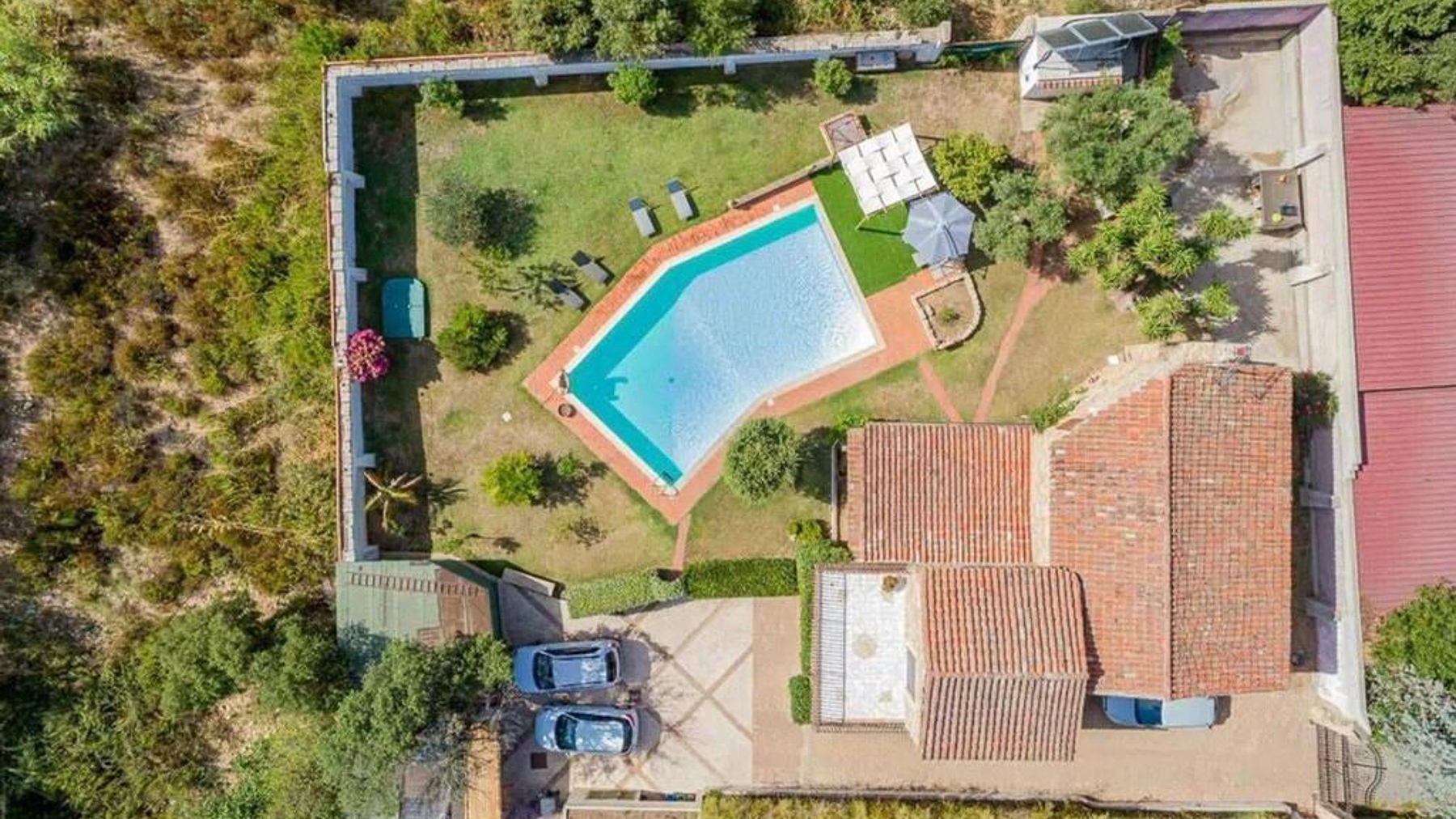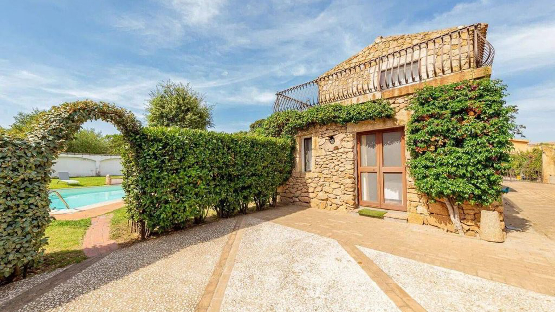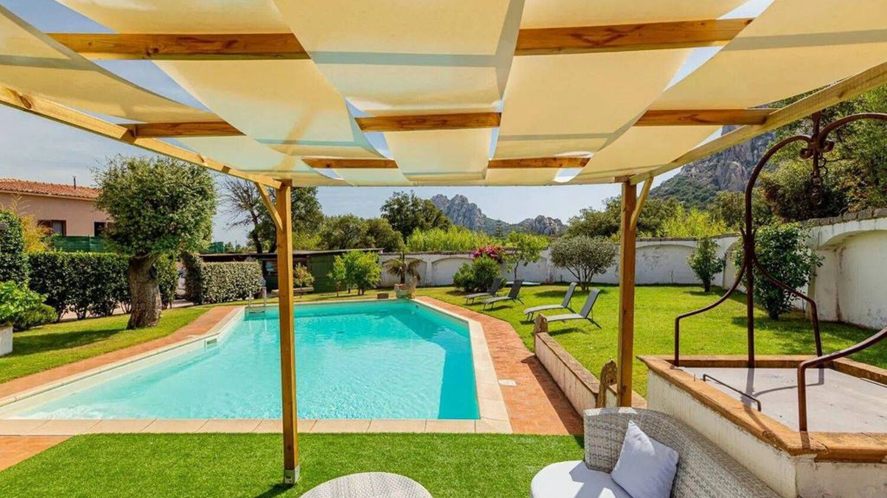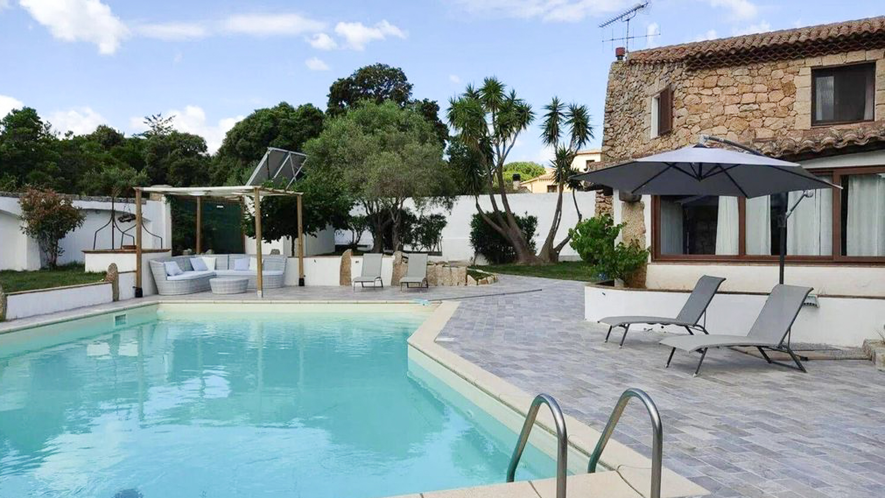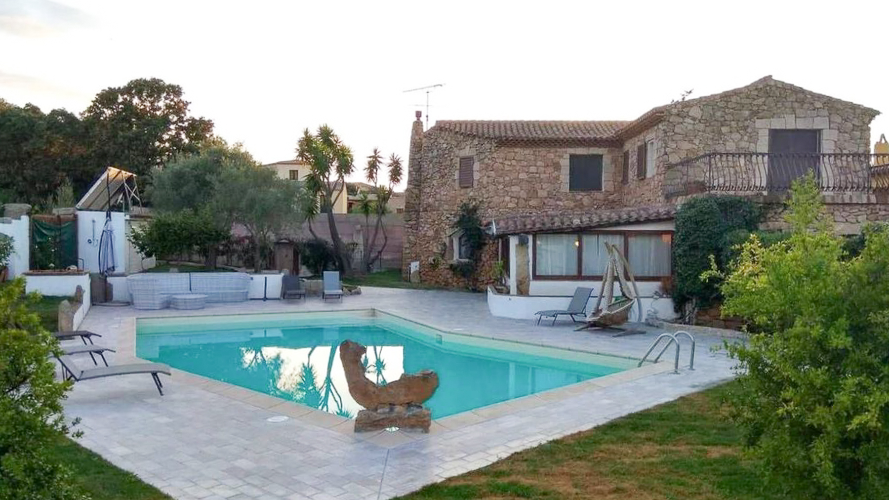 Imagine a retreat where the gentle rustle of leaves and the soft glow of sunlight dancing on water create an idyllic symphony. This exquisite stone villa, set amidst lush greenery, invites you to experience the ultimate sanctuary. Picture yourself in a serene paradise where the air is filled with the scent of blooming flowers and the warmth of the sun. This stunning residence spans 273 square meters, offering five spacious rooms and three elegant bathrooms, designed to cater to your every need. Located in the charming San Pantaleo, Olbia - Tempio, this home embodies the essence of countryside living. Its distinctive features, including a private swimming pool and a picturesque terrace, enhance its allure. The rustic charm of the stone house, complemented by a terracotta roof and surrounded by verdant landscapes, creates a perfect harmony between nature and luxury. Experience a lifestyle defined by tranquil mornings by the pool, with the turquoise waters reflecting the clear blue sky. Envision afternoons spent lounging under the canopy, where time slows down and relaxation becomes an art. As the day draws to a close, gather with loved ones on the terrace to savor the breathtaking views and the gentle caress of the evening breeze. This property is a masterpiece of refined elegance and comfort, offering a rare opportunity in the luxury real estate market. It is a sanctuary where timeless beauty meets modern indulgence, promising an unparalleled living experience.
