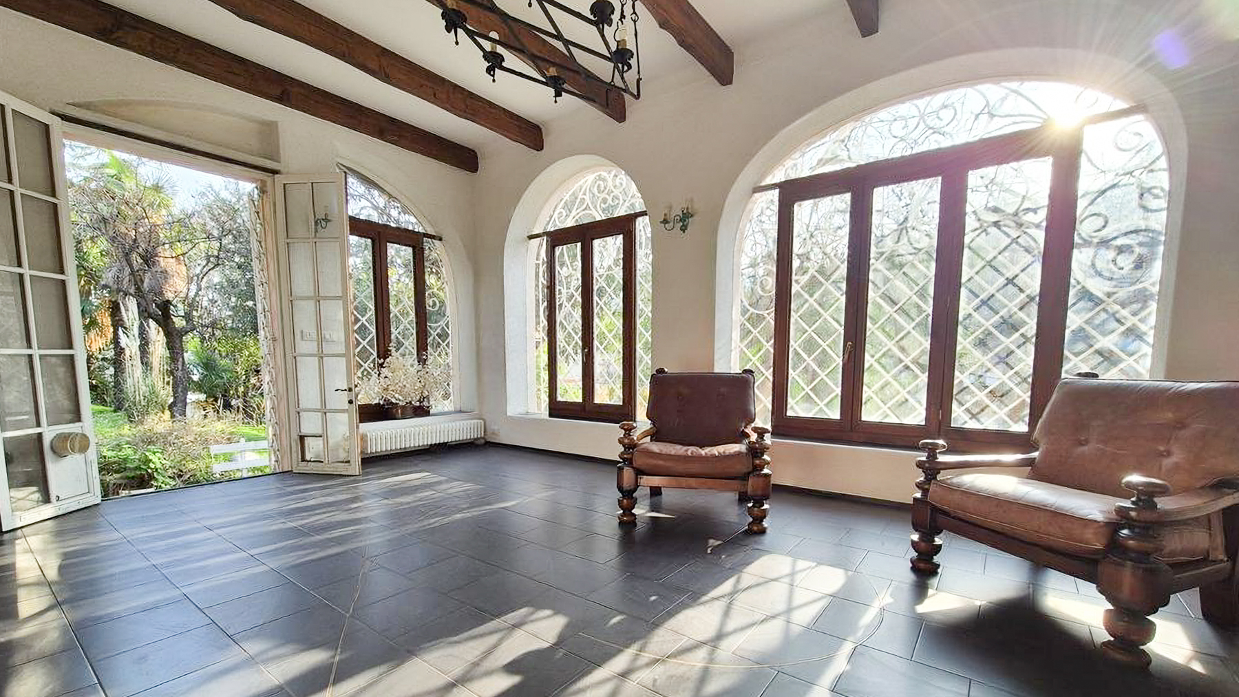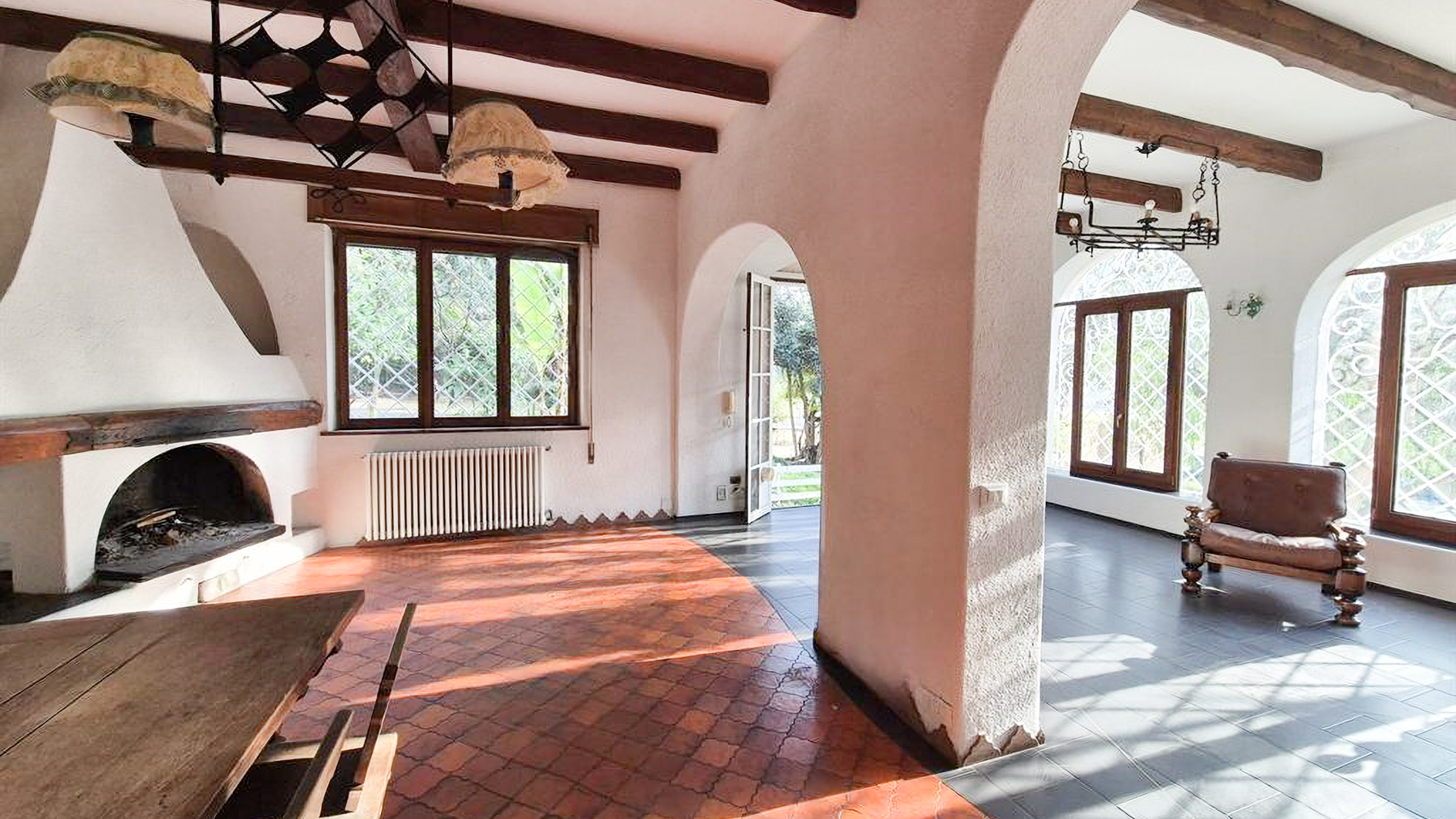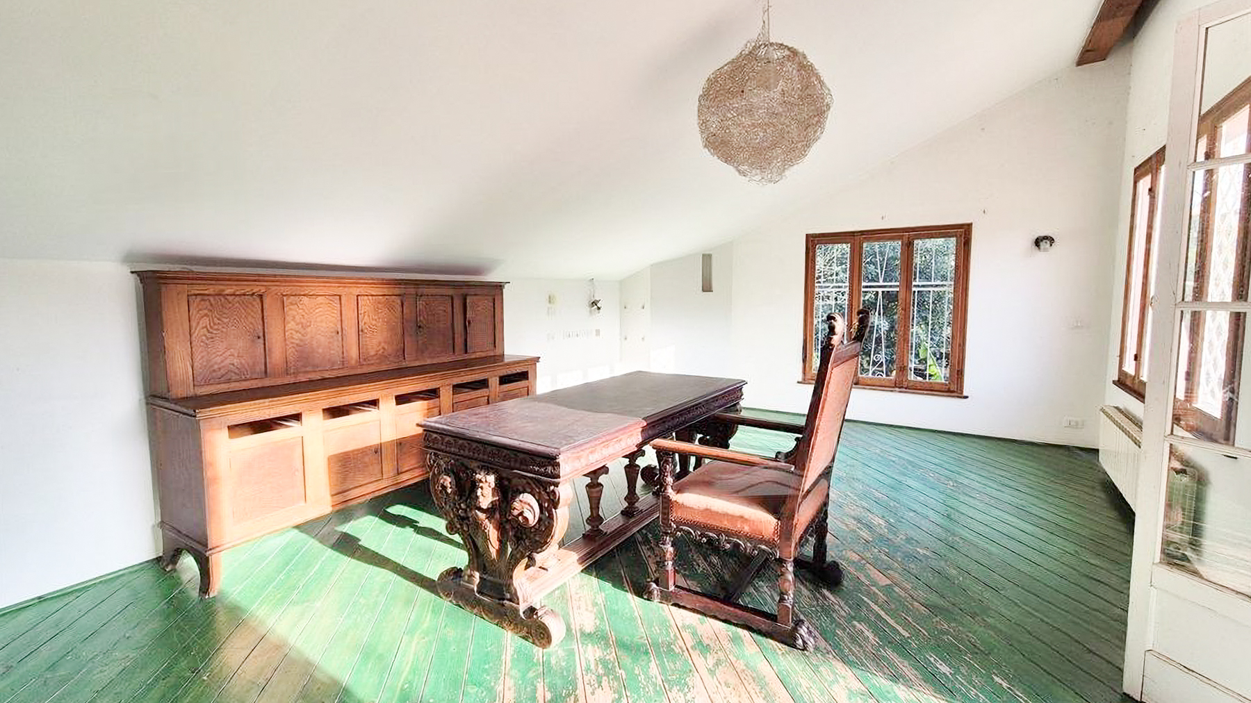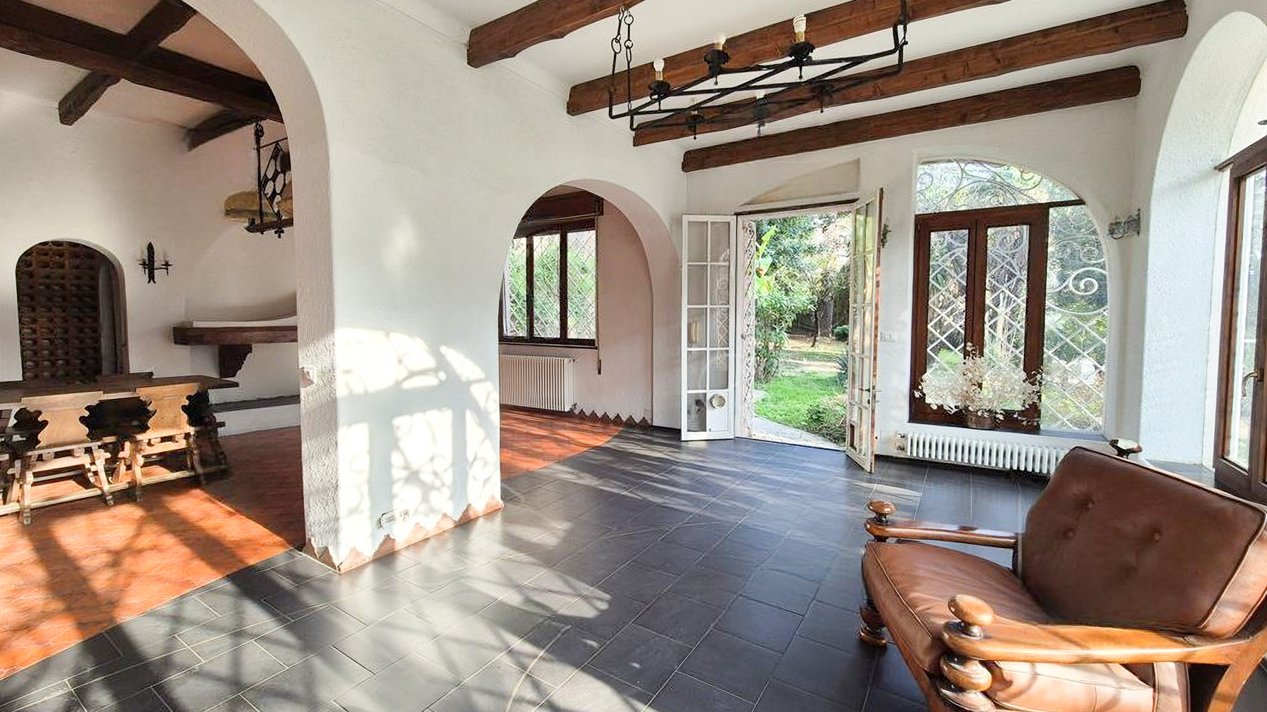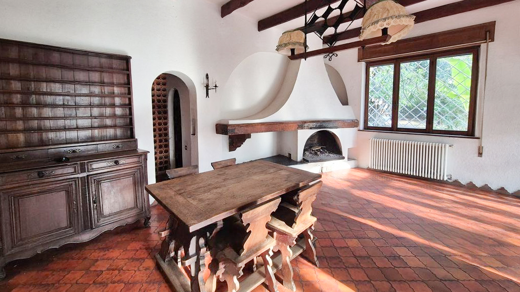 Amidst a verdant landscape, this exquisite residence captivates with its serene ambiance and breathtaking views of the surrounding hills. The property's elegant light-colored exterior and intricate metalwork on the windows exude an air of sophistication, while the lush garden brimming with diverse plants and trees invites you to revel in nature's beauty. A picturesque pathway leads you through this enchanting setting, promising peace and tranquility at every turn. This stunning 280 sqm home in Savona, SV, offers an expansive layout with seven rooms and two beautifully appointed bathrooms. The spacious interior seamlessly combines rustic charm with luxury, featuring a cozy room adorned with a wooden dining table, intricately designed chairs, a large sideboard, and a striking fireplace. Exposed wooden beams and large windows fill the space with natural light, enhancing the warm, inviting atmosphere. The property also boasts a private garden and terrace, perfect for enjoying the idyllic surroundings. Living here means embracing a lifestyle of coastal elegance, where each day unfolds with the gentle whisper of the sea breeze and the vibrant colors of the garden. Picture leisurely afternoons spent in your Italian-style garden, and evenings on the terrace, savoring alfresco meals as the sun sets behind the hills. This home offers not just a dwelling, but an experience that nourishes the soul. This residence epitomizes the pinnacle of luxury living, offering a harmonious blend of timeless elegance and modern amenities. A rare treasure in the heart of Savona's picturesque landscape, it stands as a testament to refined taste and unparalleled comfort.
