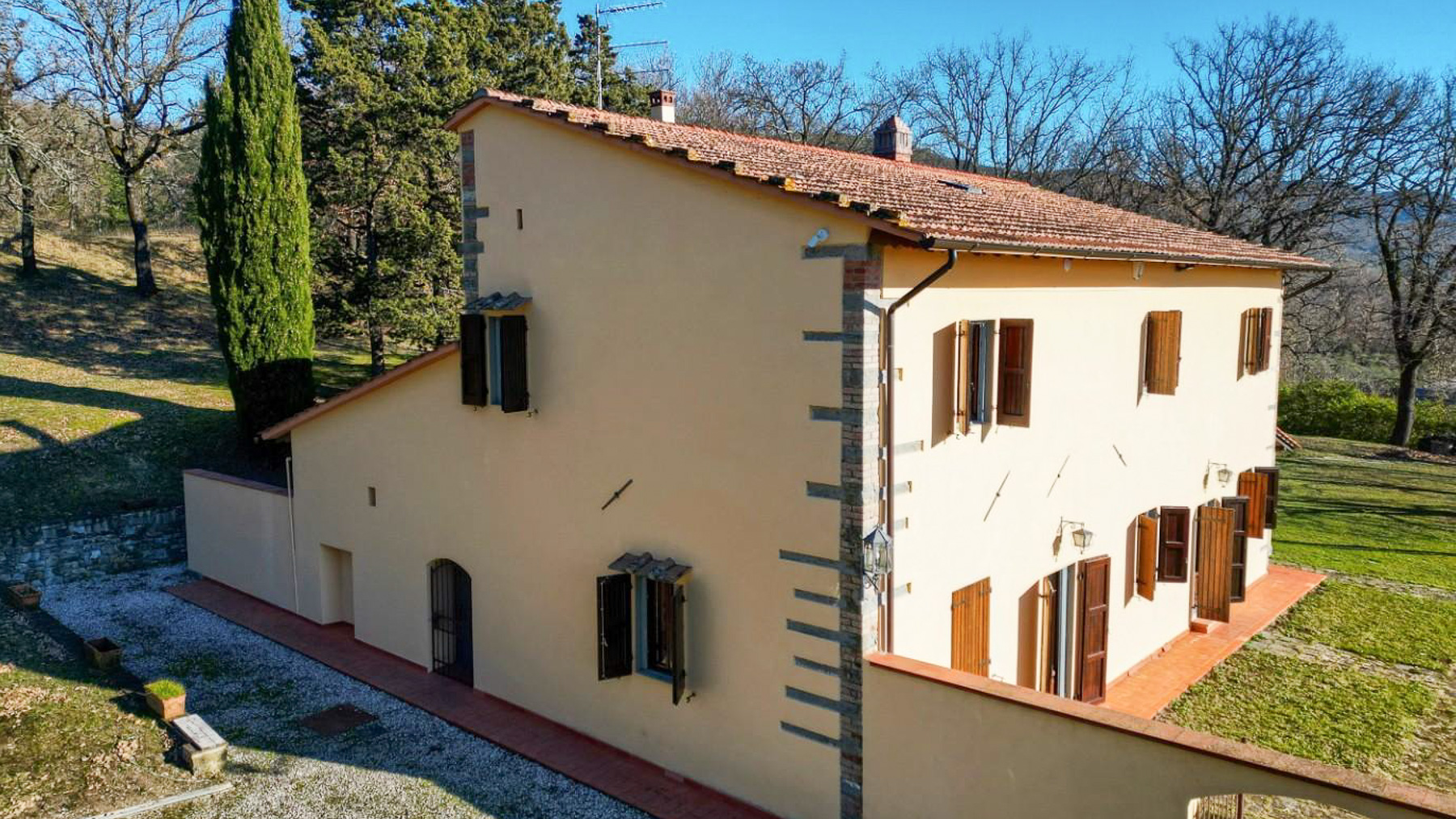 Tucked away in the serene embrace of nature, this exquisite property offers an idyllic retreat where comfort meets luxury. Imagine waking up to the gentle rustle of leaves and the soft glow of morning light filtering through the trees, creating a peaceful atmosphere that feels like a permanent vacation. Spanning an impressive 490 square meters, this remarkable estate is located in the picturesque region of Scarperia e San Piero, Firenze. With 11 spacious rooms and 4 elegant bathrooms, the home provides ample space for both relaxation and entertainment. The two-story yellow building, adorned with wooden shutters and doors, exudes charm and sophistication. A private garden surrounds the property, offering a lush sanctuary where you can unwind amidst the beauty of nature. Living here means embracing a lifestyle of tranquility and refinement. Picture leisurely afternoons spent strolling through the vibrant garden, or evenings by the fireplace with friends and family. The property invites you to enjoy the simple pleasures of life, enveloped by the natural beauty of the countryside. This distinguished estate is a rare find in the luxury real estate market, offering an unparalleled blend of timeless charm and modern comforts. It's more than just a home
