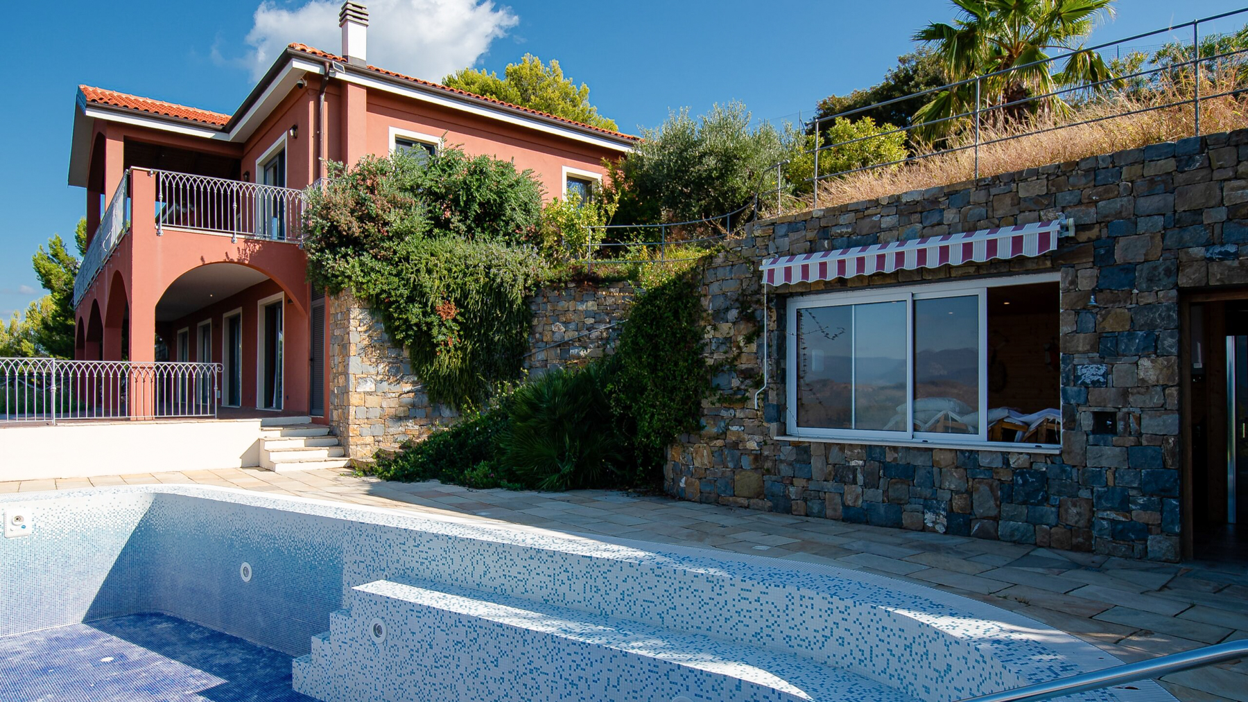 Perched amidst the serene beauty of Soldano, this captivating residence offers an exquisite blend of luxury and tranquility. The gentle rustle of leaves and the soft glow of sunlight filtering through the trees create an enchanting atmosphere that envelops you in comfort. As you approach, the reddish exterior of the multi-level home, adorned with a tiled roof and a charming covered balcony, invites you in with open arms. Spanning an impressive 300 square meters, this home boasts nine spacious rooms and four elegant bathrooms, providing ample space for relaxation and entertainment. The private garden and pool offer a secluded oasis where you can unwind and bask in the Mediterranean lifestyle. The stone paving and lush greenery enhance the allure of this property, making it a perfect retreat in the picturesque town of Soldano, Imperia. Living here is an experience steeped in luxury and serenity. Picture yourself lounging by the mosaic-patterned pool, surrounded by the vibrant colors of nature, or savoring a leisurely stroll through the garden as the sea breeze whispers through the leaves. This home is not just a place to live but a sanctuary where each day is filled with beauty and peace. This residence is a unique blend of timeless charm and modern elegance, a true gem in the heart of Soldano. Here, luxury meets nature, creating an unparalleled living experience that promises to captivate and inspire.