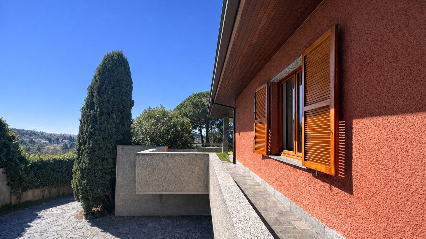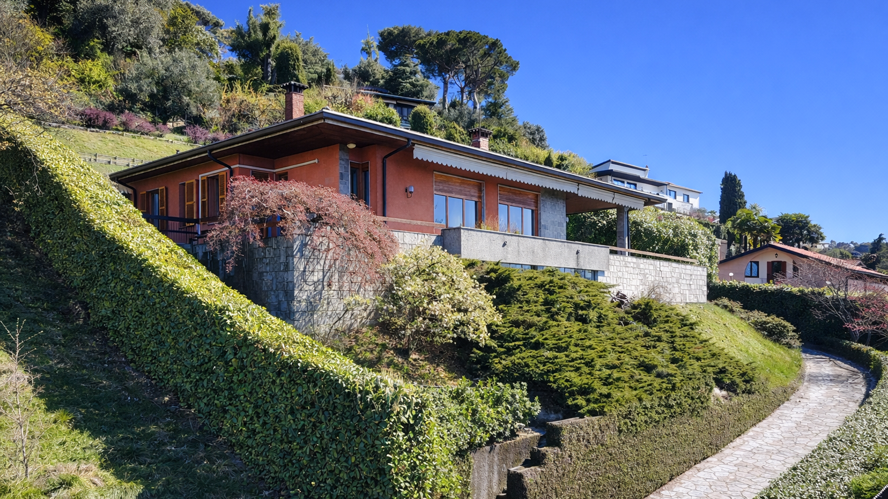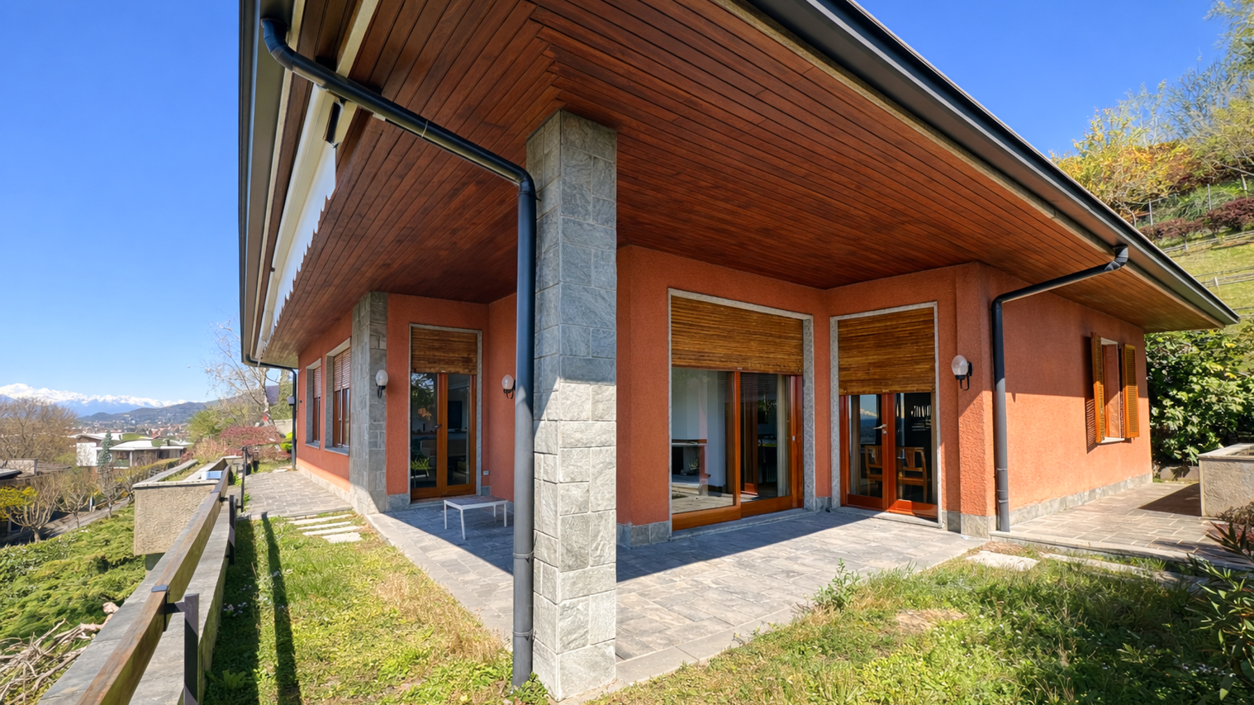 Perched in a serene landscape, this stunning modern home captivates with its blend of contemporary design and natural beauty. As the sun casts its golden glow over the stone and orange-rendered walls, the large windows reflect the tranquil surroundings. The gentle rustle of leaves and the distant whisper of the wind through the hills create an atmosphere of ultimate relaxation, inviting you to experience life at a slower pace. Spanning 450 square meters, this exquisite residence in Varese offers a harmonious blend of luxury and comfort. With ten spacious rooms and four elegantly appointed bathrooms, the home is designed to accommodate both intimate family gatherings and grand entertaining. The distinctive garden, meticulously landscaped with lush greenery and a sophisticated patio area, provides a seamless transition between indoor and outdoor living. The wooden roof and expansive glass doors add a touch of sophistication, while the picturesque backdrop of hills and mountains enhances the home's allure. Living here means embracing a lifestyle defined by peace and natural beauty. Imagine sipping your morning coffee on the patio as the sun rises over the mountains, or spending lazy afternoons reading in the garden, surrounded by the scent of fresh grass and the sounds of nature. Evenings can be spent dining al fresco under the stars, with the gentle breeze carrying the promise of a new day. This property represents the pinnacle of modern luxury in a tranquil setting—a rare opportunity to own a piece of paradise in the heart of Varese’s countryside. Indulge in the refined elegance and contemporary charm of this exclusive home.