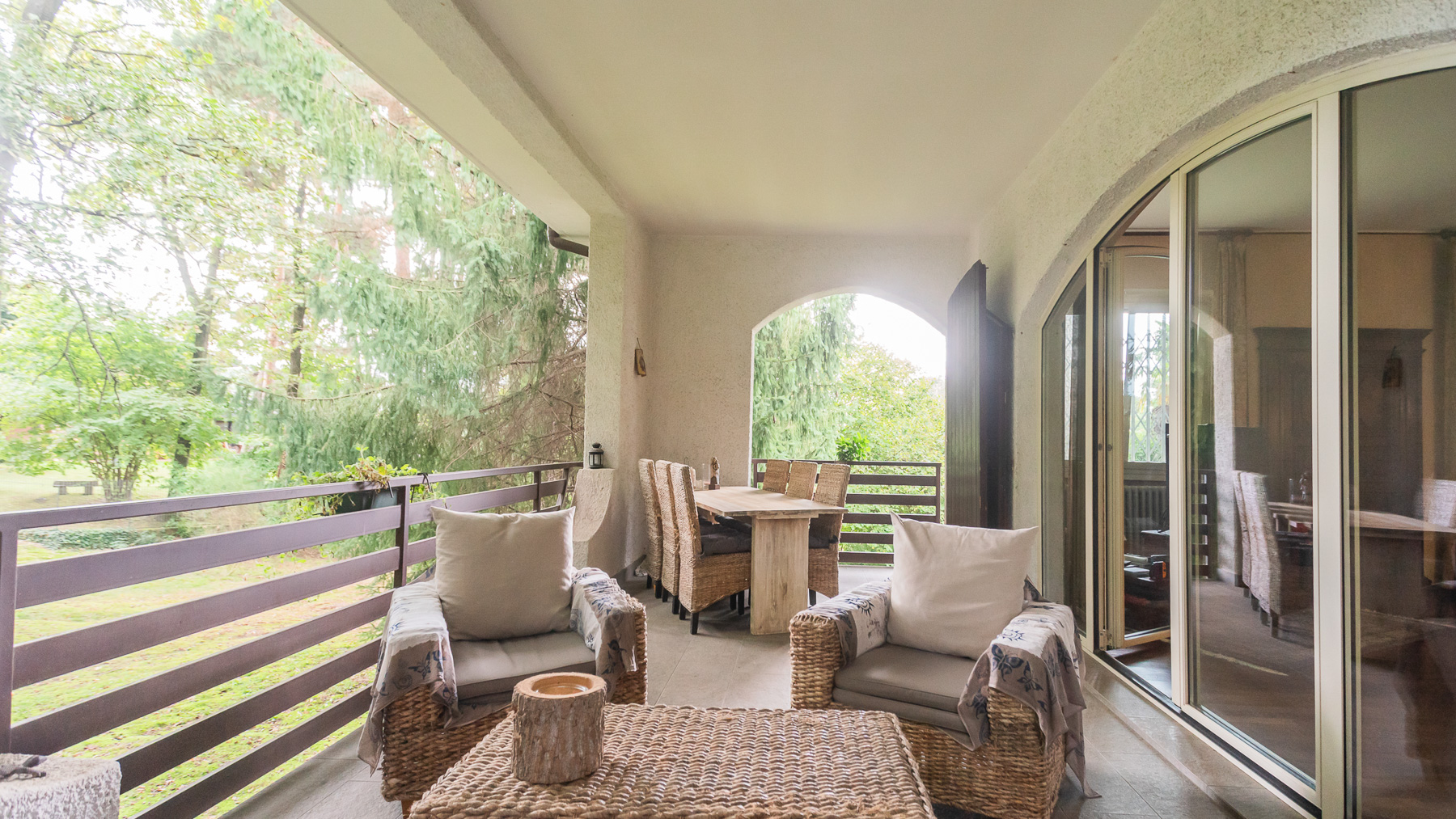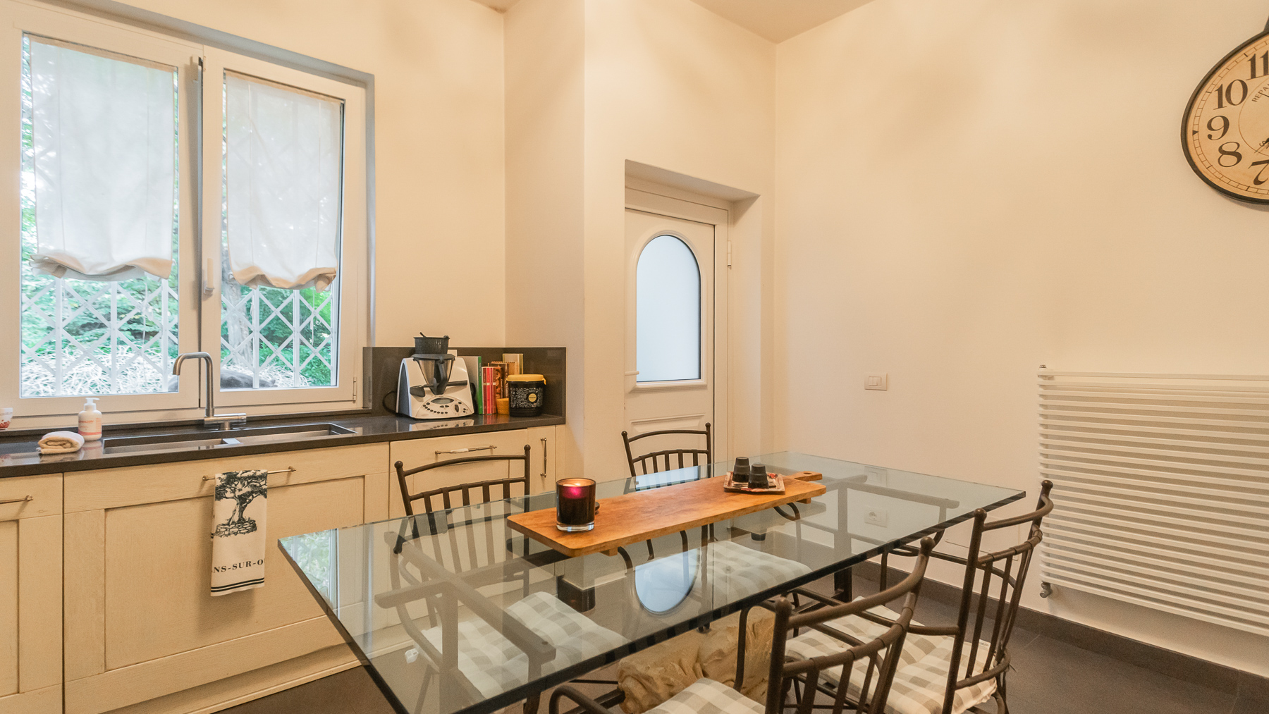 In the embrace of nature's serenity, this exquisite property stands surrounded by lush greenery, offering a sanctuary of peace and sophistication. The white exterior, adorned with charming wooden shutters, blends seamlessly with the vibrant landscape. A picturesque pathway meanders through the verdant garden, leading to a warm and inviting entrance, where tranquility and elegance await. Spanning an impressive 311 square meters, this majestic residence in Venegono Superiore, Varese, boasts ten spacious rooms and three luxurious bathrooms. Step inside to discover a harmonious blend of classic and rustic elements, epitomized by the cozy dining area with its wooden paneling and grand dining table. The property features a delightful terrace and an enchanting garden, perfect for those who cherish the countryside lifestyle. Experience the idyllic charm of this abode as you savor quiet mornings in the garden, surrounded by the gentle rustle of leaves and the sweet scent of blossoms. Envision evenings spent under a starlit sky on the expansive terrace, where the beauty of nature becomes a backdrop to your most cherished moments. This residence is a testament to the perfect balance of timeless elegance and modern comfort, a unique opportunity for those seeking a distinguished and luxurious lifestyle in the heart of the Italian countryside.