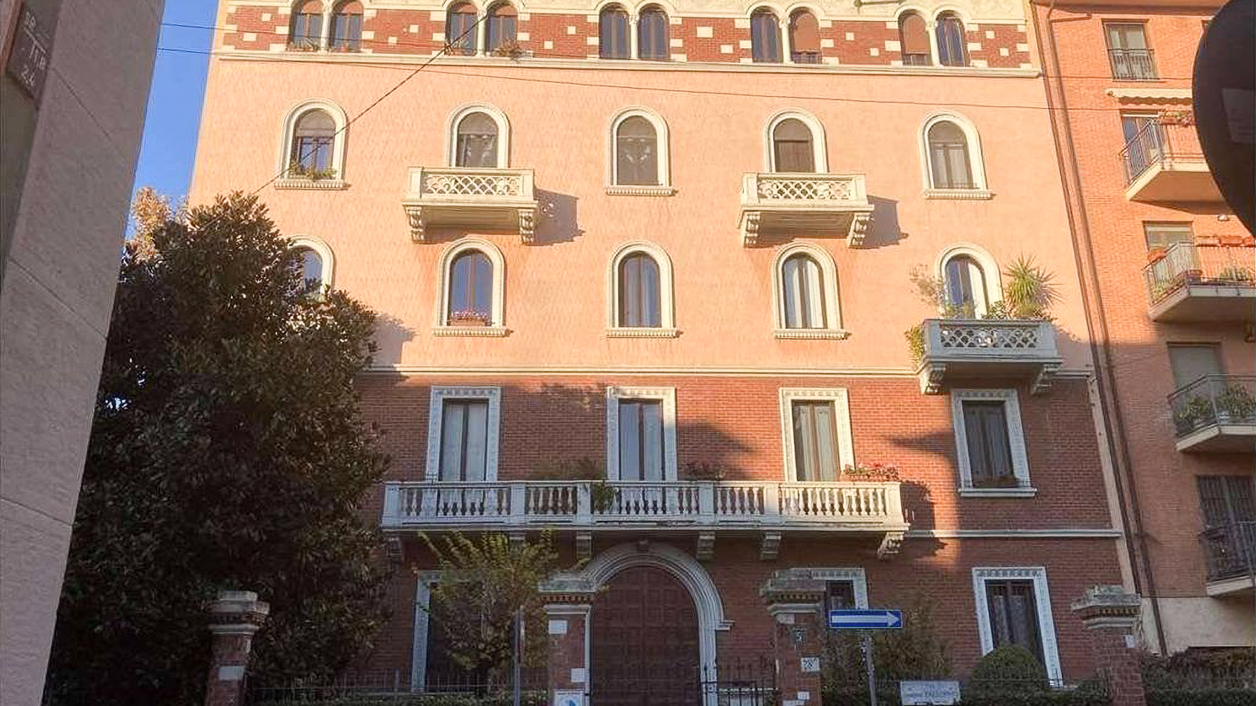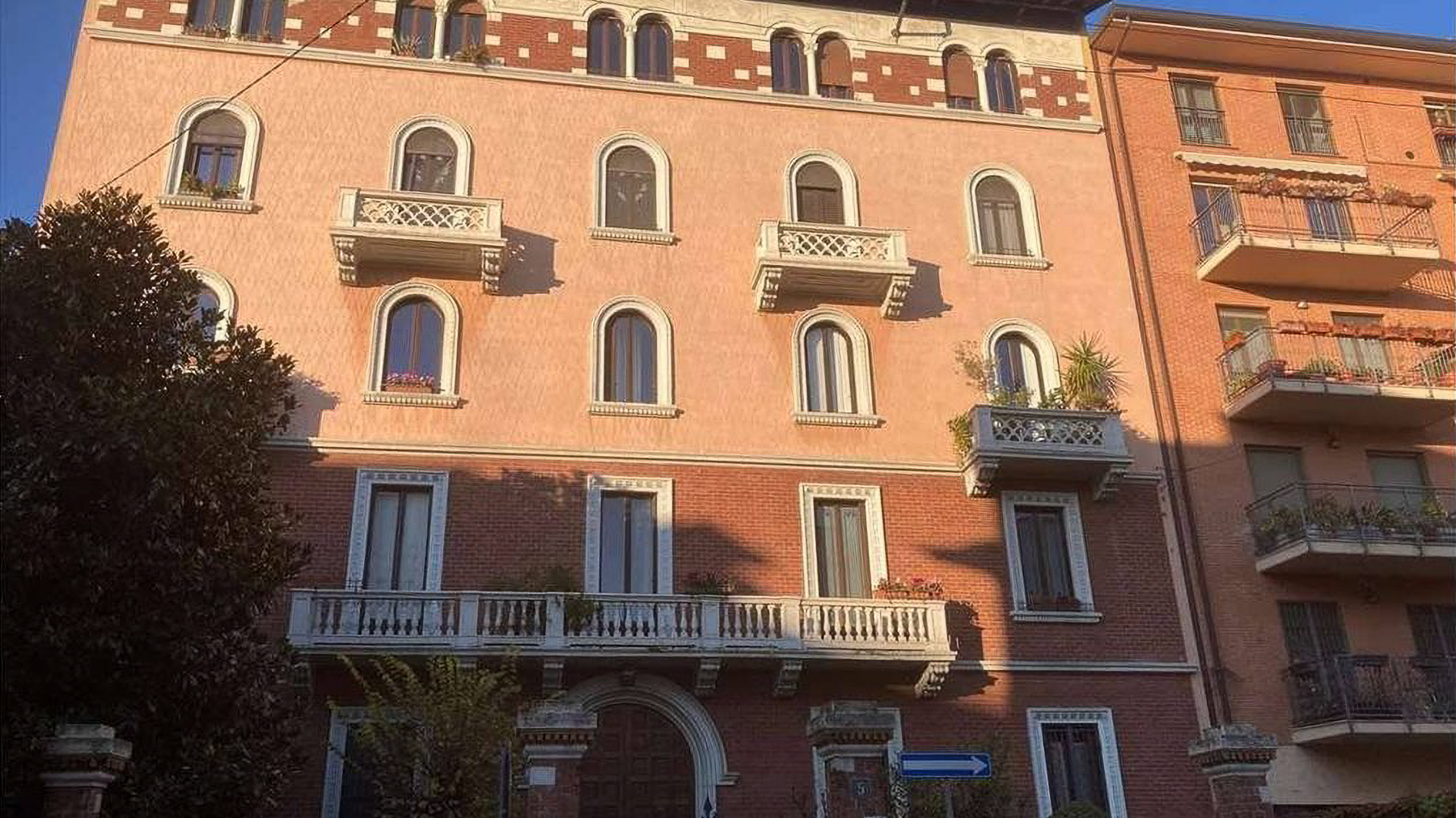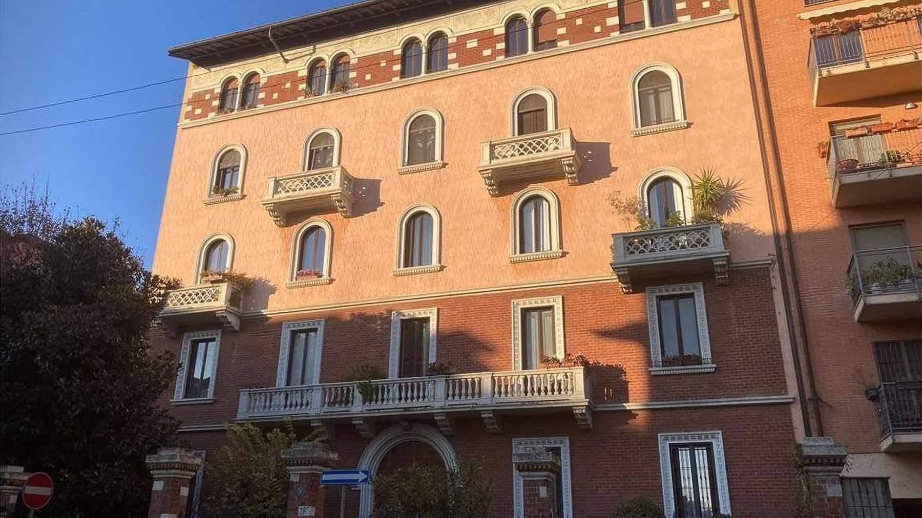 Situated gracefully within the vibrant heart of Milan, this exquisite property exudes a distinctive charm blending modern luxury with classic elegance. Bathed in natural light, the facade's pink and brick hues evoke warmth and sophistication, while the serene surroundings create a peaceful retreat from the bustling city life. Imagine the gentle rustle of leaves and the soft chirping of birds as you gaze upon a clear blue sky. Spanning an impressive 210 square meters, this multi-story residence offers five spacious rooms and two elegant bathrooms. Its architectural allure is heightened by arched windows and decorative balconies adorned with lush greenery. The interiors are equally captivating, featuring a bedroom with an intricately designed headboard and a chic herringbone-patterned wooden floor. A terrace offers a private oasis to unwind and savor the cityscape views. Located in the heart of Milano, this property epitomizes the sophisticated urban lifestyle. Living here means experiencing the perfect blend of tranquility and city excitement. Picture leisurely mornings sipping coffee on your terrace, the sun casting its golden glow through the sheer curtains. The elegant ambiance of the home invites relaxation and inspiration, making it a haven for those who appreciate refined living in one of Italy's most dynamic cities. This residence stands as a testament to unparalleled luxury and architectural distinction—a masterpiece in the prestigious landscape of Milan’s luxury real estate market. A rare opportunity to own a piece of elegance in a city renowned for its style and sophistication.