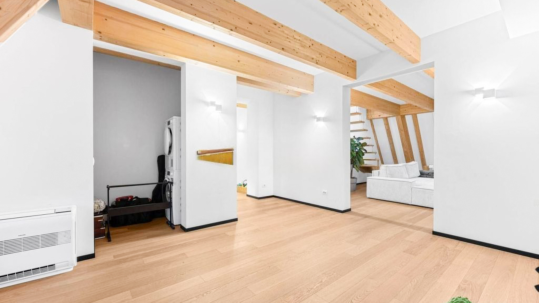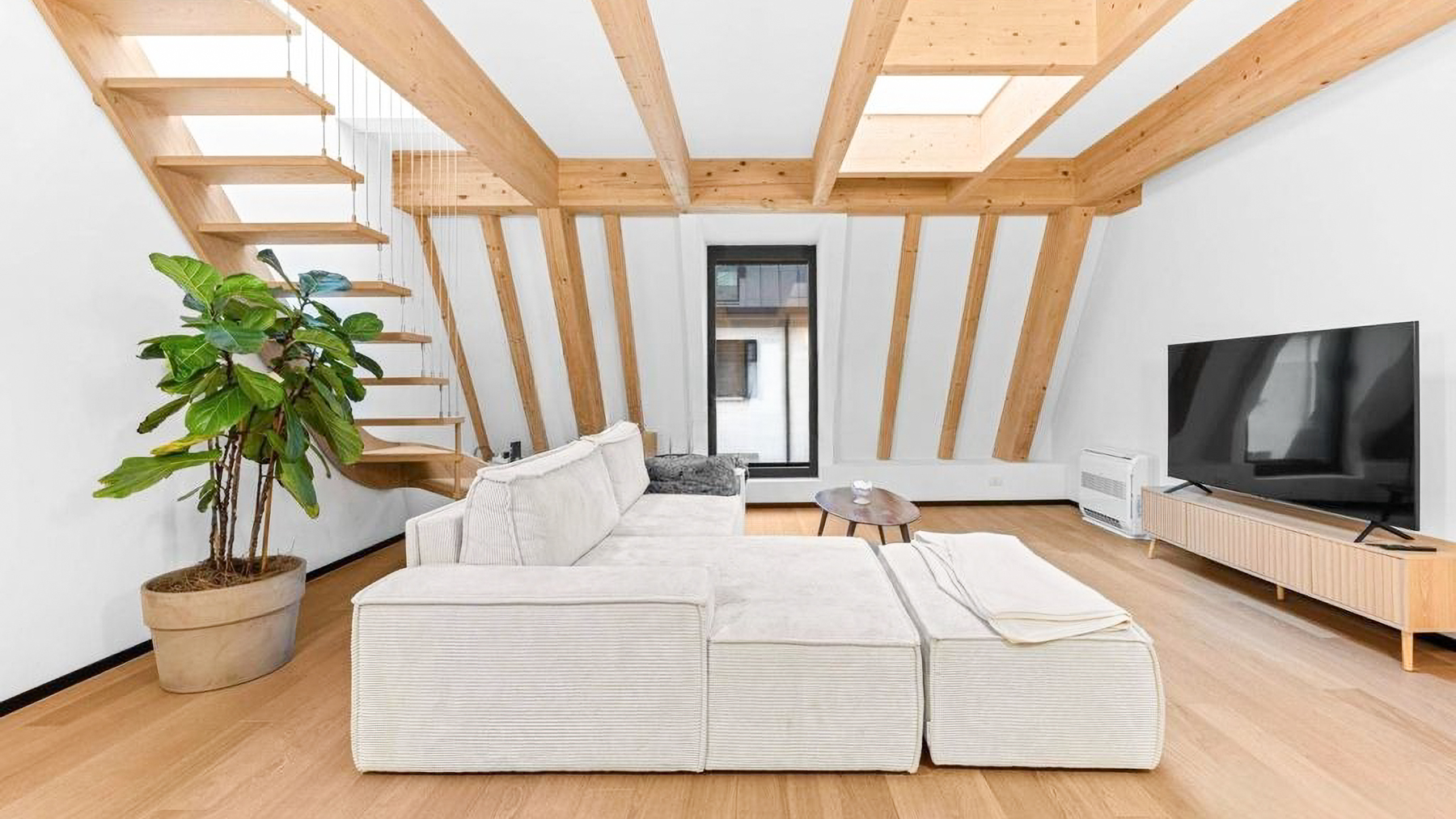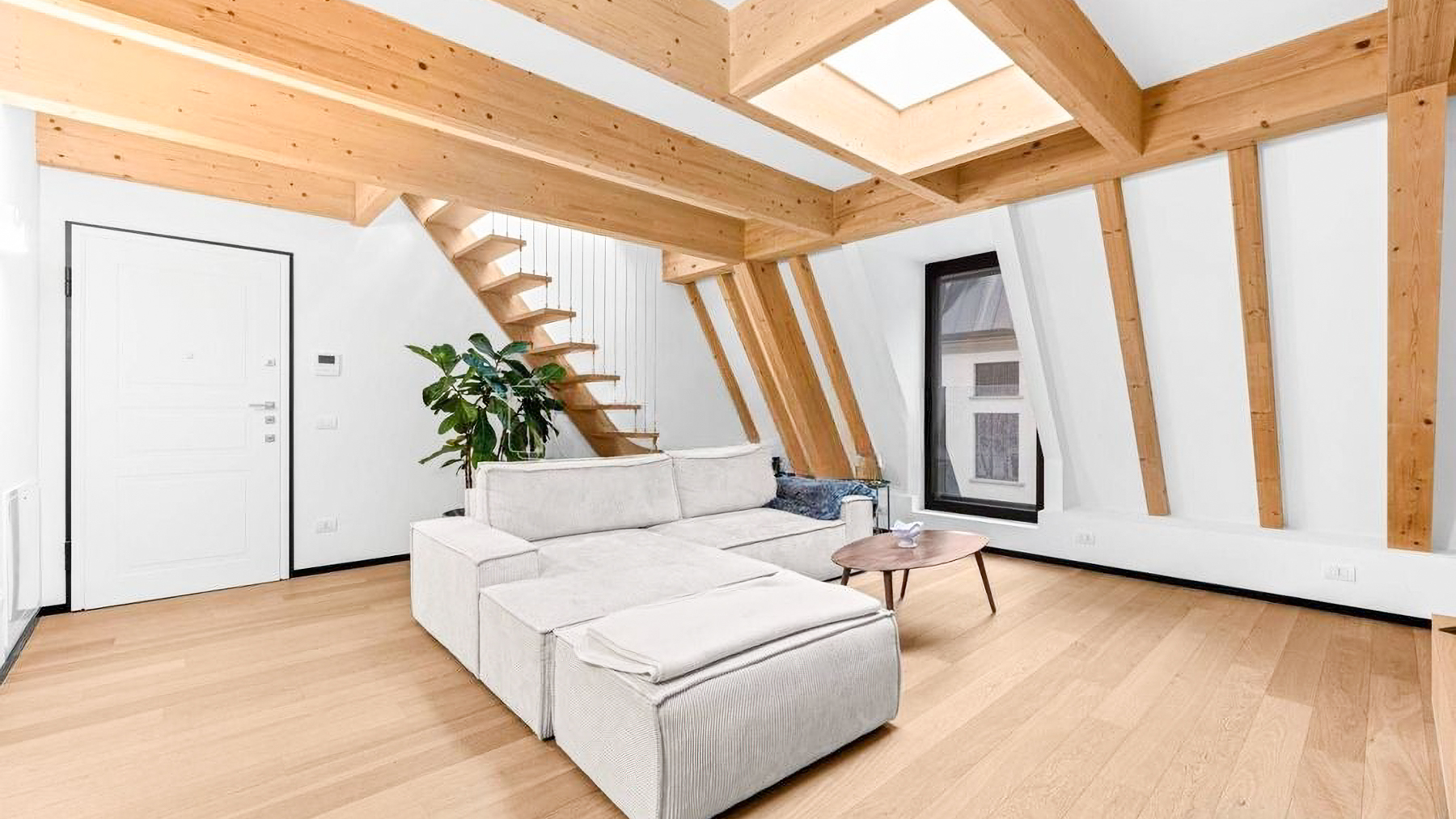 Amidst the vibrant energy of Milano, this exquisite property is a sanctuary of modern elegance and minimalist charm. As you step inside, the gentle embrace of natural light welcomes you, illuminating the open spaces and highlighting the seamless blend of contemporary design and warmth. The scent of fresh wood and the soft rustle of leaves from the potted plants create an atmosphere of serene sophistication. Spanning 136 square meters, this luxurious haven features three spacious rooms and one elegantly appointed bathroom, offering ample space for relaxation and rejuvenation. The heart of this residence is its modern living area, adorned with a light-colored sectional sofa and a wooden coffee table that invite leisurely afternoons. The striking wooden beams overhead add a rustic touch to the minimalist design, while the terrace beckons with promises of tranquil moments under the open sky. Located in the heart of Milano, this property is a true urban oasis, perfect for city living. Imagine unwinding after a long day in this tranquil retreat, where every detail has been thoughtfully curated to enhance your living experience. The expansive terrace becomes your private escape, perfect for enjoying morning coffees or intimate gatherings with friends, surrounded by the gentle hum of the city. This property embodies the perfect fusion of contemporary minimalism and urban luxury—a rare find in the bustling real estate market of Milano. Embrace the opportunity to make this exceptional residence your own, where every day feels like a retreat.