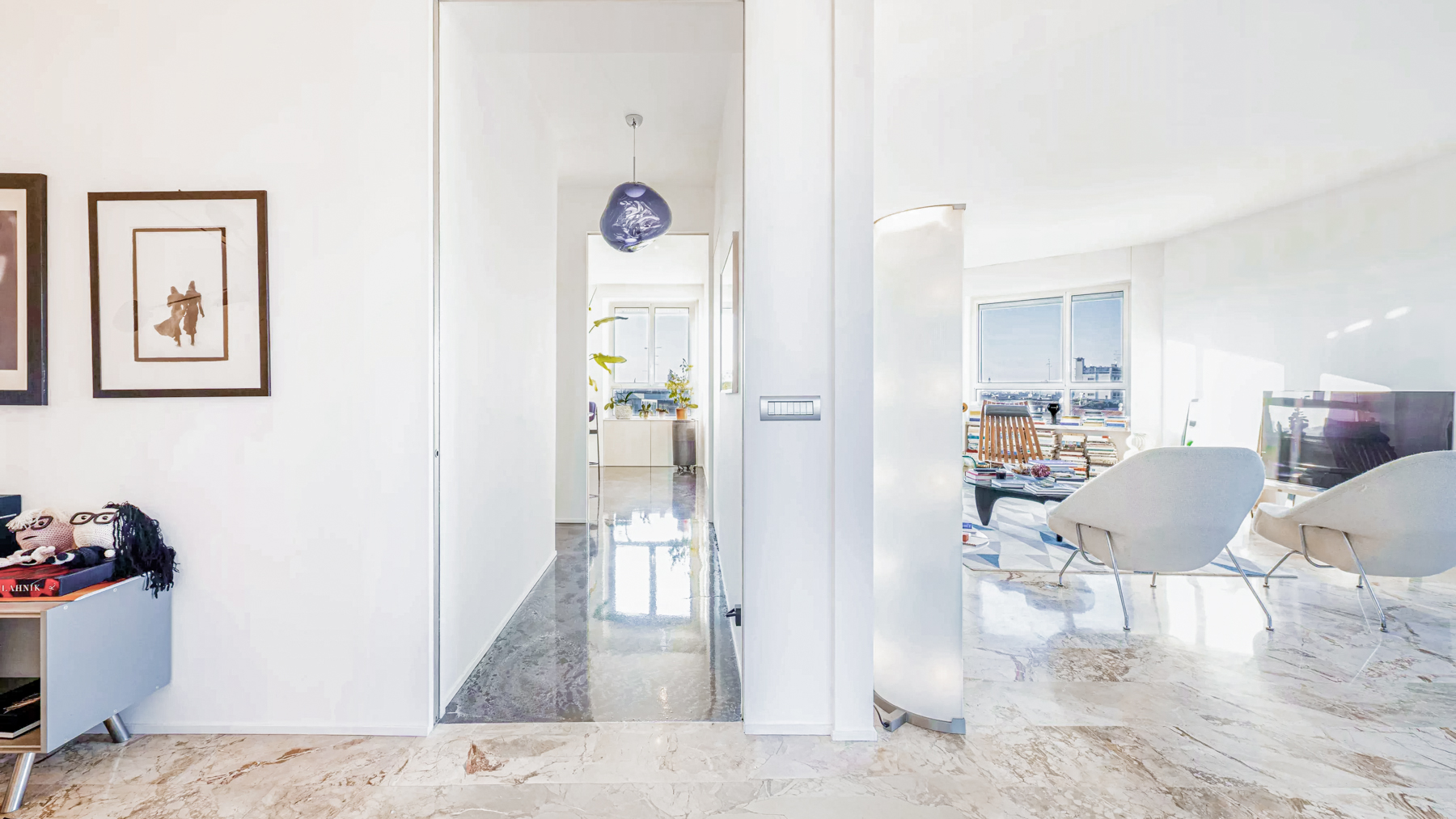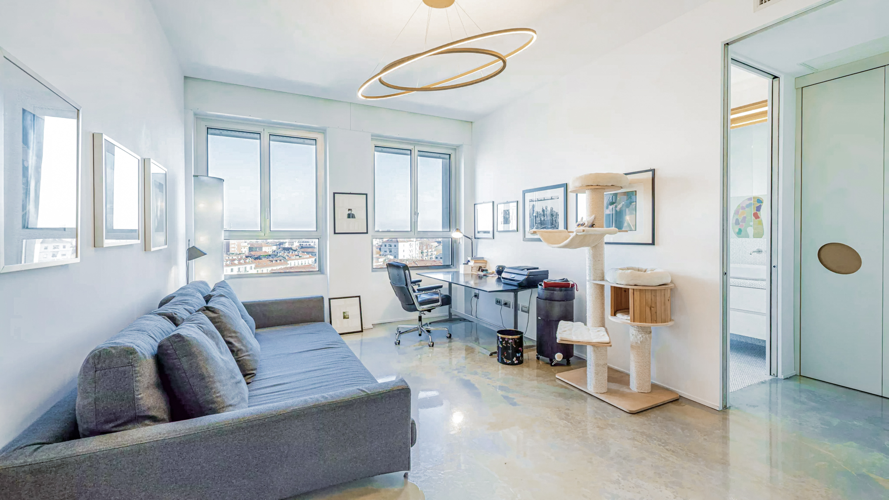 Situated in the heart of Milano, this exquisite property exudes an aura of modern luxury and tranquility. Bathed in natural light from expansive windows, the interiors offer a serene retreat from the bustling city. The gentle rustle of leaves and the soft whisper of the wind create an atmosphere of peace, inviting you to unwind in style. Spanning 262 square meters, this magnificent home boasts 10 spacious rooms and 4 elegantly appointed bathrooms. The minimalist design is enriched with luxurious touches, including a polished concrete floor and a sophisticated color palette of whites and blues. Distinctive features such as a stylish bed with a tufted headboard, contemporary furnishings, and artfully displayed photographs add to the room's charm. Located in the vibrant Milano, this residence perfectly blends urban convenience with refined city living. Imagine waking up to panoramic views of the city skyline, sipping your morning coffee as sunlight floods your living space. The minimalist yet warm design provides a canvas for creating unforgettable memories, whether hosting intimate gatherings or enjoying quiet moments of reflection. The property offers a harmonious blend of simplicity and elegance, encouraging a lifestyle of comfort and sophistication. This stunning residence stands as a testament to contemporary elegance and luxury. It is a rare find in the Milano real estate market, offering an unparalleled living experience for those who seek the finest in urban living.