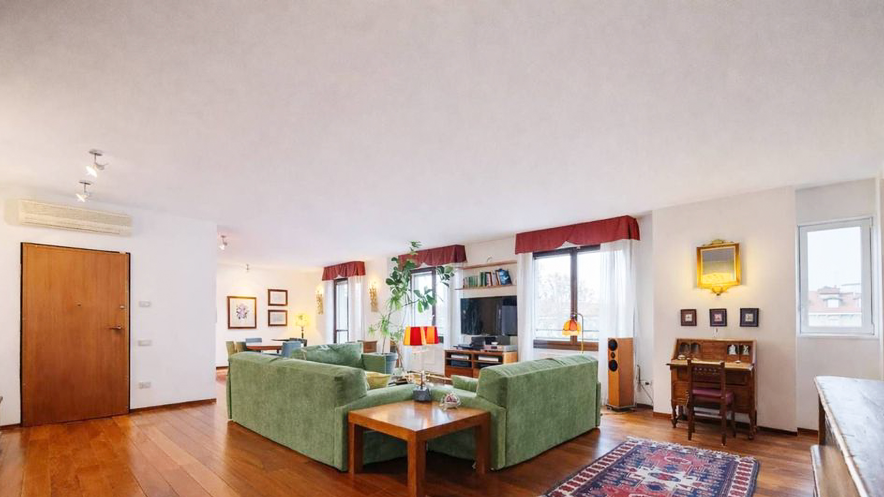 In the vibrant heart of Milano, a world of elegance unfolds as you step into this luxurious sanctuary. Bathed in natural light streaming through expansive windows, the residence invites you into a realm of sophistication where every detail is crafted to perfection. The gentle rustle of city life becomes a distant hum, offering a serene backdrop to your urban escape. Spanning an impressive 220 square meters, this exquisite property boasts four spacious rooms and three elegantly designed bathrooms. Each room exudes contemporary charm, from the inviting living area with its plush green sofas and warm wooden flooring to the sleek, modern kitchen equipped with top-tier appliances. The garden, a verdant oasis amid city life, beckons you to unwind and enjoy tranquil moments in the heart of Milano's bustling landscape. Envision a lifestyle where every day feels like a luxurious retreat. Savor mornings with coffee by the garden, embraced by the soft caress of fresh air, and evenings in the cozy ambiance of your beautifully appointed living space. This home is more than a residence; it's an experience of comfort, elegance, and the finest city living. This residence is a testament to the art of refined living—a jewel that seamlessly combines timeless style with modern convenience. An extraordinary opportunity in Milano's prestigious real estate market awaits those with discerning taste.