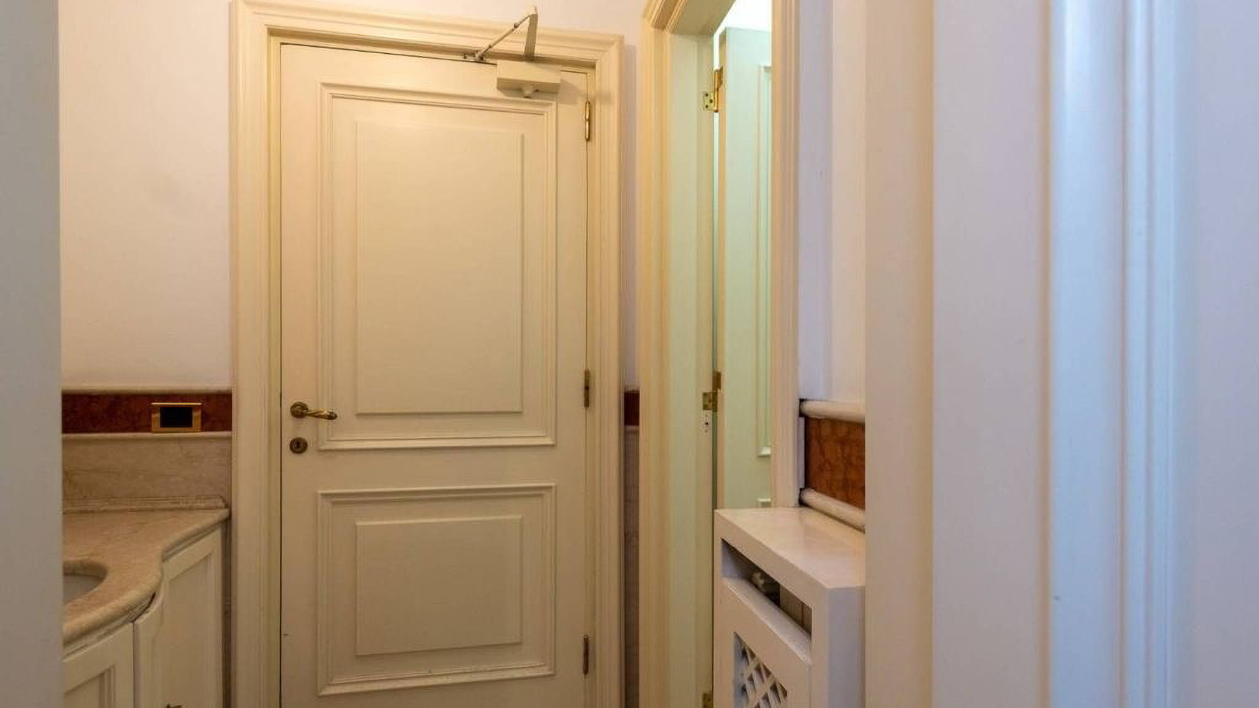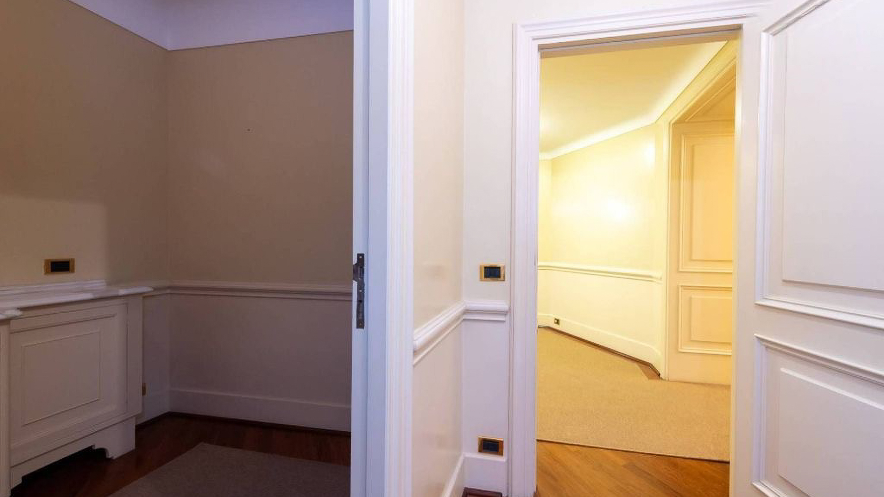 In the heart of Rome, where history and modernity blend seamlessly, lies a residence that exudes elegance and sophistication. Imagine stepping into a world where every corner tells a story, and the atmosphere is filled with warmth and light. The gentle glow from the ceiling fixtures enhances the soft hues of the walls, inviting you to explore further. Sprawling across 543 square meters, this luxurious property offers five exquisitely designed rooms and three opulent bathrooms, providing ample space for both relaxation and entertainment. The allure of this home extends beyond its interiors