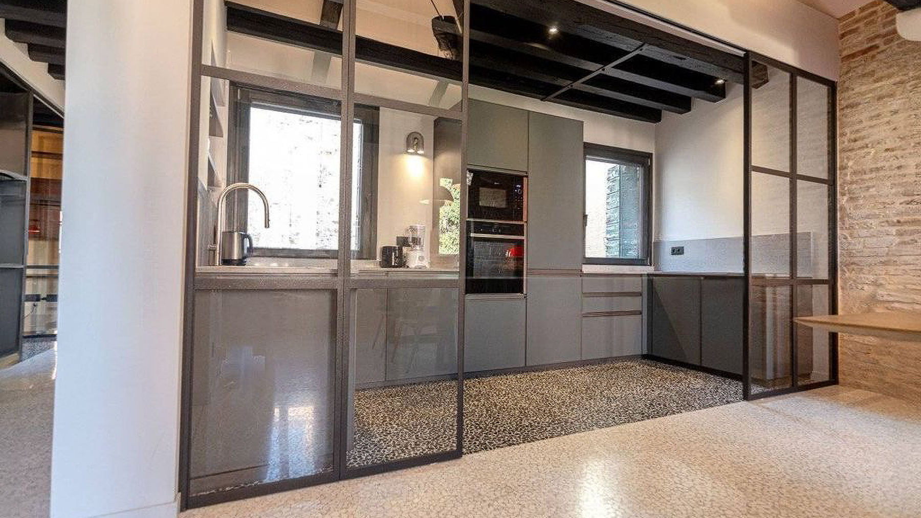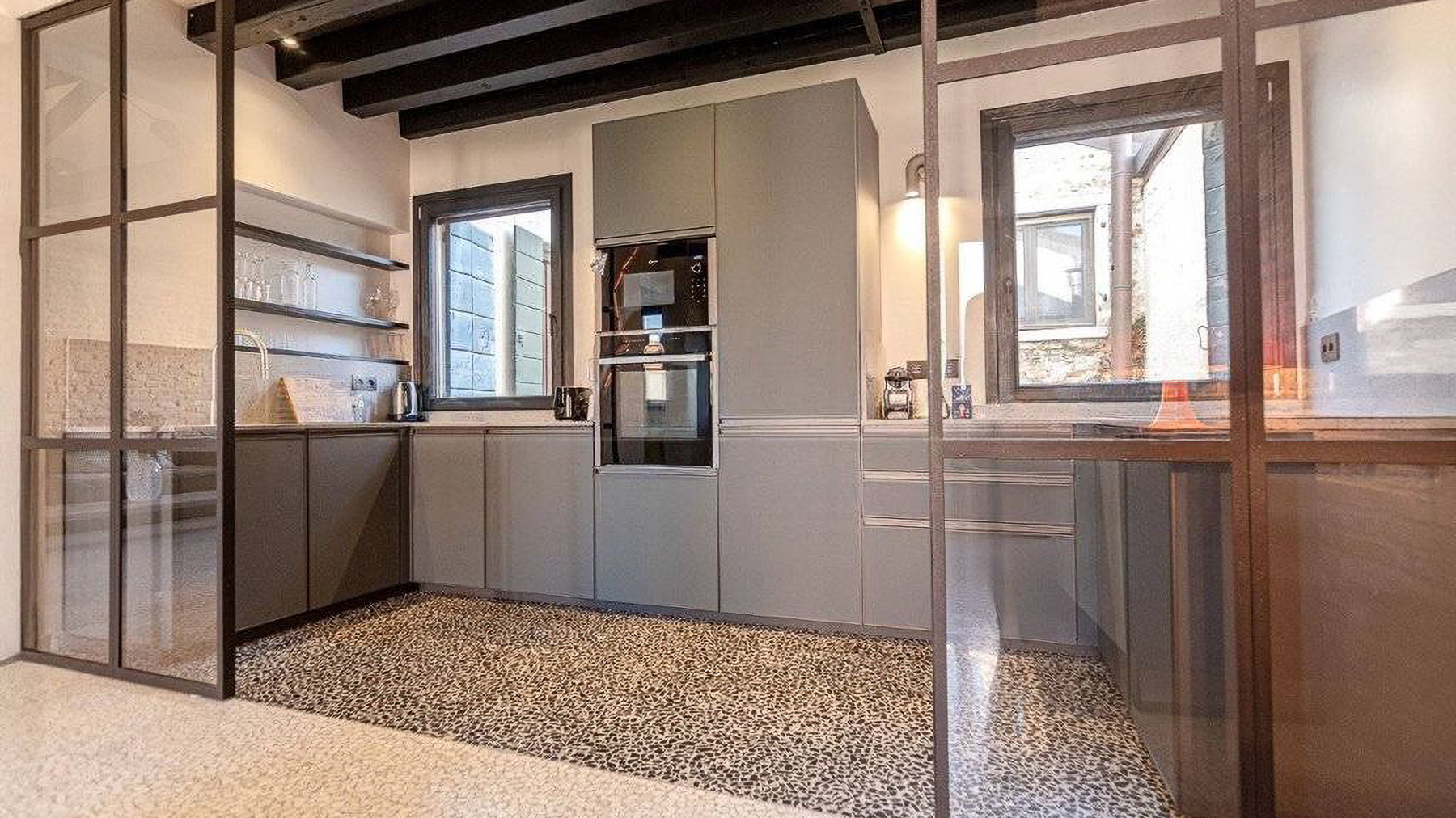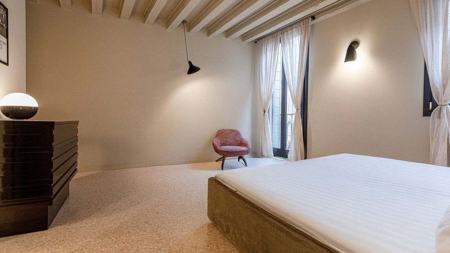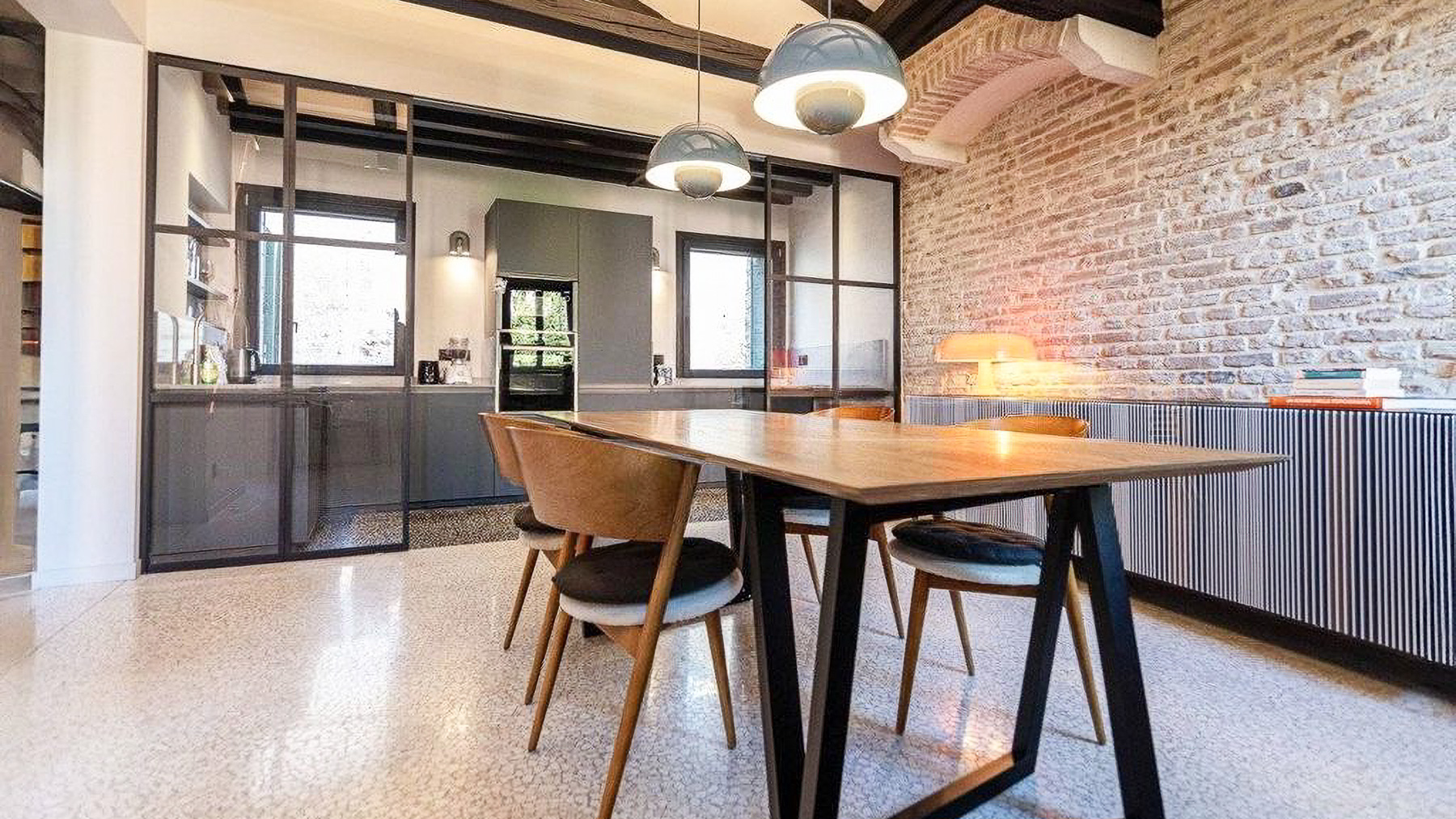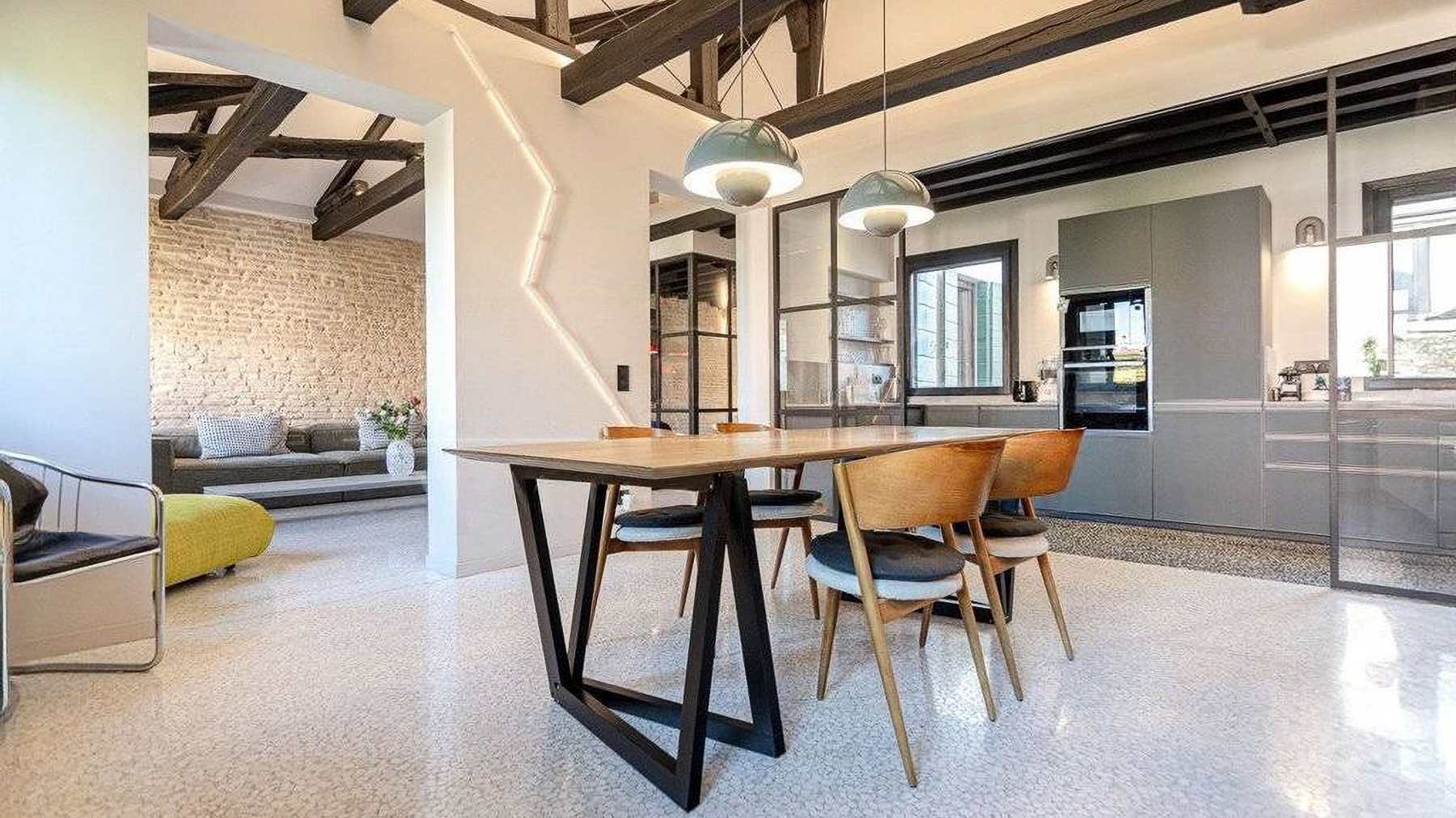 Step into a world where contemporary elegance meets the timeless charm of Italian design. Bathed in natural light, this exquisite property in the heart of Venice invites you to experience a symphony of style and comfort. Imagine the gentle glow of pendant lights illuminating a sumptuous dining area, while the soft rustle of leaves and the scent of freshly brewed coffee envelop your senses. Spanning an impressive 185 square meters, this luxurious residence offers a harmonious blend of modernity and tradition. With five spacious rooms and two beautifully appointed bathrooms, the home is a testament to refined living. The centerpiece is a stunning dining area with a wooden table, unique black base, and cushioned chairs, set against a backdrop of large windows and stylish exposed beams. The smooth white and exposed stone walls add a touch of rustic sophistication, completing this urban sanctuary in the vibrant city of Venice. Living here means embracing a lifestyle of elegance and ease. Picture yourself savoring leisurely breakfasts bathed in morning light, or hosting intimate dinner parties in a space that delights and inspires. The seamless integration of indoor and outdoor elements fosters a serene atmosphere, perfect for unwinding after a day exploring the rich cultural tapestry of Venice. This property is a rare jewel in the luxury real estate market, offering an unparalleled blend of charm and modern comfort. It is an invitation to indulge in the art of living well, in one of the world's most enchanting cities.