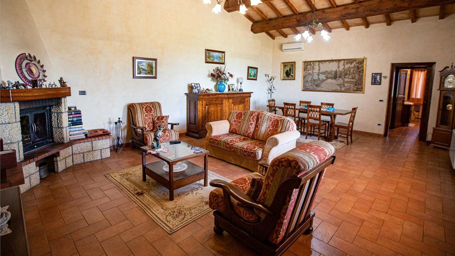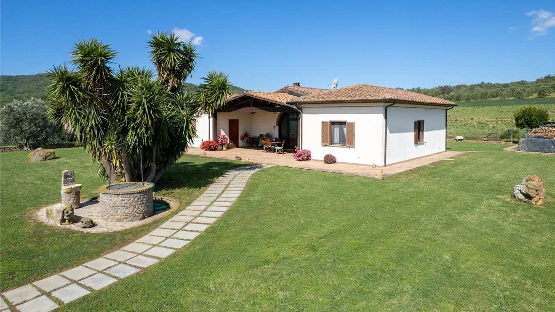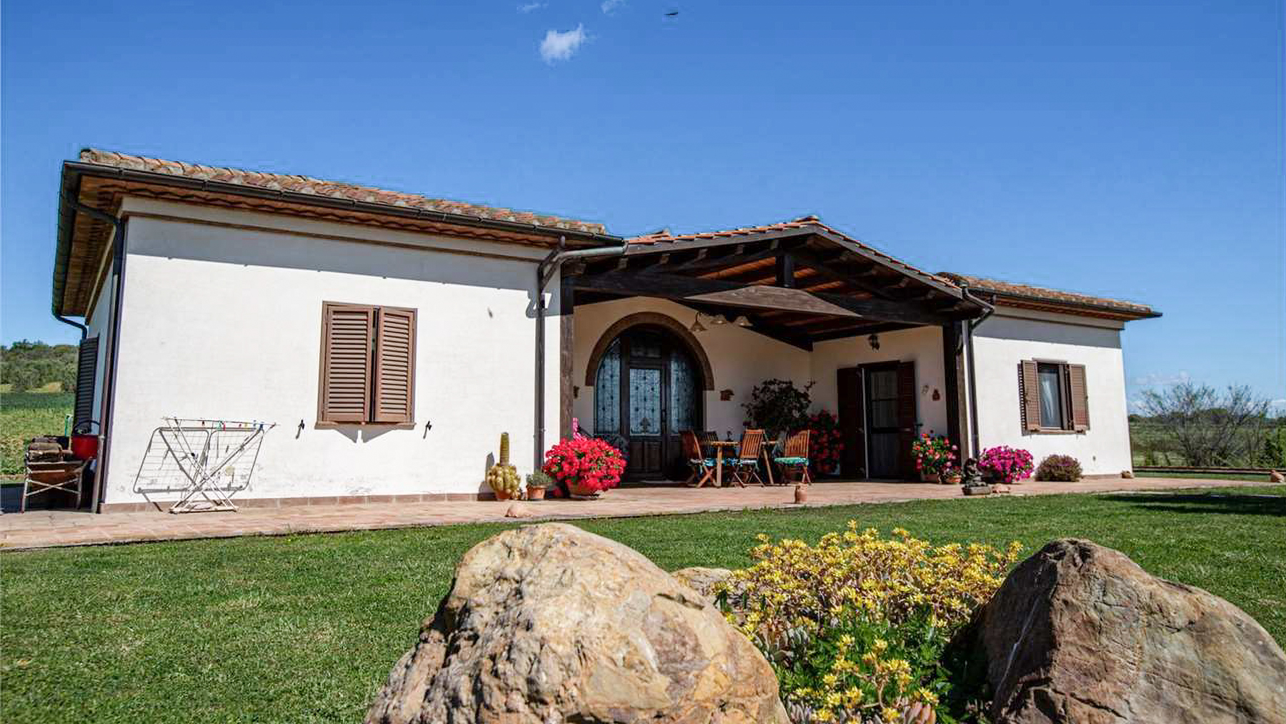 Set against the backdrop of a serene countryside, this enchanting residence captivates with its charming ambiance and breathtaking views. Imagine waking up to the gentle rustle of olive trees and the soft glow of sunlight filtering through the rolling hills. The picturesque landscape, complete with a clear blue sky, sets the stage for a life of tranquility and refined elegance. Spanning 170 square meters, this exquisite property in Capalbio, Provincia di Grosseto, offers a harmonious blend of comfort and style. With five inviting rooms and two well-appointed bathrooms, the home exudes warmth and character. The bedroom, adorned with warm yellow walls and a floral-patterned quilt, provides a cozy retreat, while a wooden dresser and large wardrobe add a touch of rustic charm. A scenic doorway leads to other inviting spaces within the home, each thoughtfully designed to enhance your living experience. Living here is an invitation to embrace the idyllic lifestyle of the Italian countryside. Picture yourself savoring a morning coffee as the sun rises over fields of olive trees, or hosting intimate gatherings in the comfort of your luxurious abode. The landscape inspires a deep sense of peace, and each day unfolds with the gentle rhythm of nature as your guide. This property is a testament to the art of fine living, where luxury meets the simple pleasures of rural life. A true masterpiece in the luxury real estate market, it promises an unparalleled experience of elegance and serenity.