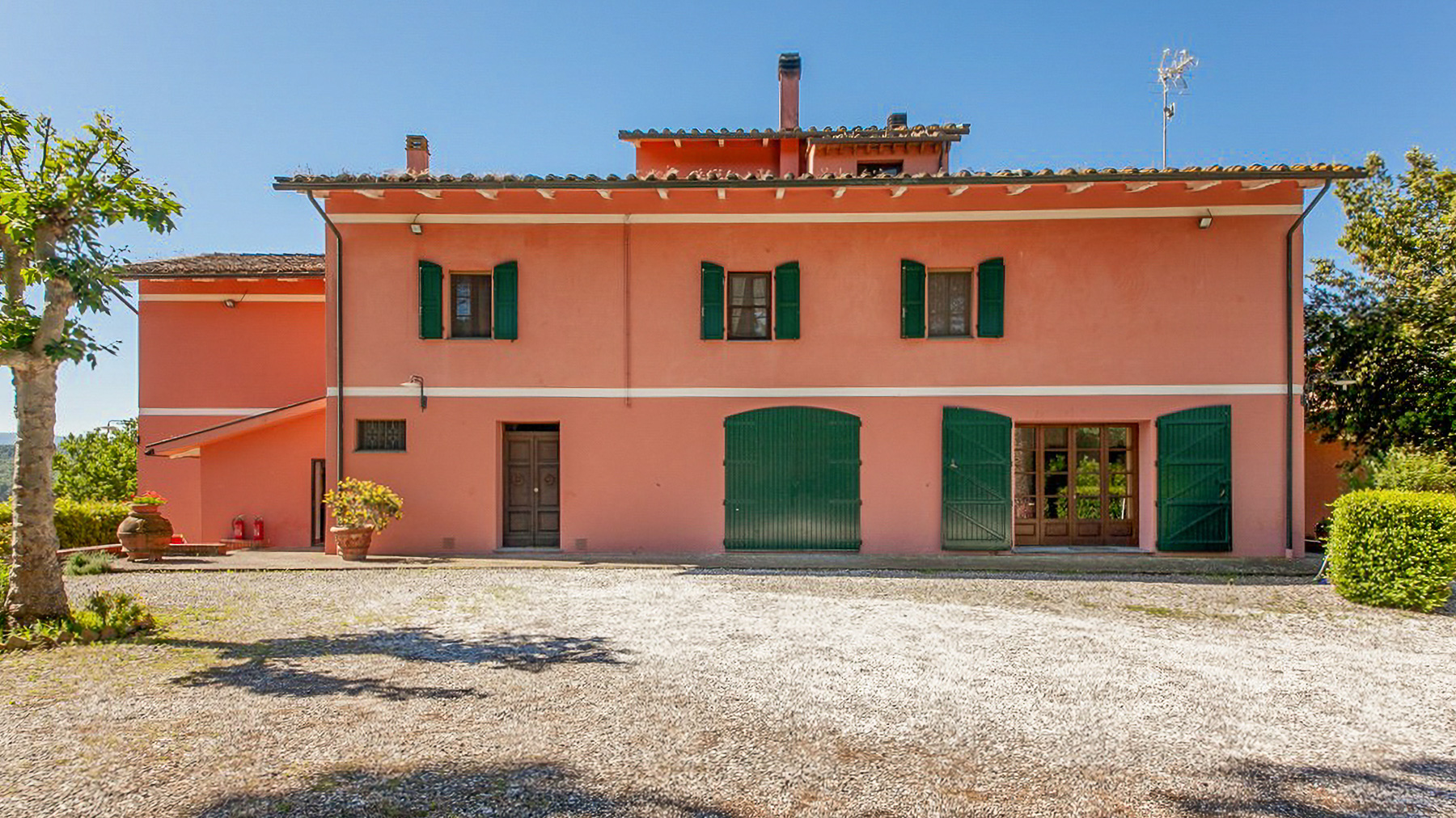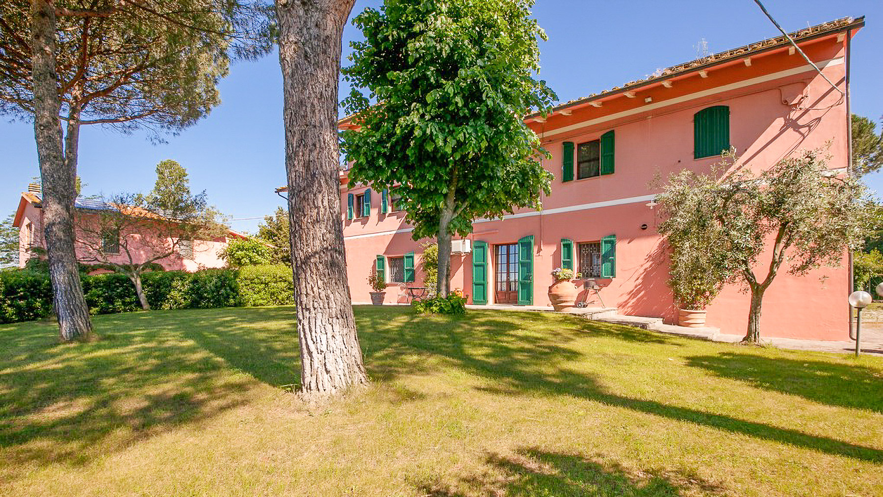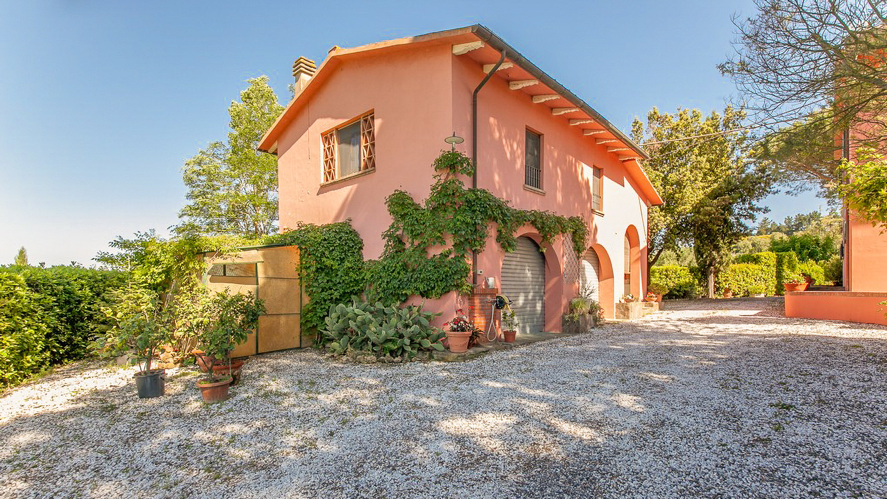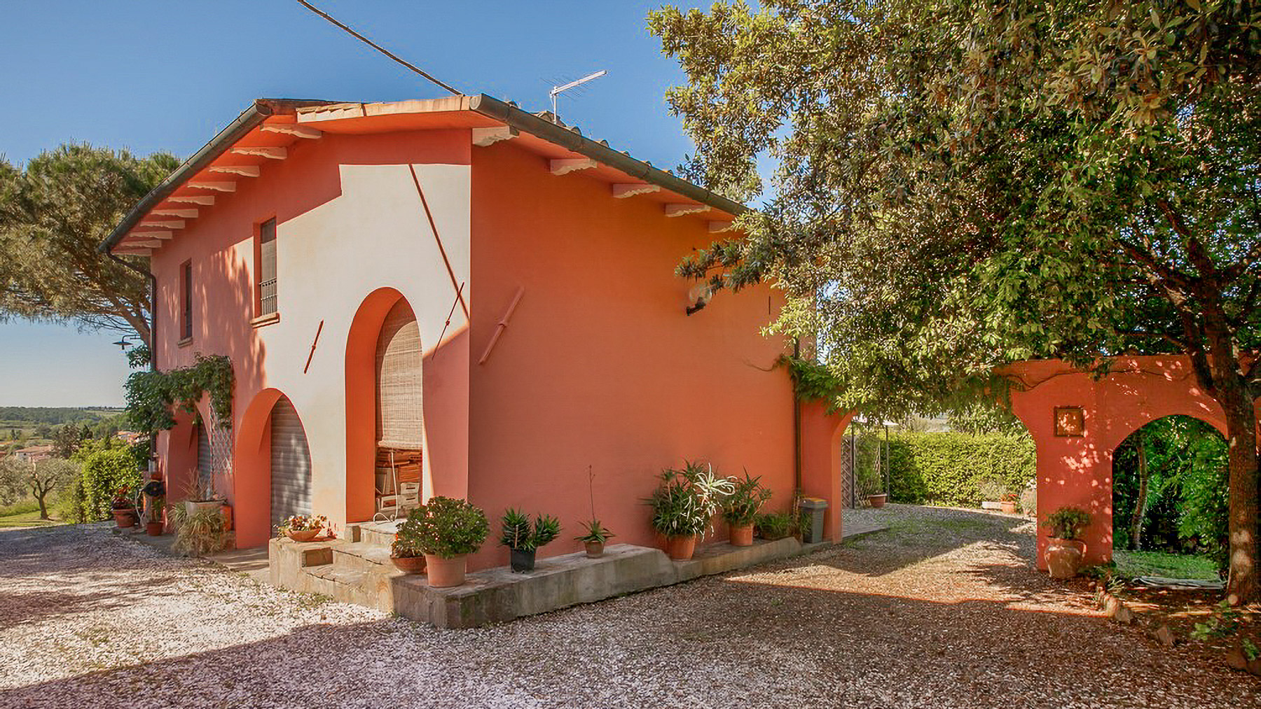 In the serene embrace of the Tuscan countryside, this enchanting pink villa emerges as a sanctuary of elegance and comfort. Surrounded by verdant greenery, the property invites you to experience the gentle rustle of leaves and the soothing warmth of the sun. The vibrant pinkish-orange façade, adorned with green shutters and arched doorways, harmonizes beautifully with the lush landscape, creating an idyllic setting that captivates the senses. Spanning an impressive 600 square meters, this remarkable residence in Fauglia, Provincia di Pisa, offers an abundance of space with ten splendid rooms and four luxurious bathrooms. The property exudes grandeur, featuring a private garden and a pristine swimming pool—perfect for leisurely afternoons. The well-maintained gravel pathway leads you through a haven of tranquility, where every corner of the home reflects timeless charm and luxury. Living here is a daily celebration of the Italian countryside lifestyle. Envision mornings spent in the garden, savoring the scent of blossoming flowers, and afternoons lounging by the pool. The picturesque surroundings promise an unparalleled experience of peace and relaxation, where each day unfolds like a scene from a classic painting. This villa stands as a testament to the perfect blend of rustic charm and modern sophistication—a rare jewel in the luxury real estate market, offering an extraordinary opportunity to own a piece of Tuscan paradise.