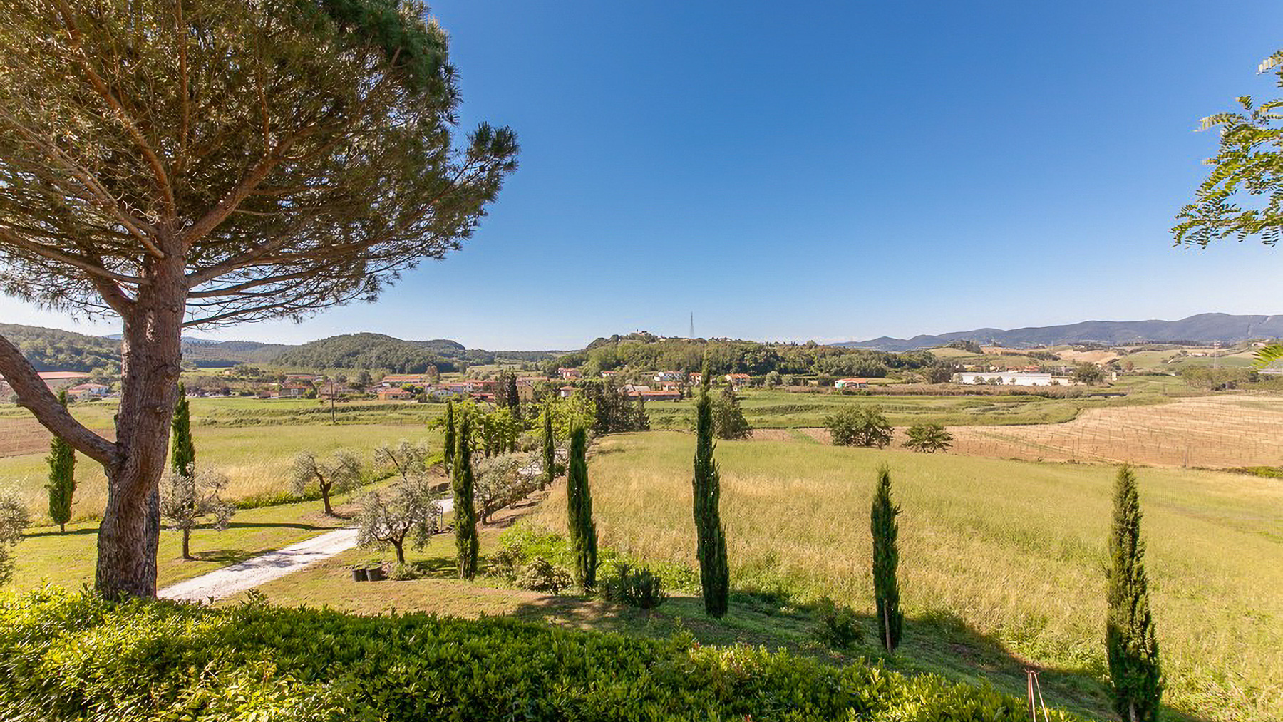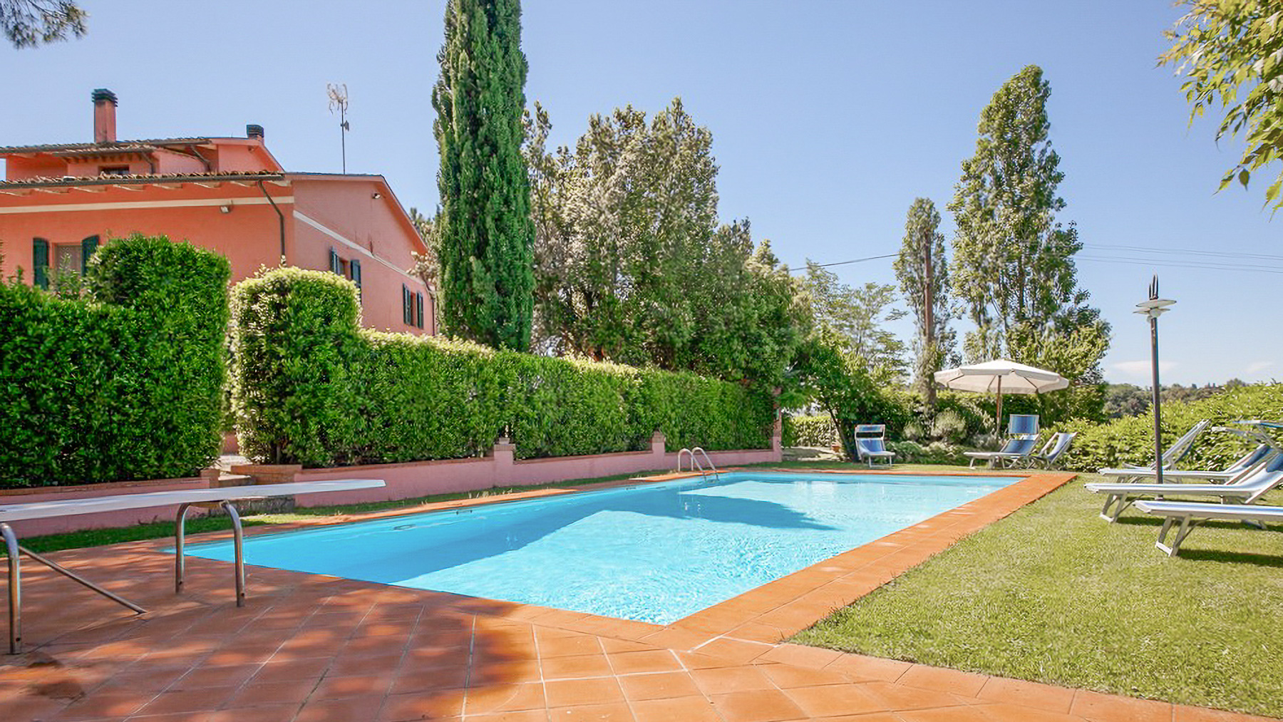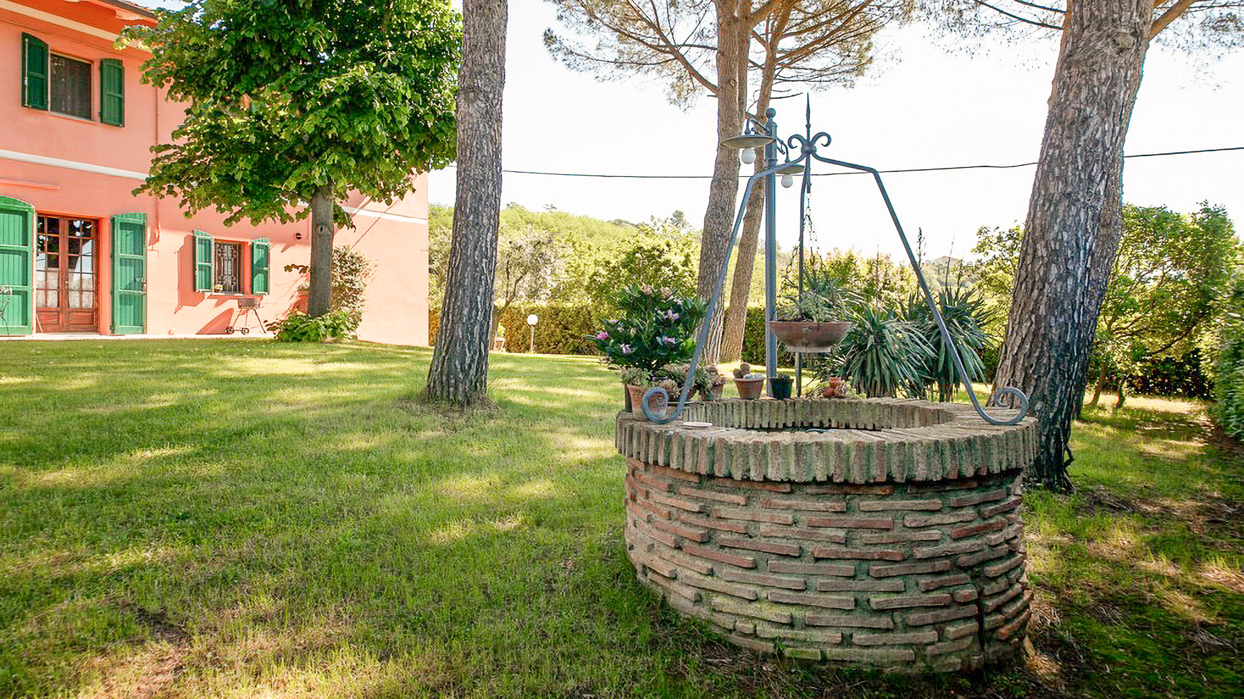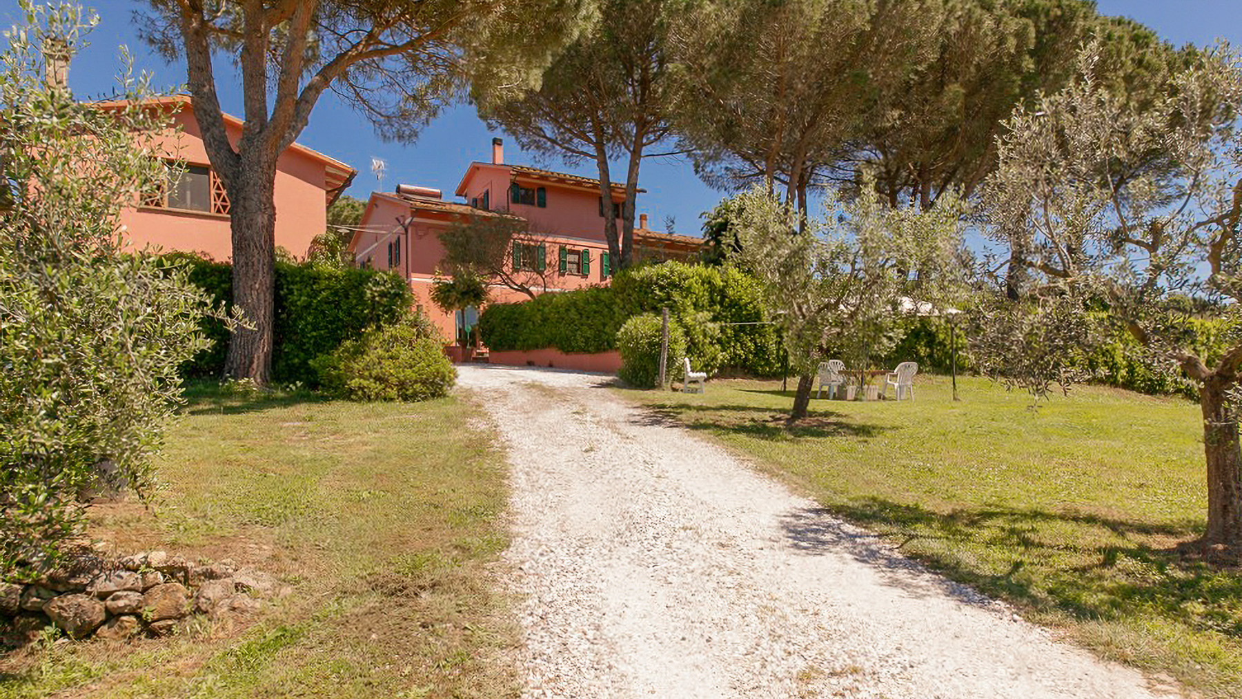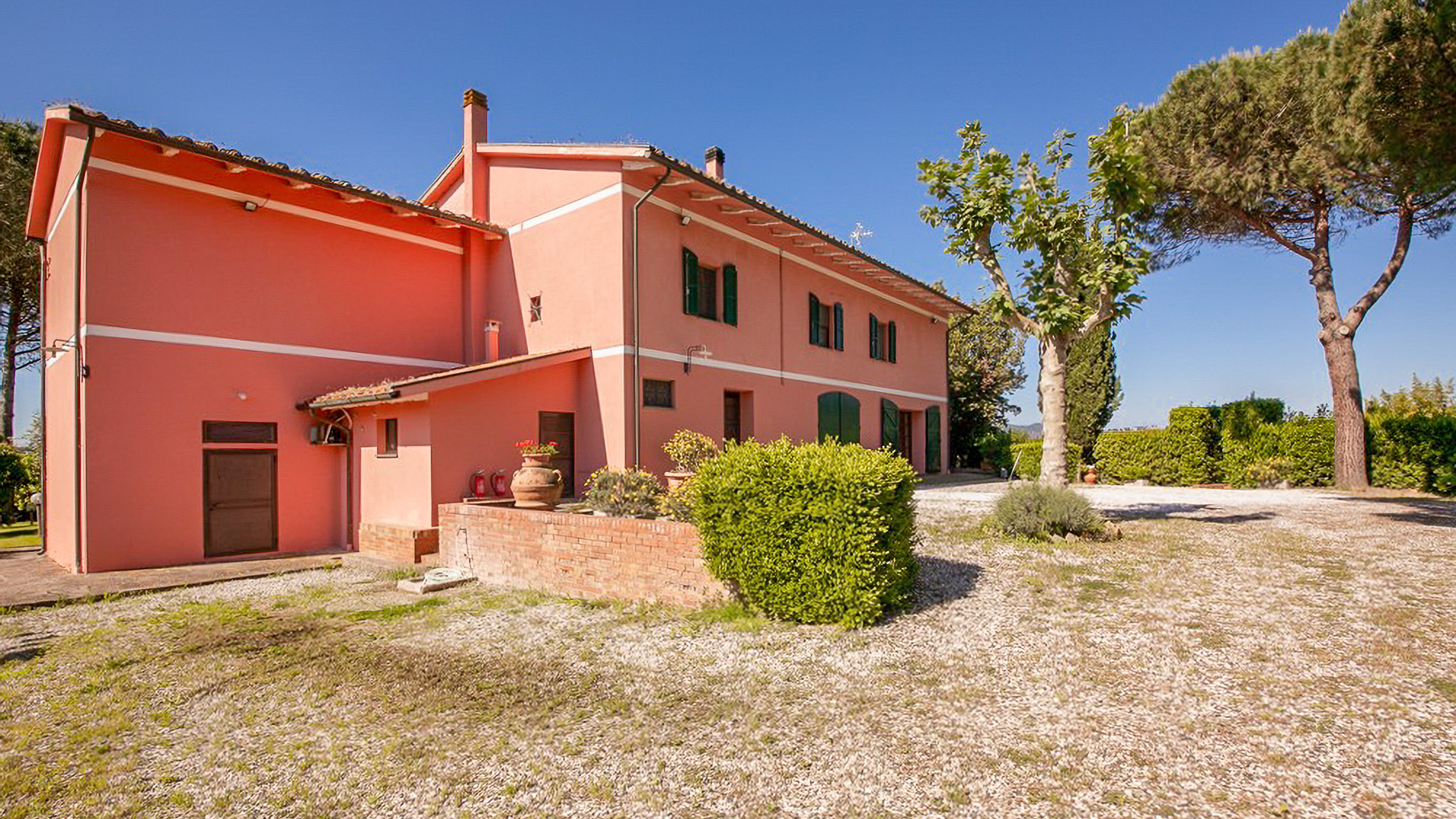 In the serene embrace of the Tuscan countryside, this enchanting pink villa emerges as a sanctuary of elegance and comfort. Surrounded by verdant greenery, the property invites you to experience the gentle rustle of leaves and the soothing warmth of the sun. The vibrant pinkish-orange façade, adorned with green shutters and arched doorways, harmonizes beautifully with the lush landscape, creating an idyllic setting that captivates the senses. Spanning an impressive 600 square meters, this remarkable residence in Fauglia, Provincia di Pisa, offers an abundance of space with ten splendid rooms and four luxurious bathrooms. The property exudes grandeur, featuring a private garden and a pristine swimming pool—perfect for leisurely afternoons. The well-maintained gravel pathway leads you through a haven of tranquility, where every corner of the home reflects timeless charm and luxury. Living here is a daily celebration of the Italian countryside lifestyle. Envision mornings spent in the garden, savoring the scent of blossoming flowers, and afternoons lounging by the pool. The picturesque surroundings promise an unparalleled experience of peace and relaxation, where each day unfolds like a scene from a classic painting. This villa stands as a testament to the perfect blend of rustic charm and modern sophistication—a rare jewel in the luxury real estate market, offering an extraordinary opportunity to own a piece of Tuscan paradise.