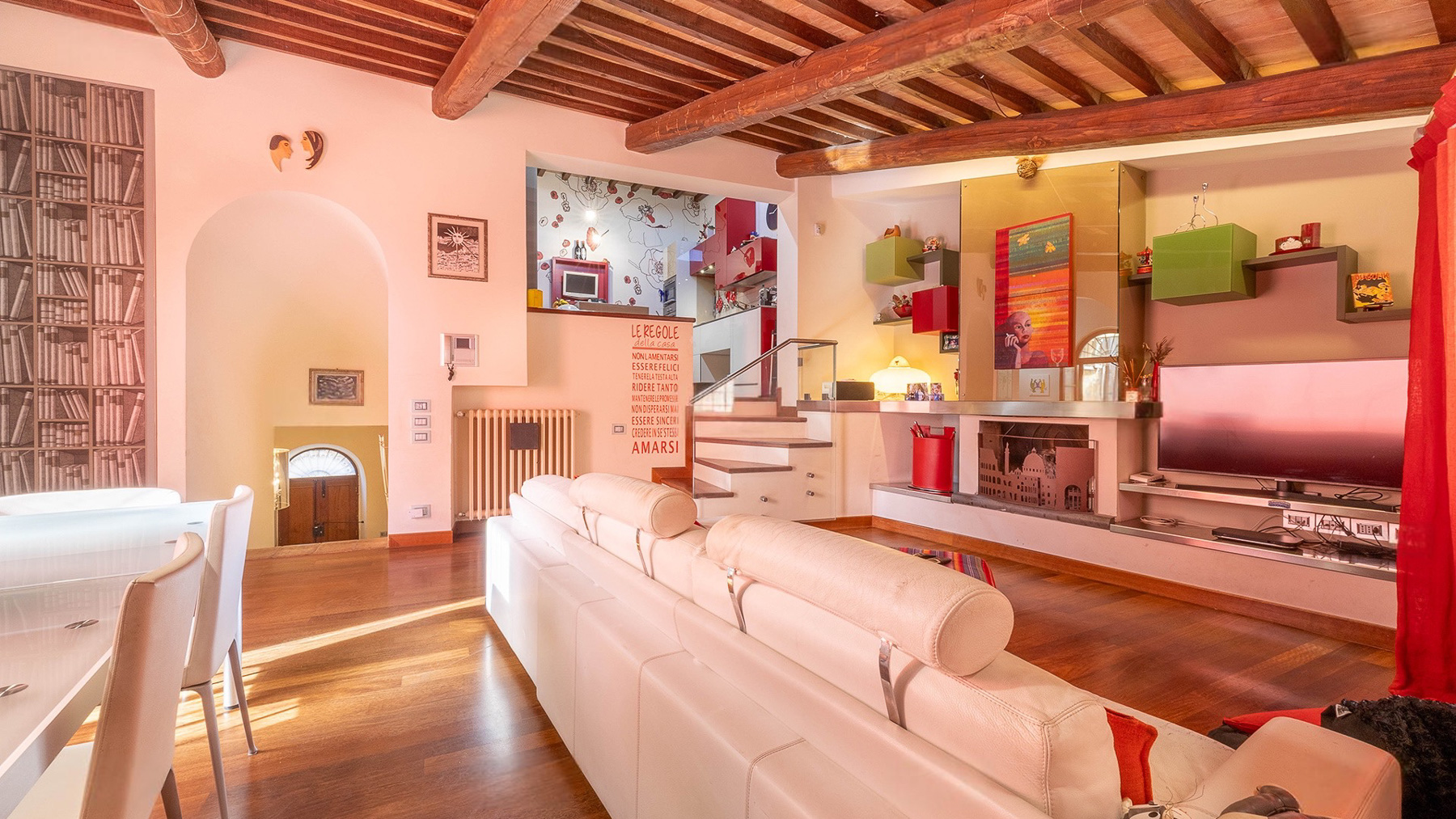 Perched in the heart of Orvieto, this exquisite residence blends modern elegance with timeless charm. As you step inside, the gentle glow of a decorative chandelier welcomes you into a harmonious living space, where the warmth of wood and soft lighting create an inviting atmosphere. With every detail thoughtfully curated, from the plush area rugs to the elegant red doors, this home promises a sensory delight. Spanning 300 square meters, this luxurious property offers seven spacious rooms and four elegant bathrooms, perfectly accommodating both relaxation and entertainment. Distinctive features such as a private garden and an in-home gym enhance the allure of this city residence. Located in the vibrant Terni region, the property perfectly integrates the lively urban lifestyle with serene living spaces, offering a seamless blend of city life and personal retreat. Imagine sipping your morning coffee by the large windows, bathed in natural light, as you watch the city come alive. The open-concept design invites you to relish in both intimate gatherings and grand celebrations, with a kitchen that caters to culinary adventures and a living room that beckons relaxation under the glow of a flat-screen TV above the fireplace. This residence is not just a home; it is an embodiment of sophisticated living, offering a rare opportunity to own a piece of luxury in the heart of Orvieto. A true testament to refined taste and modern luxury, this property is a jewel in the realm of prestigious real estate.