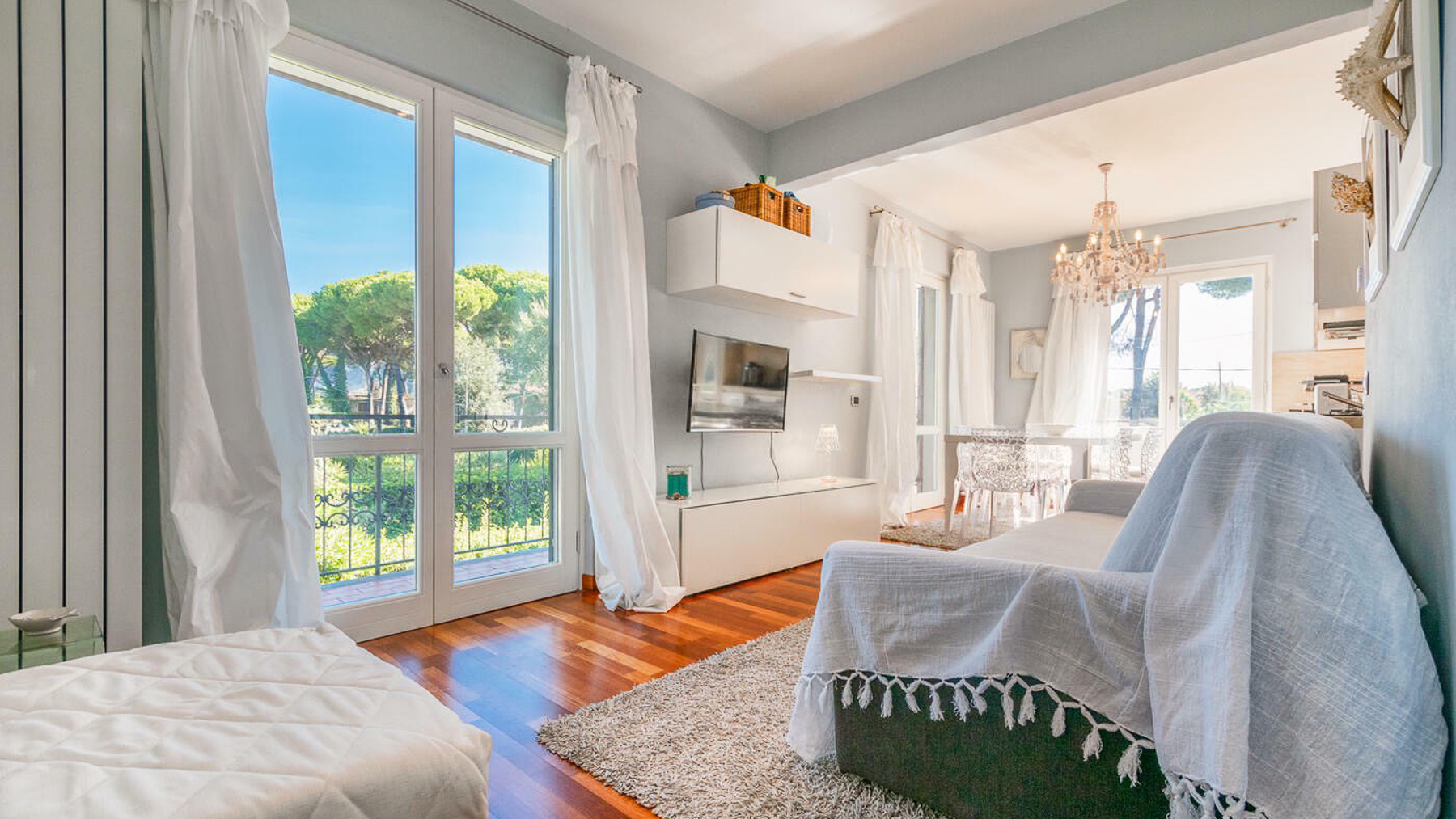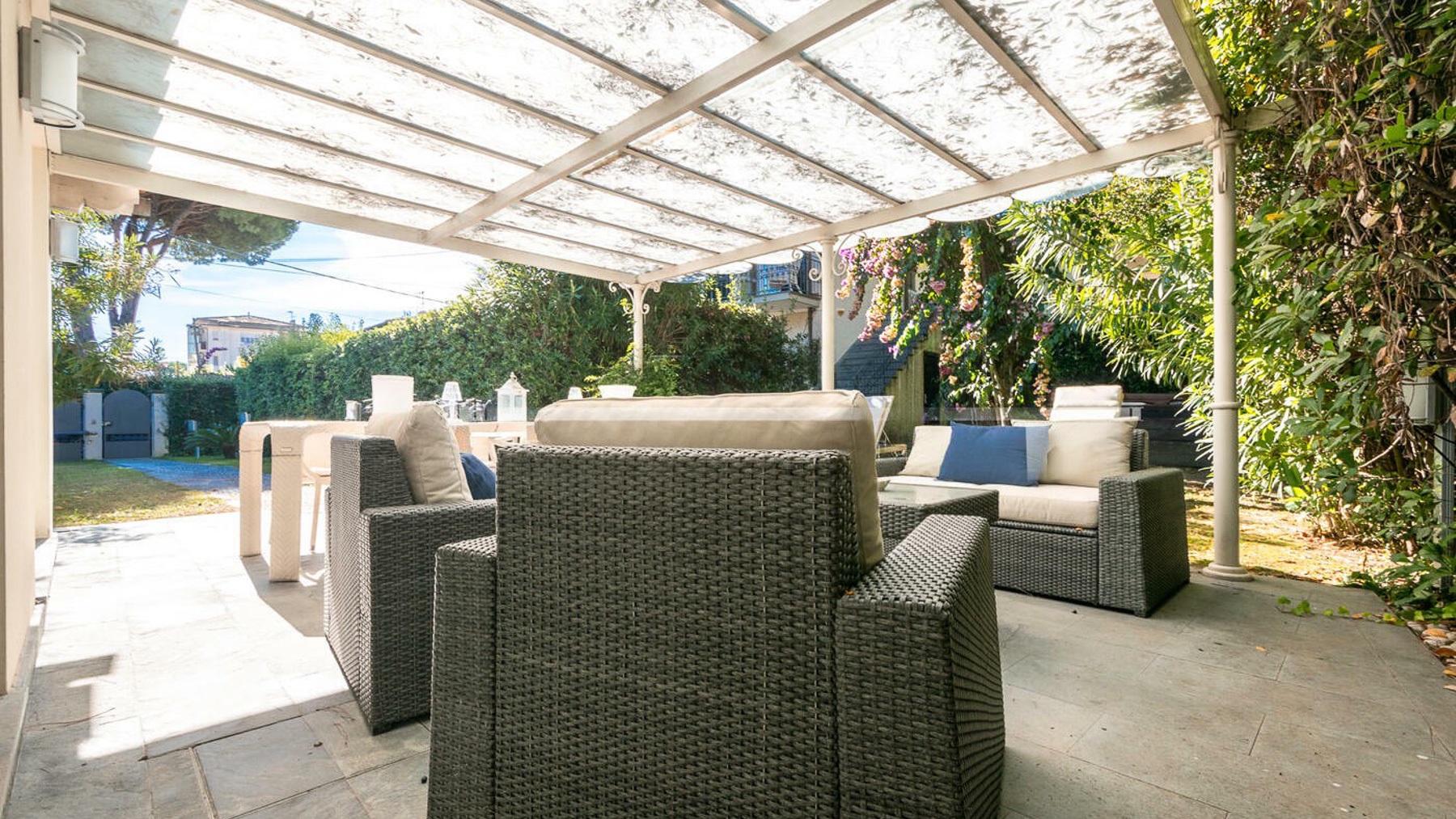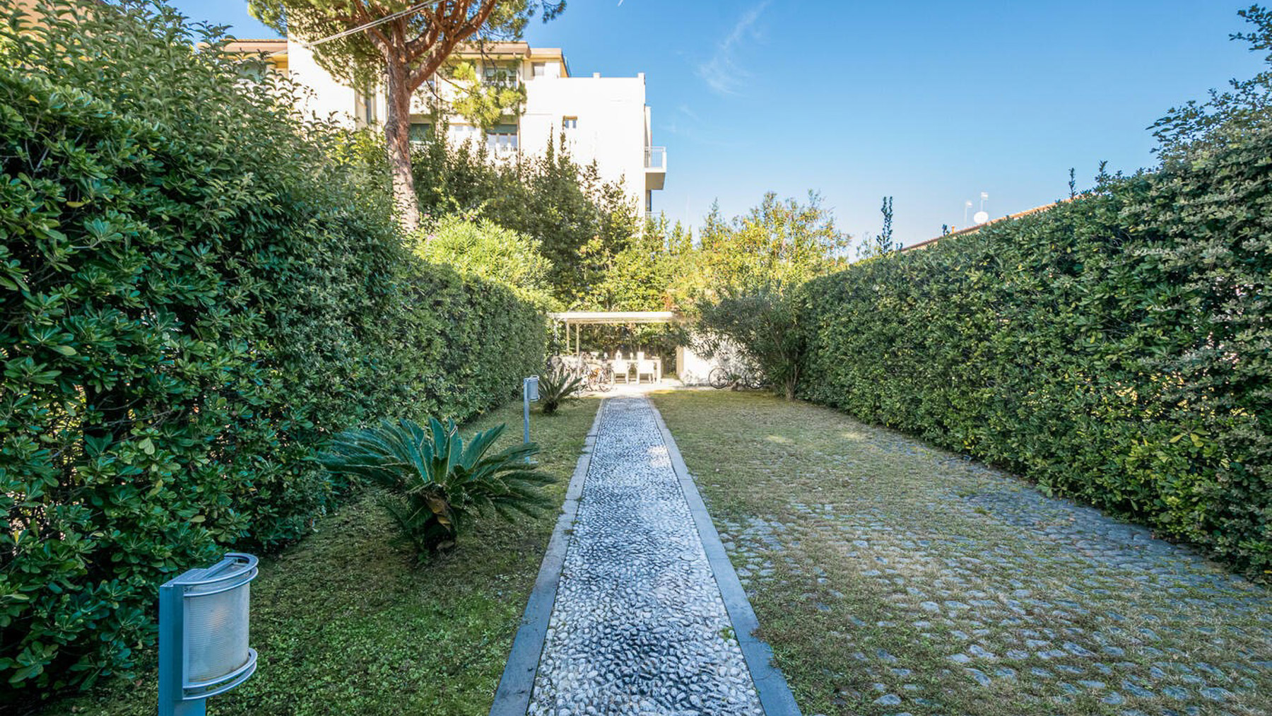 Situated in a serene residential enclave, this exquisite flat in Marina di Pietrasanta beckons with its harmonious blend of elegance and comfort, just a short stroll from the sun-drenched sands of Versilia and the picturesque pier. Imagine the gentle sound of waves and the scent of the sea mingling with the soft rustle of Mediterranean foliage as you step into this luxurious retreat. Spanning 75 square meters, this sophisticated residence features four meticulously designed rooms and three modern bathrooms. The heart of the home is an open-plan living area, where large French windows bathe the space in natural light, seamlessly merging the indoor and outdoor environments. Custom-made furniture subtly delineates the living, dining, and kitchen spaces, creating a natural flow. The master suite, with its own balcony and en-suite, offers a private sanctuary, while additional bedrooms provide ample space for guests or family. An annex in the garden serves as a versatile guesthouse or studio, opening to a pergola perfect for alfresco dining. Living here means embracing a lifestyle of leisure and elegance. Picture yourself unwinding in the hot tub, enveloped by lush greenery, or enjoying convivial evenings under the pergola, with the majestic Apuan Alps as your backdrop. This property is not just a home; it is a canvas for unforgettable experiences and cherished memories. This residence is a testament to refined living, offering unparalleled independence and tranquility, mere moments from the vibrant Italian coastline. It's a rare opportunity to own a piece of luxury in Marina di Pietrasanta, where every detail is crafted for discerning tastes.