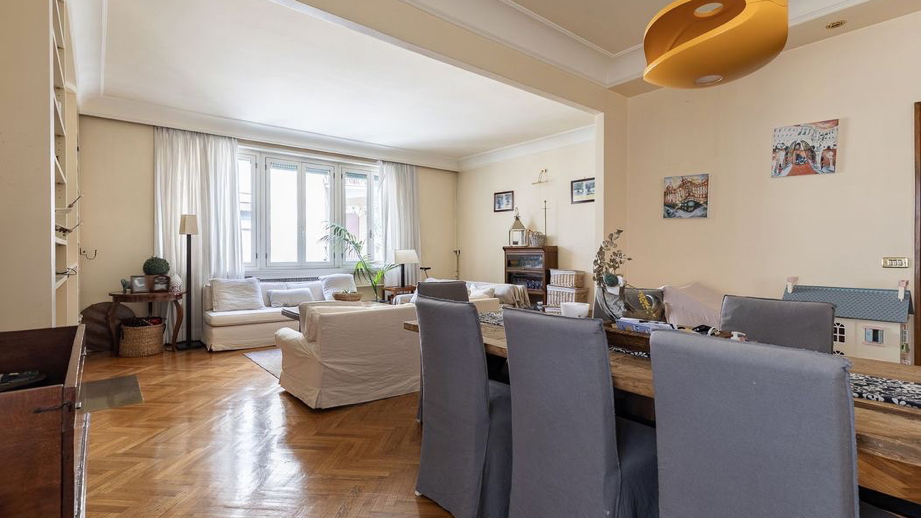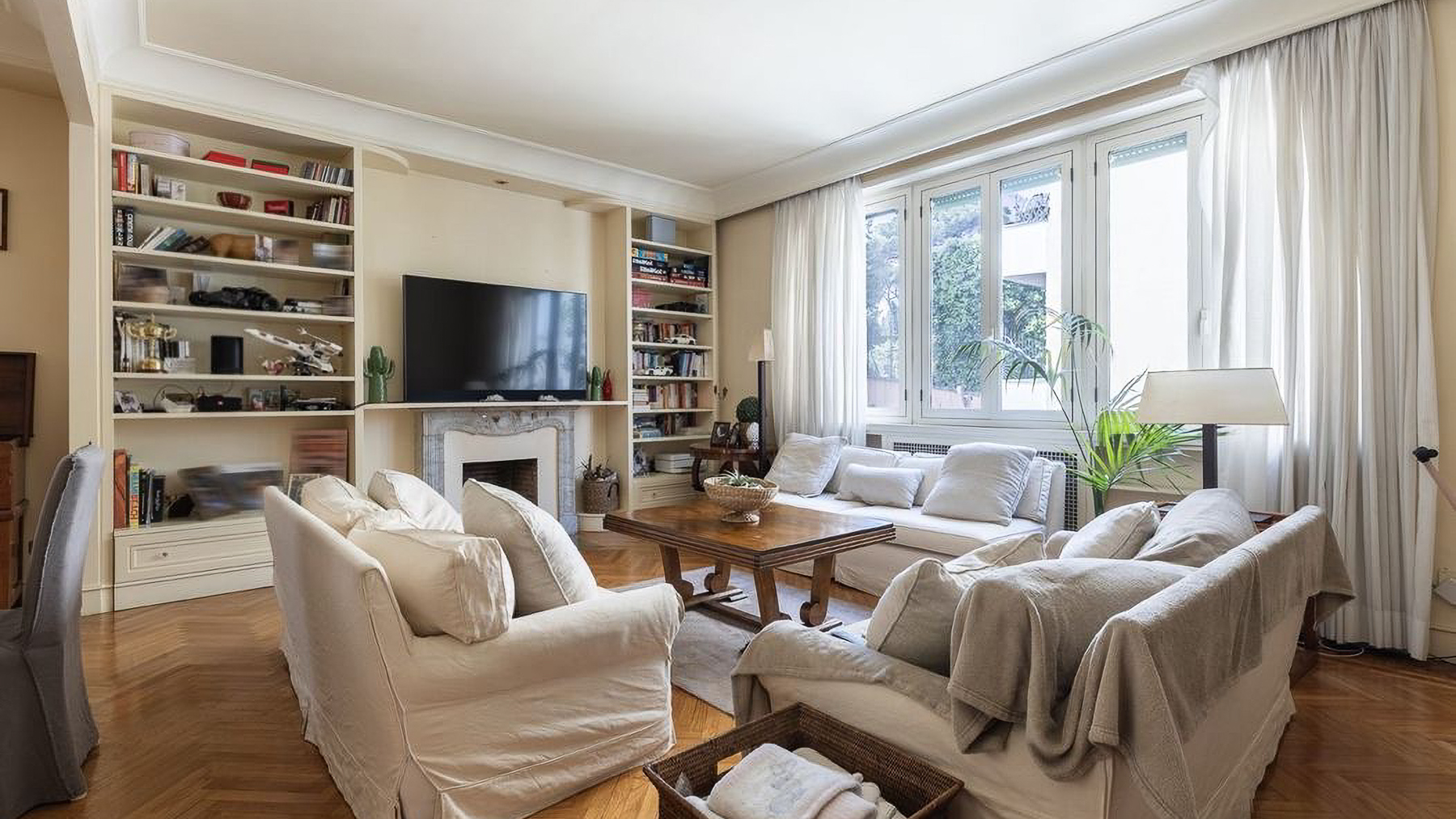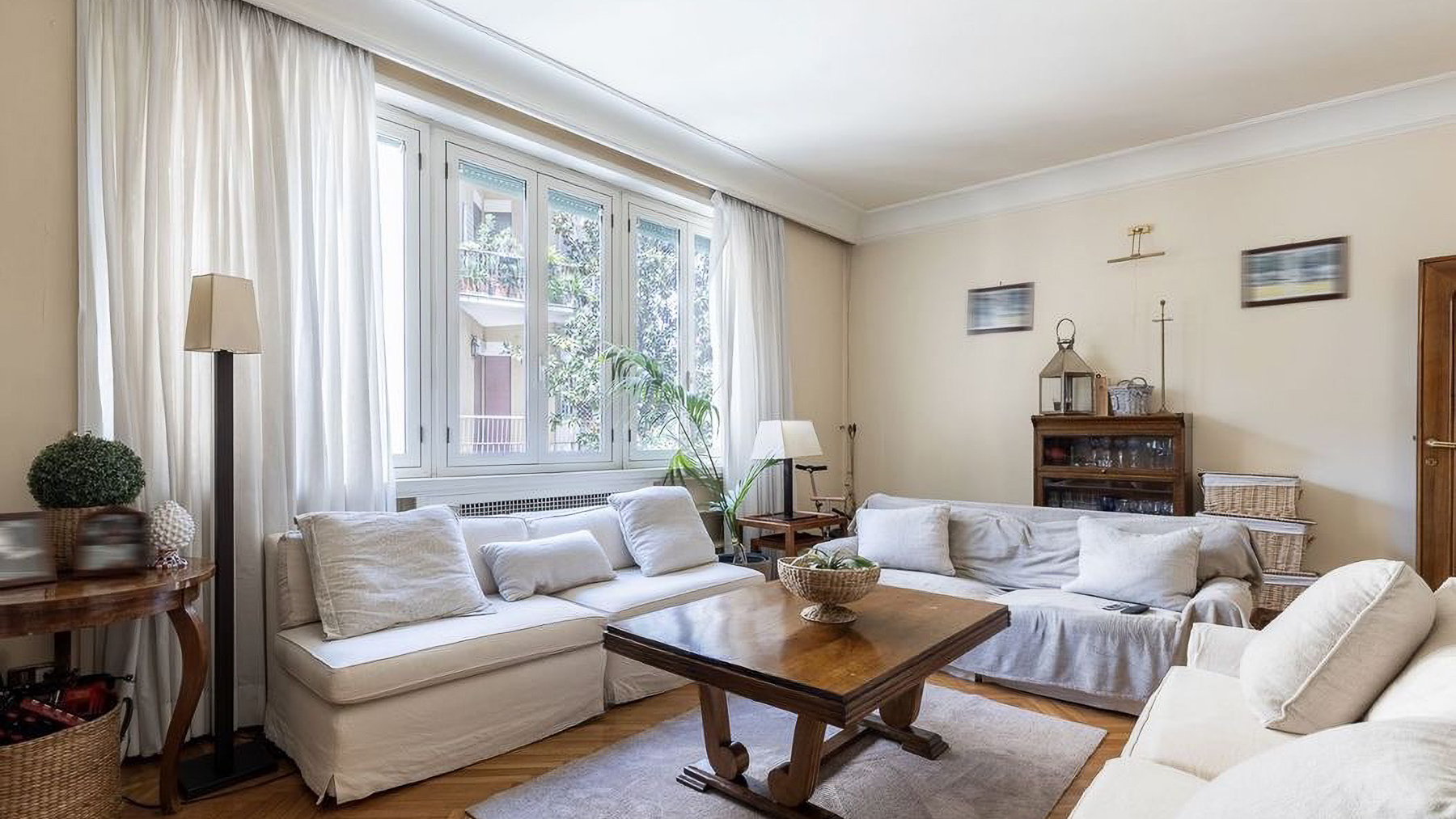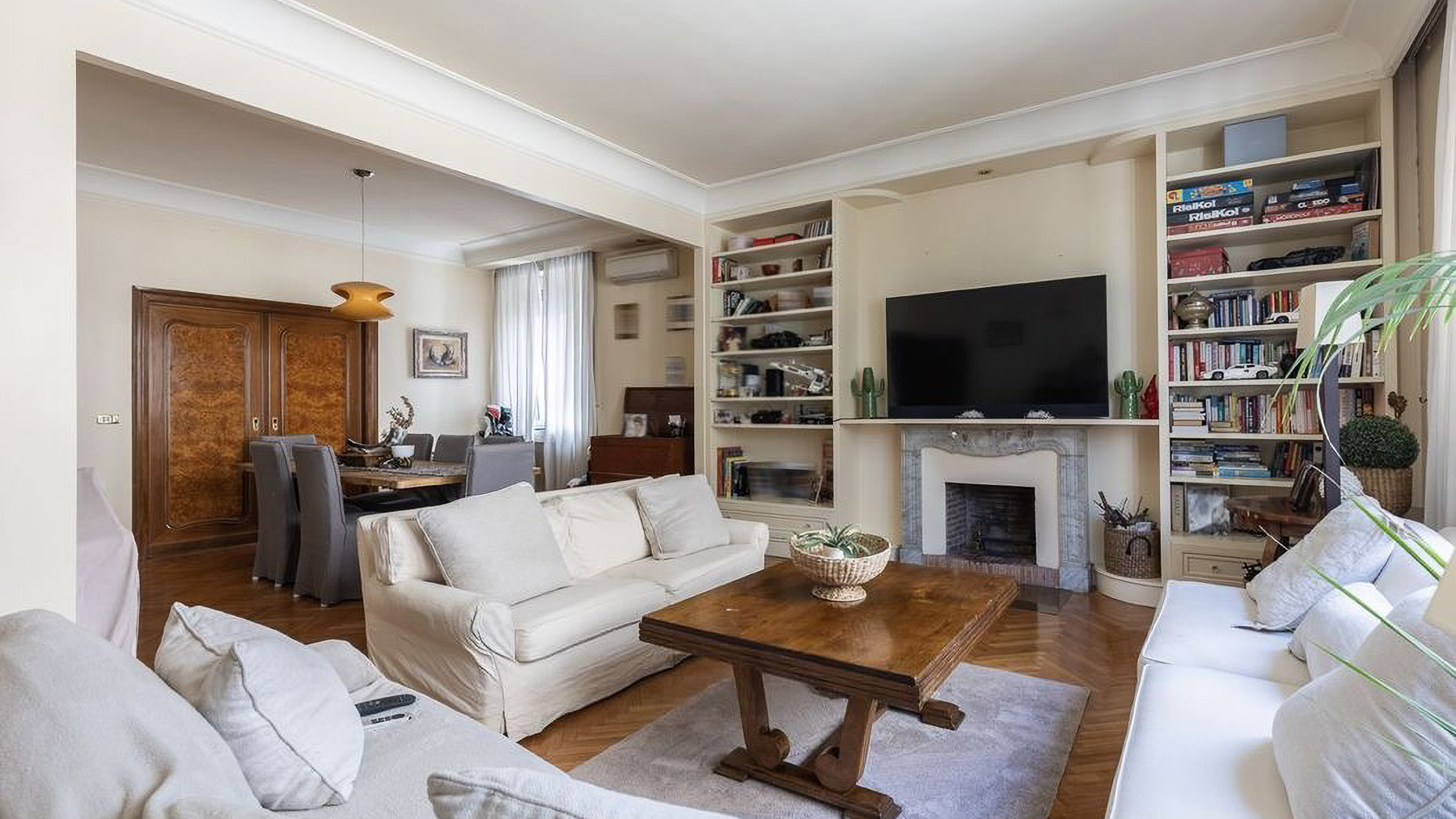 Enveloped in the vibrant pulse of Rome, this exquisite urban retreat offers a sanctuary of warmth and sophistication amidst the city's historic allure. Imagine waking up to the gentle glow of morning light filtering through large windows, casting a serene ambiance over your elegant living space. The scent of fresh blooms from the balcony mingles with the distant hum of city life, creating a symphony of senses. Spanning 173 square meters, this beautifully appointed residence boasts five spacious rooms and two sleek bathrooms, each designed with meticulous attention to detail. The heart of the home is a cozy living room, featuring light-colored sofas, a wooden coffee table, and a wall-mounted television. Shelves lined with books and treasures invite you to unwind, while natural light pours in through large windows, highlighting the delicate interplay of textures and tones. The property's urban location in the heart of Rome offers the perfect balance of city excitement and private retreat. Living here means experiencing the vibrant lifestyle of Rome, where history and modernity intertwine. Picture yourself savoring a morning coffee on the balcony, surrounded by lush plants and the distant view of charming cityscapes. The ambiance is warm, inviting, and perfect for both relaxation and entertaining guests. This residence is not just a home