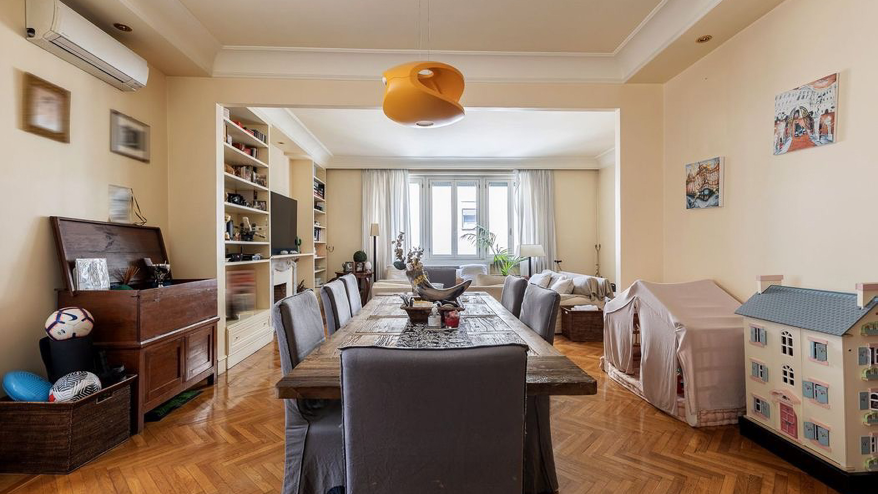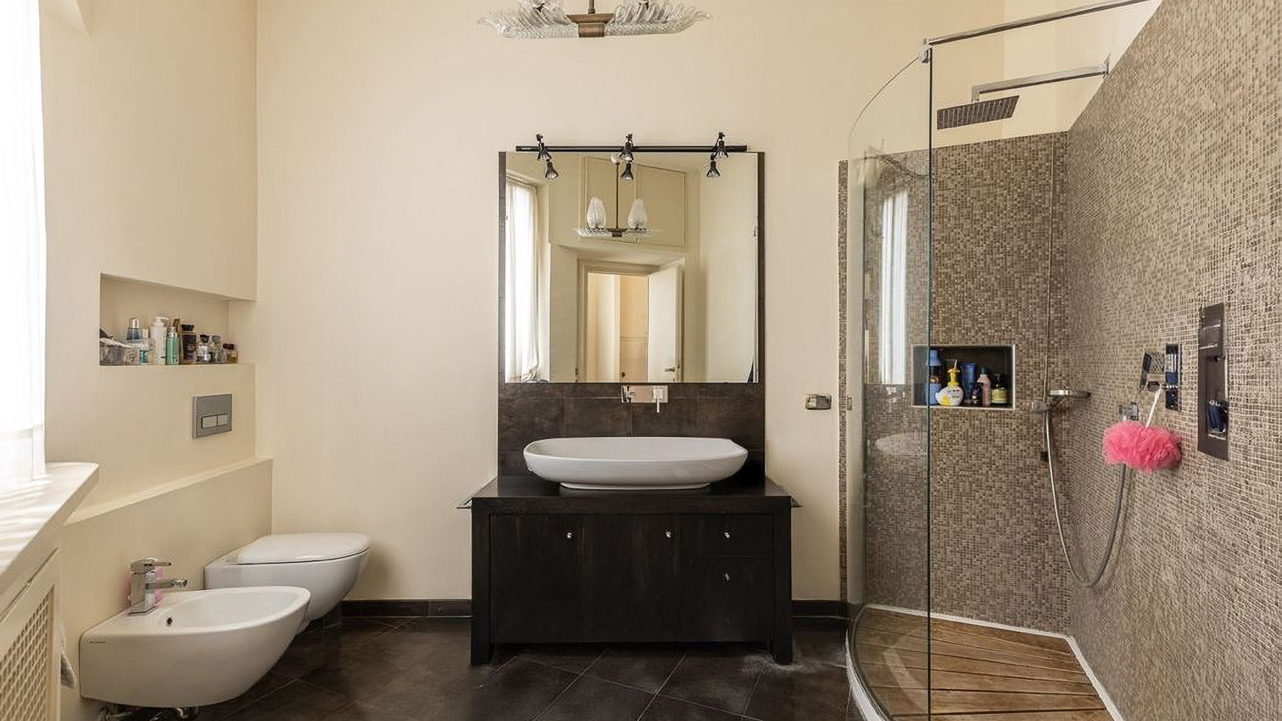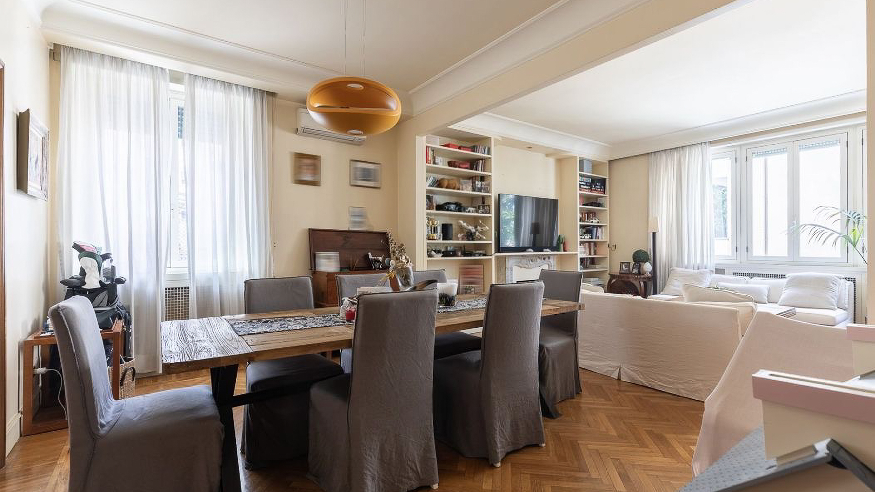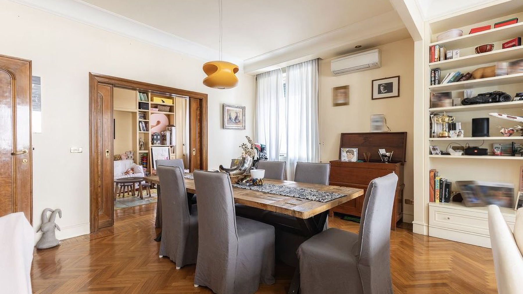 Enveloped in the vibrant pulse of Rome, this exquisite urban retreat offers a sanctuary of warmth and sophistication amidst the city's historic allure. Imagine waking up to the gentle glow of morning light filtering through large windows, casting a serene ambiance over your elegant living space. The scent of fresh blooms from the balcony mingles with the distant hum of city life, creating a symphony of senses. Spanning 173 square meters, this beautifully appointed residence boasts five spacious rooms and two sleek bathrooms, each designed with meticulous attention to detail. The heart of the home is a cozy living room, featuring light-colored sofas, a wooden coffee table, and a wall-mounted television. Shelves lined with books and treasures invite you to unwind, while natural light pours in through large windows, highlighting the delicate interplay of textures and tones. The property's urban location in the heart of Rome offers the perfect balance of city excitement and private retreat. Living here means experiencing the vibrant lifestyle of Rome, where history and modernity intertwine. Picture yourself savoring a morning coffee on the balcony, surrounded by lush plants and the distant view of charming cityscapes. The ambiance is warm, inviting, and perfect for both relaxation and entertaining guests. This residence is not just a home