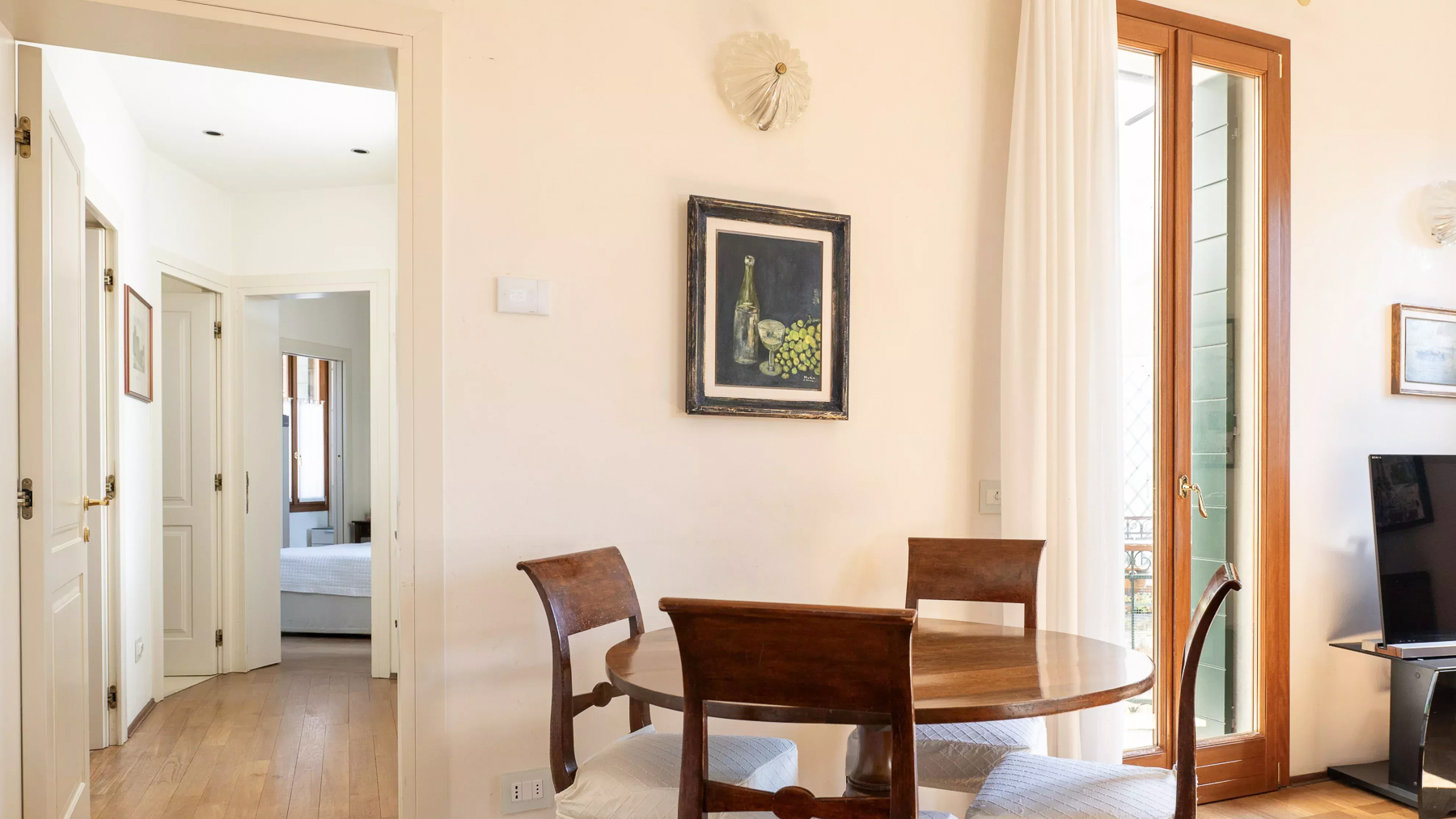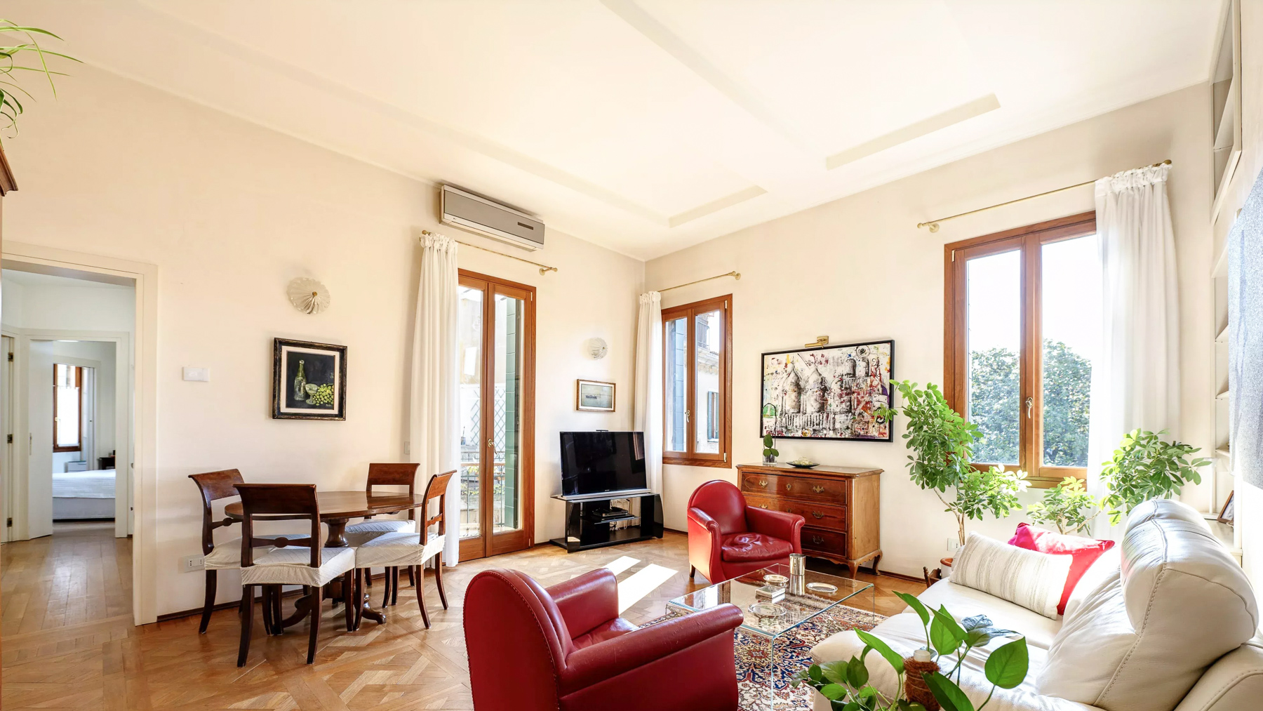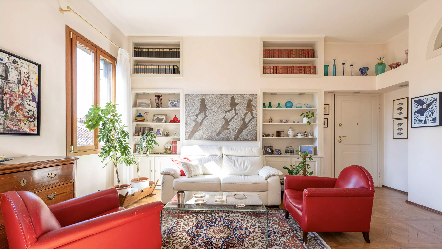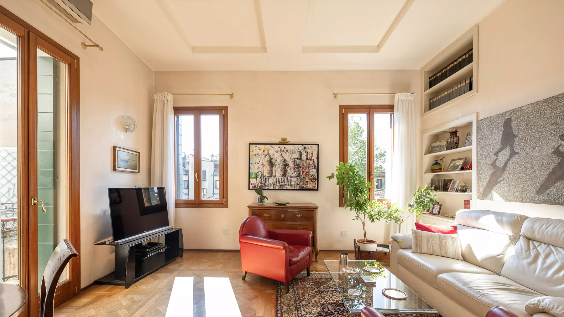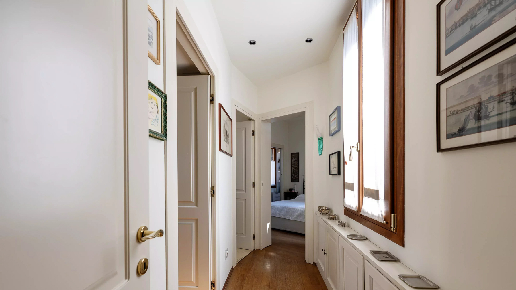 Amidst the enchanting canals of Venice, this exquisite apartment offers a sanctuary of elegance and contemporary design. Located just steps away from the historic Scuola Grande di San Rocco, it invites you to immerse yourself in the vibrant heart of the San Polo district, where the echoes of the city's rich history blend seamlessly with modern luxury. Spanning 115 square meters, this meticulously renovated apartment features six thoughtfully designed rooms, including a spacious and sunlit living area that opens onto a charming terrace—perfect for alfresco dining or tranquil relaxation. The property boasts a separate kitchen, a private study, and a luxurious sleeping area with two bedrooms, three bathrooms, including a master suite with an en suite bath and a generous walk-in closet. Every detail has been carefully curated to offer a harmonious blend of Venetian charm and refined modern aesthetics. Situated conveniently close to Piazzale Roma, the location provides easy access to both the vibrant city center and tranquil surroundings. Living here means experiencing the magic of Venice daily. Picture yourself enjoying morning coffees overlooking the picturesque canal views or hosting elegant gatherings in the spacious living room filled with natural light. The perfect blend of traditional and modern elements creates an atmosphere that is both inviting and sophisticated, offering a lifestyle of unparalleled comfort and style. This property stands as a testament to timeless elegance and modern luxury, a rare gem in the Venetian real estate market. A perfect balance of history and contemporary living awaits you in this unique sanctuary.