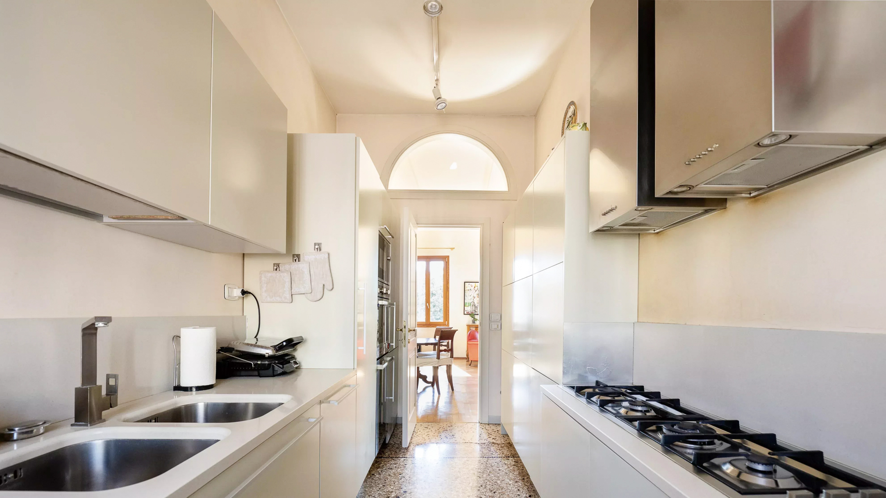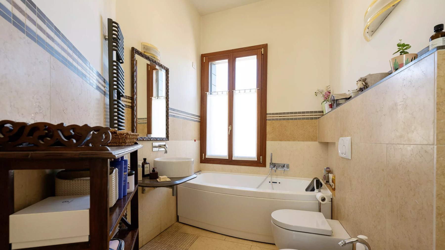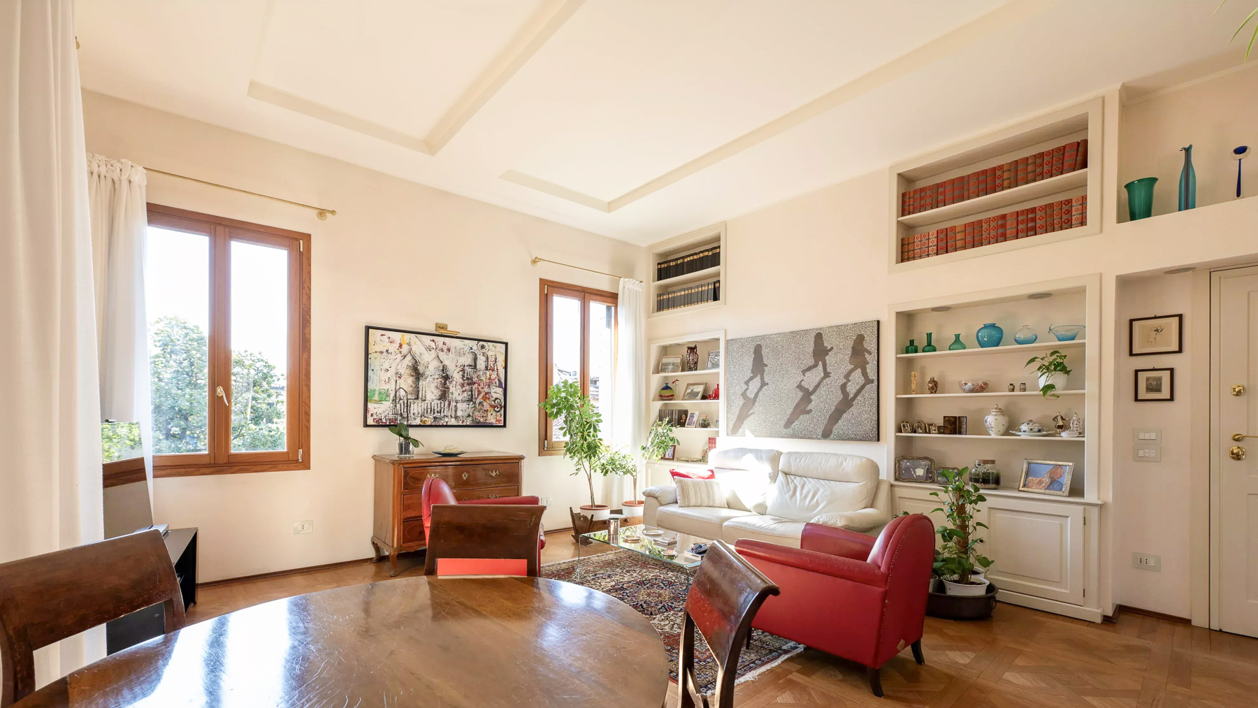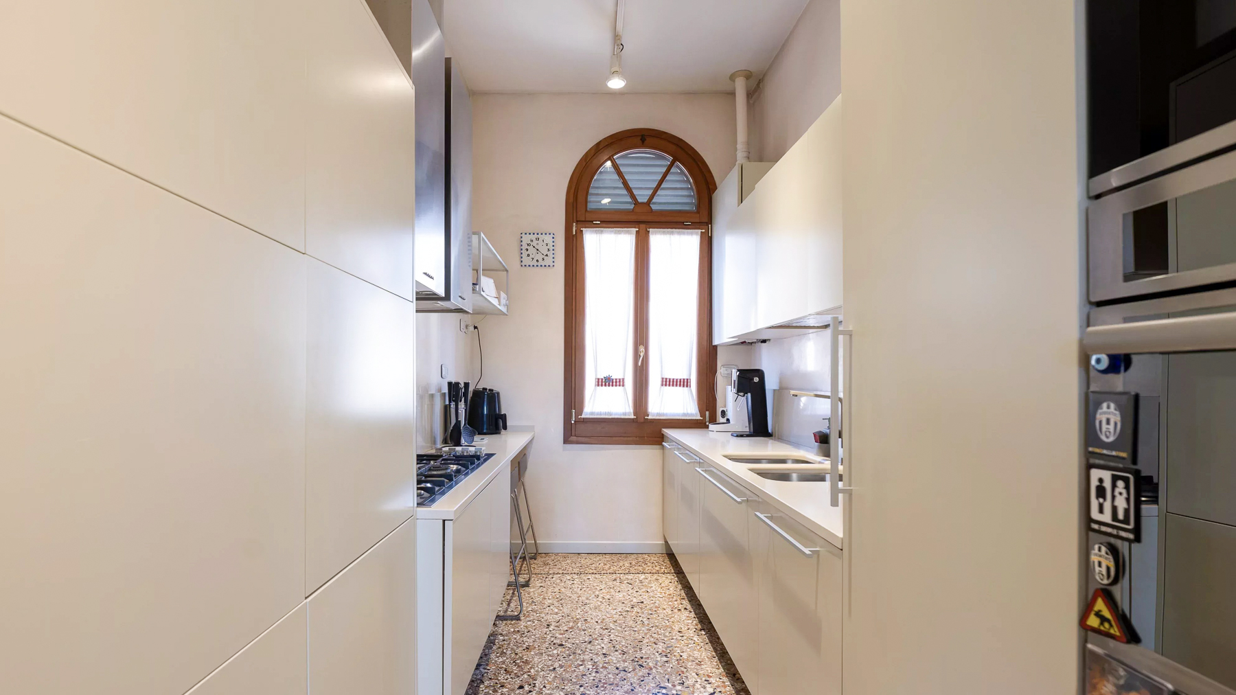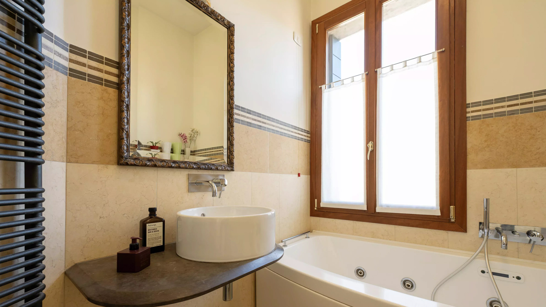 Amidst the enchanting canals of Venice, this exquisite apartment offers a sanctuary of elegance and contemporary design. Located just steps away from the historic Scuola Grande di San Rocco, it invites you to immerse yourself in the vibrant heart of the San Polo district, where the echoes of the city's rich history blend seamlessly with modern luxury. Spanning 115 square meters, this meticulously renovated apartment features six thoughtfully designed rooms, including a spacious and sunlit living area that opens onto a charming terrace—perfect for alfresco dining or tranquil relaxation. The property boasts a separate kitchen, a private study, and a luxurious sleeping area with two bedrooms, three bathrooms, including a master suite with an en suite bath and a generous walk-in closet. Every detail has been carefully curated to offer a harmonious blend of Venetian charm and refined modern aesthetics. Situated conveniently close to Piazzale Roma, the location provides easy access to both the vibrant city center and tranquil surroundings. Living here means experiencing the magic of Venice daily. Picture yourself enjoying morning coffees overlooking the picturesque canal views or hosting elegant gatherings in the spacious living room filled with natural light. The perfect blend of traditional and modern elements creates an atmosphere that is both inviting and sophisticated, offering a lifestyle of unparalleled comfort and style. This property stands as a testament to timeless elegance and modern luxury, a rare gem in the Venetian real estate market. A perfect balance of history and contemporary living awaits you in this unique sanctuary.
