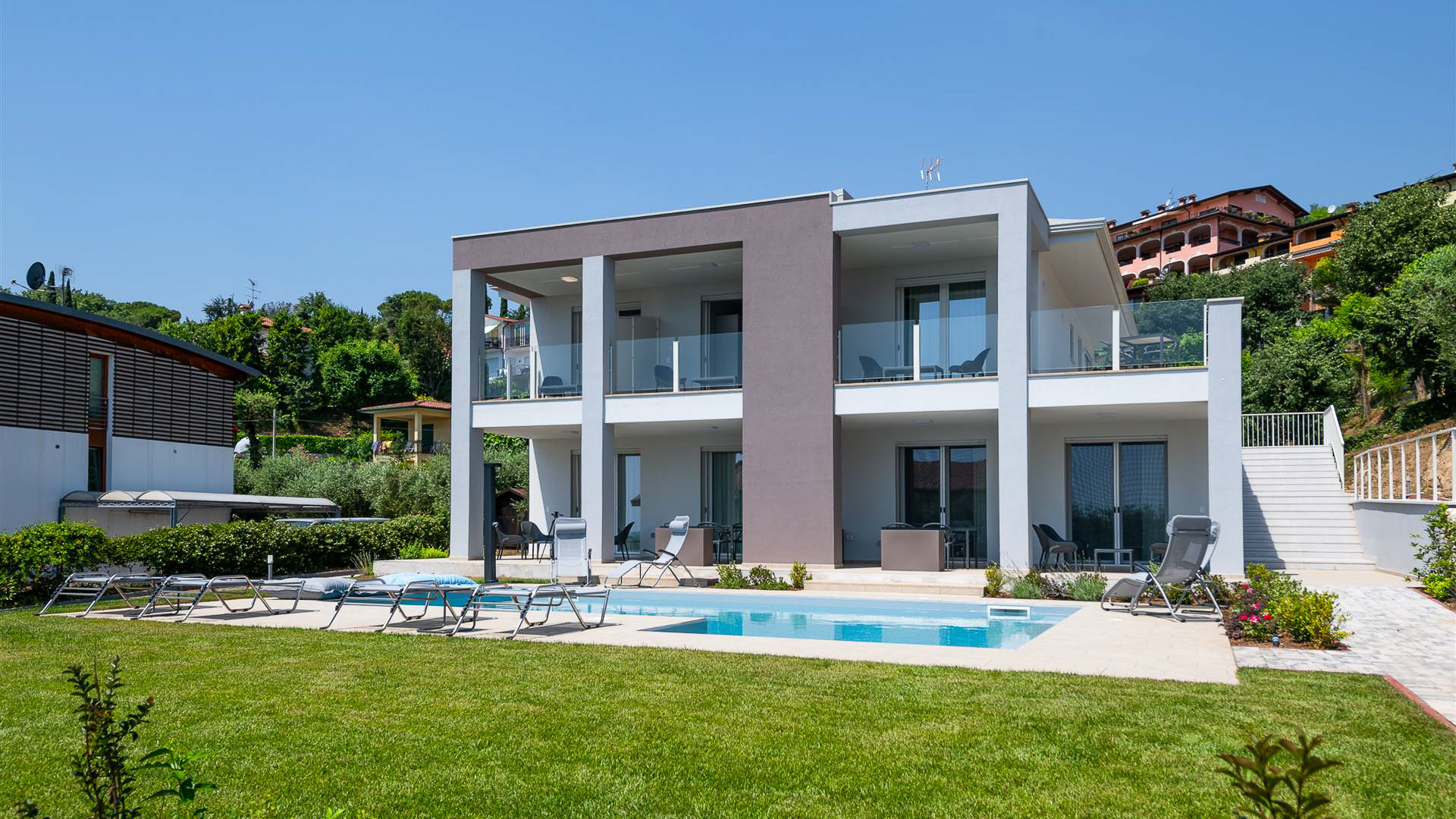 In the serene embrace of a charming neighborhood in Brescia, this modern villa is a true sanctuary of luxury and elegance. Bathed in the golden glow of the sun, it invites you into a world where contemporary design meets natural beauty. Picture the gentle sound of water from the private pool and the soft rustle of leaves in the breeze, setting a calming atmosphere. Sprawling over 320 square meters, this exquisite home boasts 12 meticulously designed rooms and 4 luxurious bathrooms, offering ample space for both relaxation and entertainment. Large glass doors and expansive balconies blur the lines between indoor and outdoor living, flooding the interiors with natural light and offering breathtaking views of the lush surroundings. The pristine private pool is a centerpiece, promising endless summer days of leisure and enjoyment. Living here means embracing a lifestyle of sophistication and comfort. Envision mornings spent sipping coffee on the balcony, afternoons lounging by the pool with a book in hand, and evenings entertaining guests under a canopy of stars. The tranquil setting provides a peaceful retreat, yet the vibrant life of Brescia is just a stone's throw away, offering the perfect blend of seclusion and convenience. This property is a rare jewel, where modern architecture and serene landscapes create a harmonious escape. It stands as a testament to refined living, presenting a unique opportunity to own a piece of luxury in one of Italy’s most desirable locales.