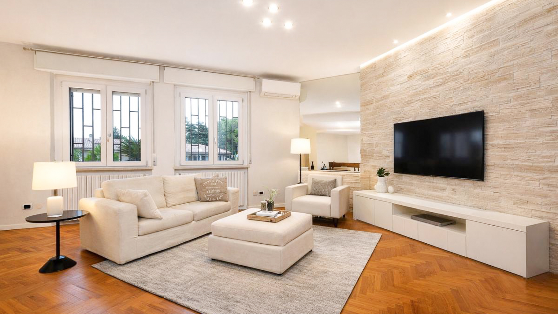 In the serene embrace of Desenzano del Garda, this exquisite property offers a sanctuary of elegance and comfort. As you step into this tranquil suburban oasis, the gentle rustle of leaves and the soft glow of sunlight filtering through the trees invite you to unwind and breathe deeply. This residence, set amidst lush greenery, promises a life of luxury and peace. Spanning an impressive 240 square meters, this home boasts five spacious rooms and four well-appointed bathrooms. Each corner of the property reflects sophistication, from the cozy living room with its stone fireplace to the expansive private garden that offers a haven for relaxation. The property harmonizes with its surroundings, blending seamlessly into the picturesque landscape of Desenzano del Garda, Brescia, while providing the modern comforts expected in a city lifestyle. Living here is an experience like no other. Picture yourself enjoying leisurely mornings on the patio, sipping coffee as the morning dew sparkles on the grass. Evenings can be spent in the garden, with the gentle murmur of nature as your backdrop, creating memories with loved ones in an atmosphere of pure serenity. This home offers not just a place to live, but a lifestyle to cherish. This property is a testament to refined living, where every detail has been thoughtfully designed to offer an unparalleled blend of elegance and comfort. It stands as a unique opportunity in the luxury real estate market, a true jewel for the discerning buyer.