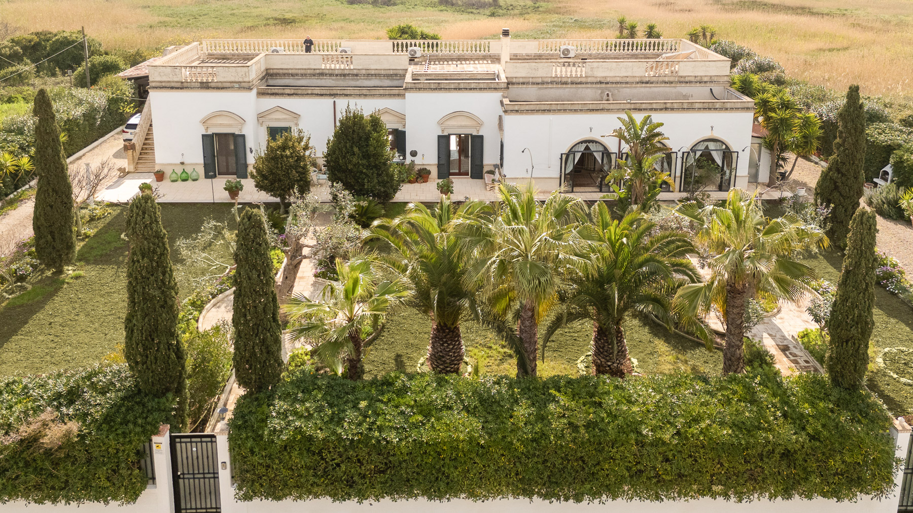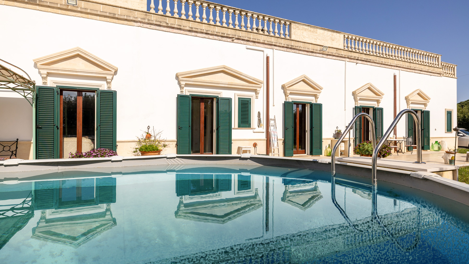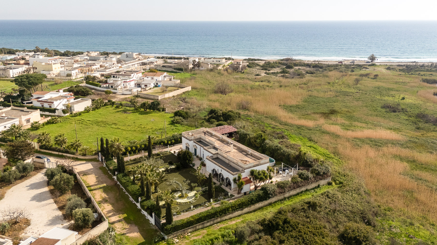 Perched by the shimmering coastline, this exquisite villa envelops you in an oasis of elegance and serenity. As the sun dances over the azure waters, the gentle rustle of palm leaves and the scent of salt air create an intoxicating ambiance that beckons you to unwind and savor life's finer pleasures. Spanning 273 square meters, this expansive residence is a testament to refined living, boasting 10 spacious rooms and 3 luxurious bathrooms. Its architectural grandeur is highlighted by cream-colored walls, adorned with elegant window frames and cornices, while green shutters invite the coastal breeze inside. Outside, a meticulously landscaped garden, complete with decorative plants and alfresco dining spaces, surrounds a stunning swimming pool that mirrors the sky above. Located in the charming town of Manduria, Taranto (TA), this property offers a lifestyle enriched by the nearby sea and lush greenery. Living here means embracing a life of leisure and sophistication. Imagine savoring morning coffee by the pool, with the gentle warmth of the sun enveloping you, or enjoying leisurely afternoons under the open sky as the sea breeze dances around you. Each day unfolds like a dream, offering the perfect setting for creating cherished memories with family and friends. This villa stands as a beacon of luxury and exclusivity, where timeless architecture meets modern comfort. It is not just a home, but a sanctuary—a rare opportunity in the world of luxury real estate.