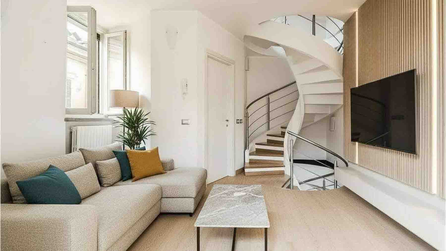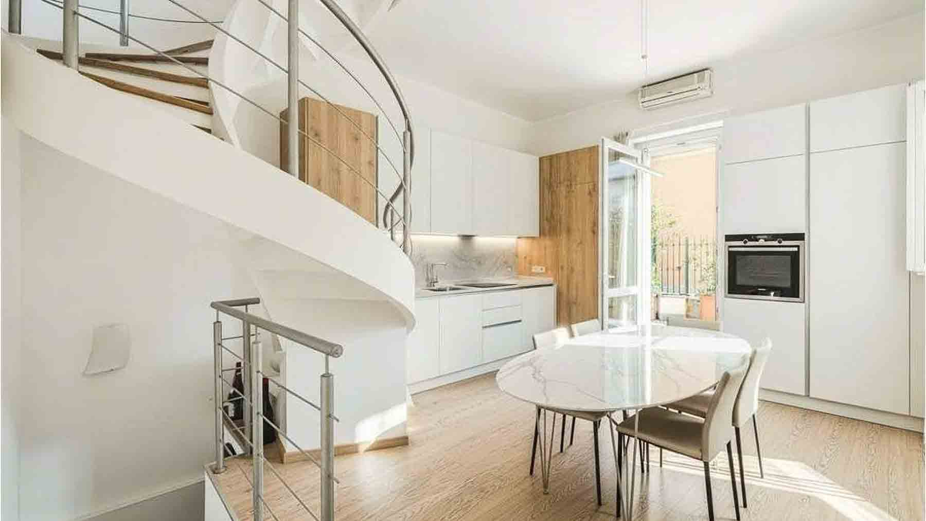 Tucked within the vibrant heart of Milan, this exquisite residence offers an oasis of sophistication and contemporary charm. Bathed in natural light, with the gentle whisper of city life just beyond its walls, this home is a sanctuary of modern elegance. Spanning 100 square meters, this luxurious apartment features three beautifully appointed rooms and two stylish bathrooms. The light-filled living space showcases a harmonious blend of comfort and design, with an L-shaped sofa adorned with vibrant cushions, a chic marble coffee table, and a touch of greenery from a potted plant. A spiral staircase gracefully ascends to the upper level, hinting at the home's multi-level allure. With a private garden and a spacious terrace, this property invites you to embrace the essence of urban living while enjoying serene outdoor retreats. Imagine unwinding on the terrace, where the gentle Milanese breeze carries the sounds of the city below, or strolling through your private garden, a tranquil retreat amidst the urban landscape. The inviting ambiance of this home promises unforgettable moments and a lifestyle of unparalleled comfort. In the prestigious landscape of luxury real estate, this apartment stands as a testament to refined living. It offers an exceptional blend of contemporary design and urban convenience—a truly unique opportunity in the heart of Milan.
