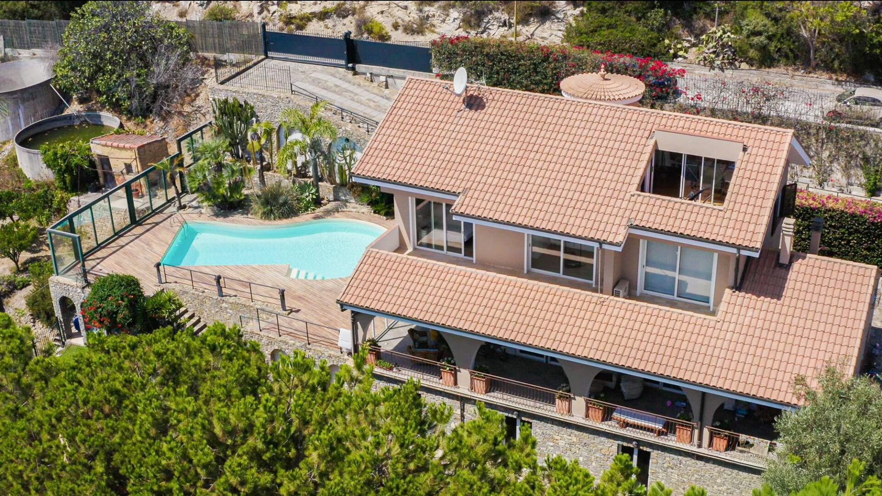Perched in a serene suburban enclave, this Mediterranean-style residence is a sanctuary of elegance and comfort. Bathed in natural light, the terracotta roof and expansive windows harmonize with the lush greenery, crafting a picturesque retreat. Imagine the gentle rustle of palm leaves and the inviting shimmer of the pool, creating an ambiance of endless summers. Spanning 336 Mq, this enchanting home offers nine rooms and four luxurious bathrooms, perfectly designed for both family living and entertaining. With a private garden and pool, every day feels like a holiday in this coastal haven. A generous terrace invites you to savor breathtaking sunsets, while the contemporary yet timeless design ensures every corner is a delight. Located in the charming town of Ospedaletti, Imperia, this property embodies the quintessential Mare lifestyle, offering a seamless blend of leisure and sophistication. Living here means embracing a lifestyle where every morning begins with the scent of sea air, and each evening ends under a starlit sky. The children's room, vibrant and whimsical, echoes laughter and imagination, creating a joyful sanctuary for the young. Days are spent lounging by the pool or exploring the vibrant local culture, promising a life filled with cherished memories. This residence is not just a home